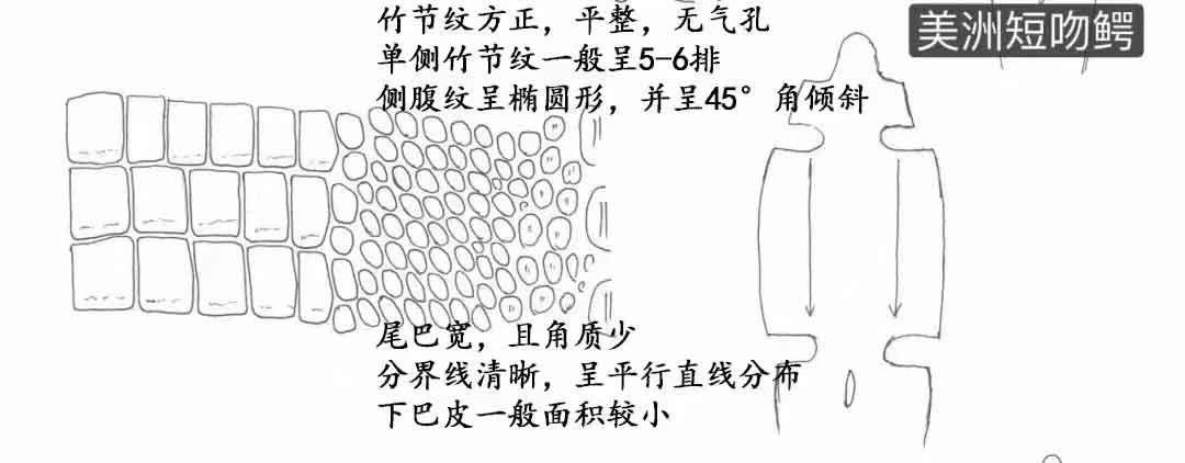 美洲:没有气孔,泄殖孔上方有明显裂痕,竹节纹整齐漂亮,与圆纹部分界线清晰,圆纹密集而且比较小。价格仅次于湾,因其纹路细致,这一类皮料非常适合制作小件的皮具。