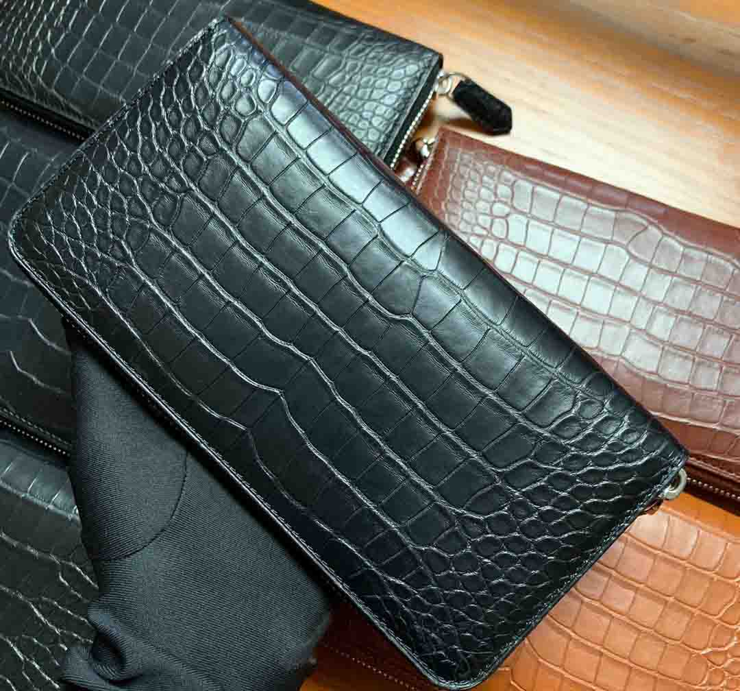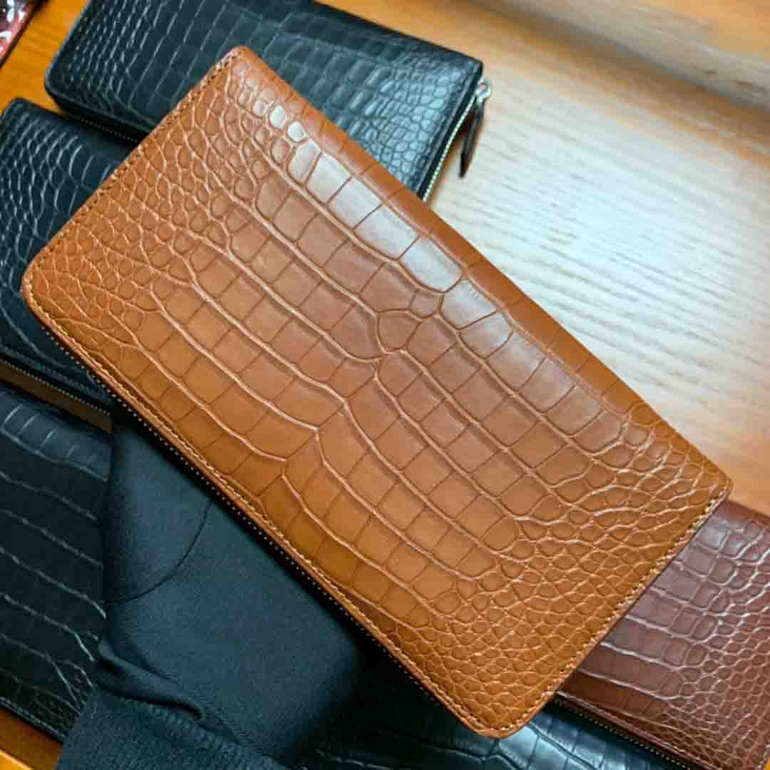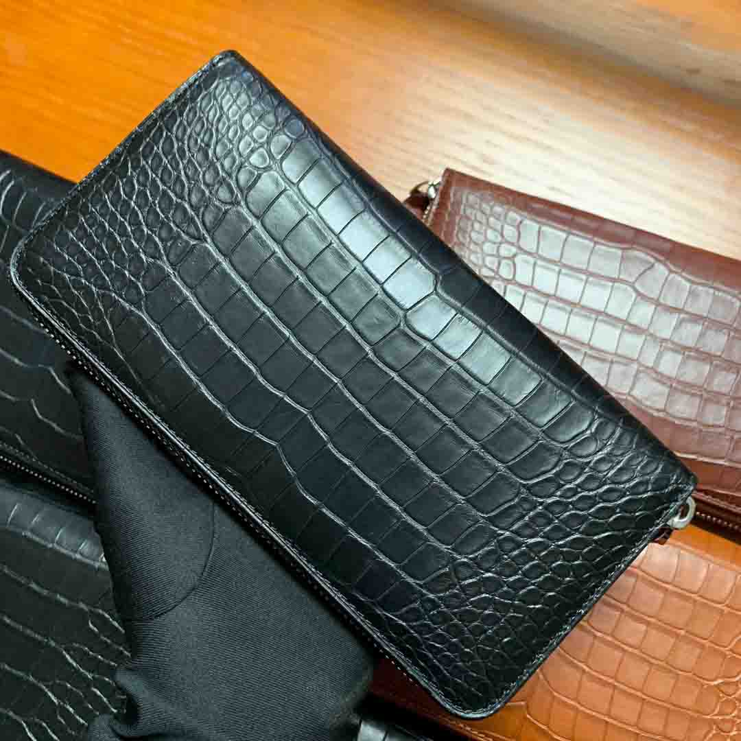 进口美洲鳄 哑光鳄鱼 小号单拉链钱包
