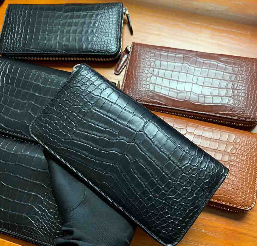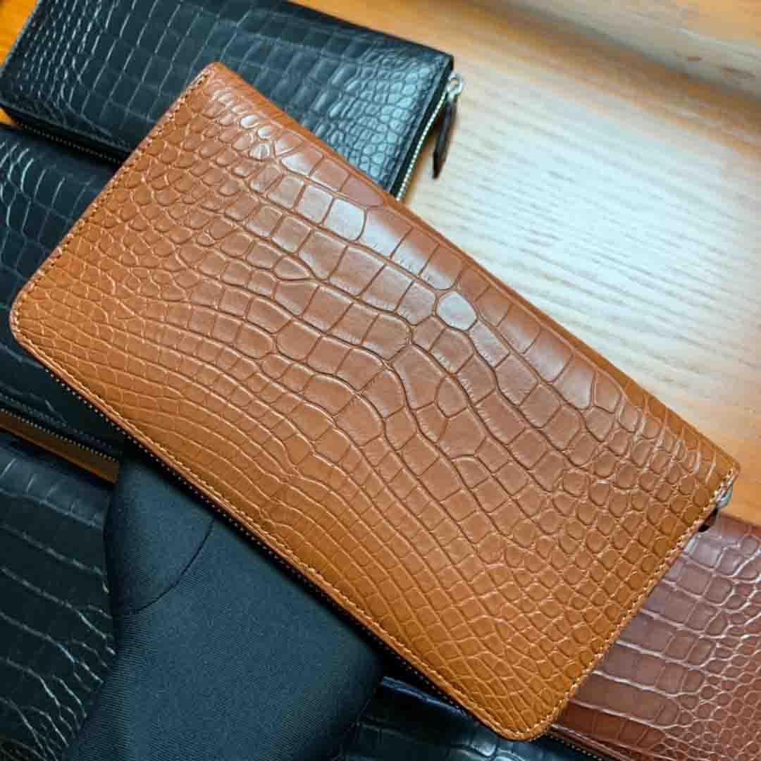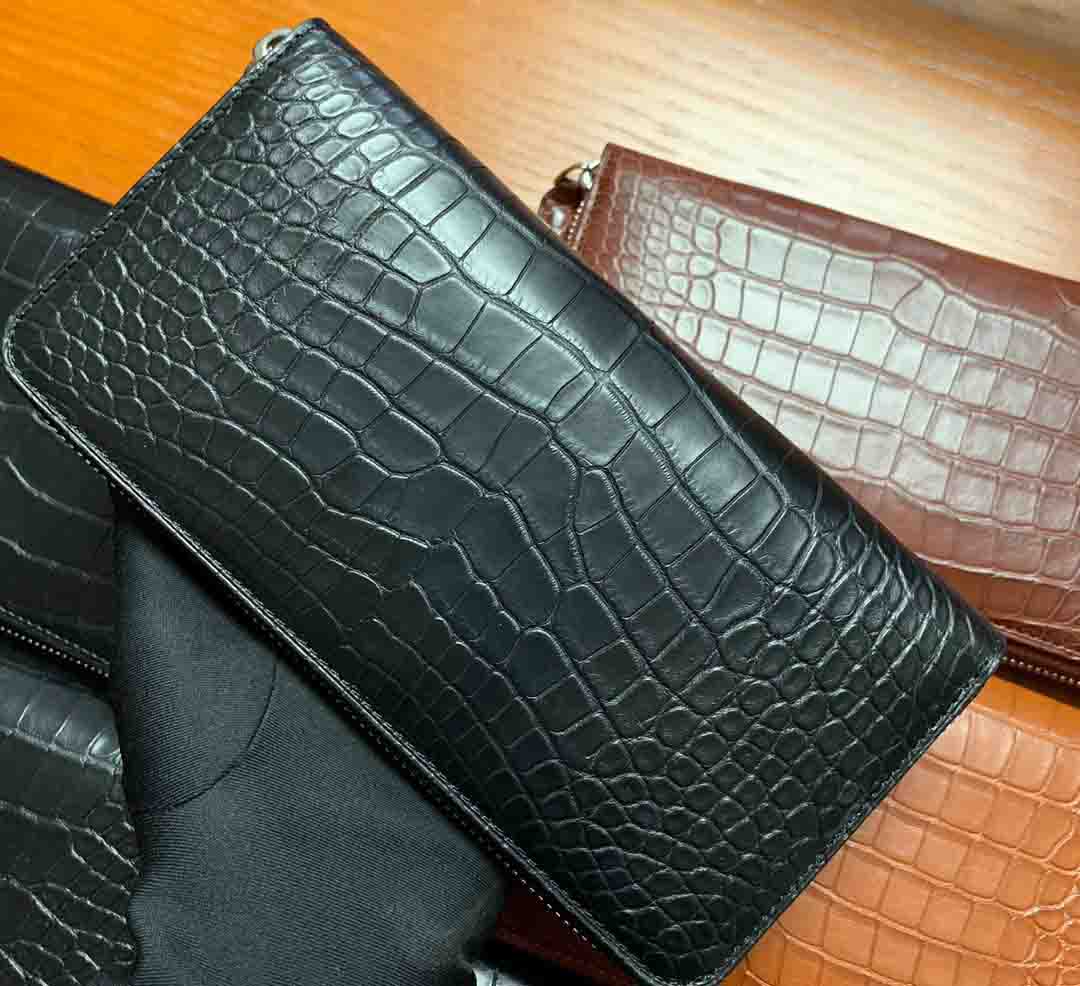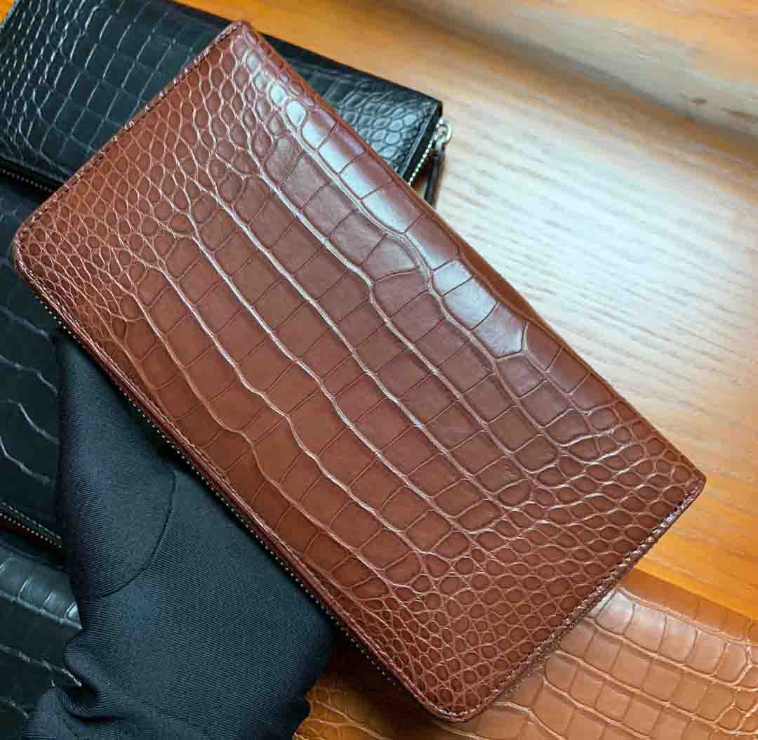 进口美洲鳄 哑光鳄鱼 小号单拉链钱包