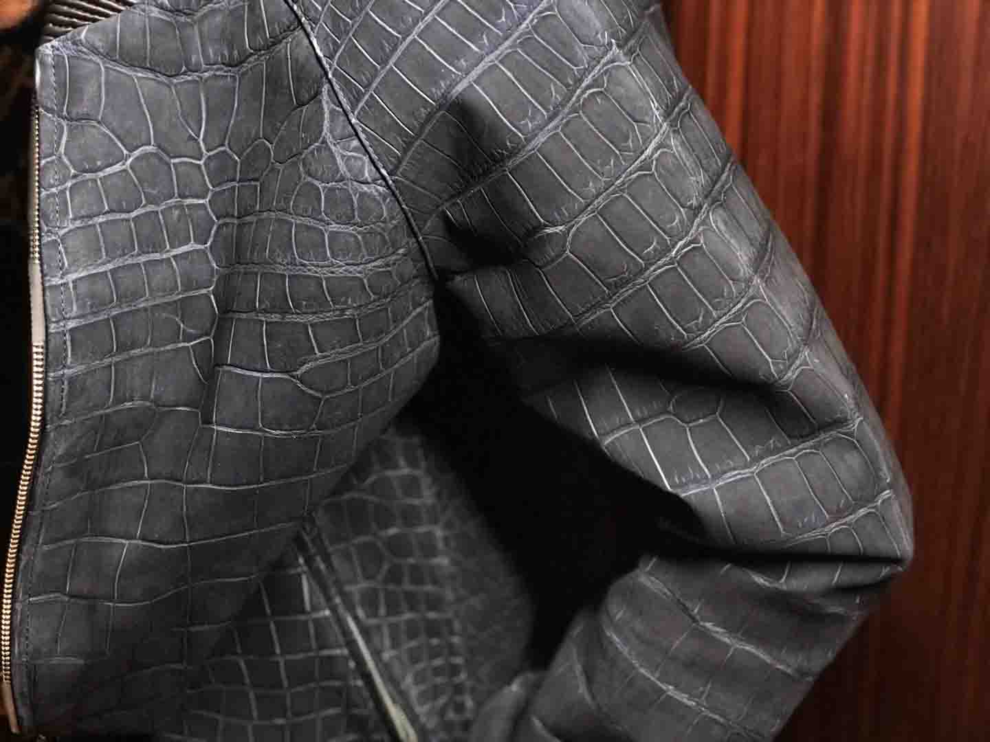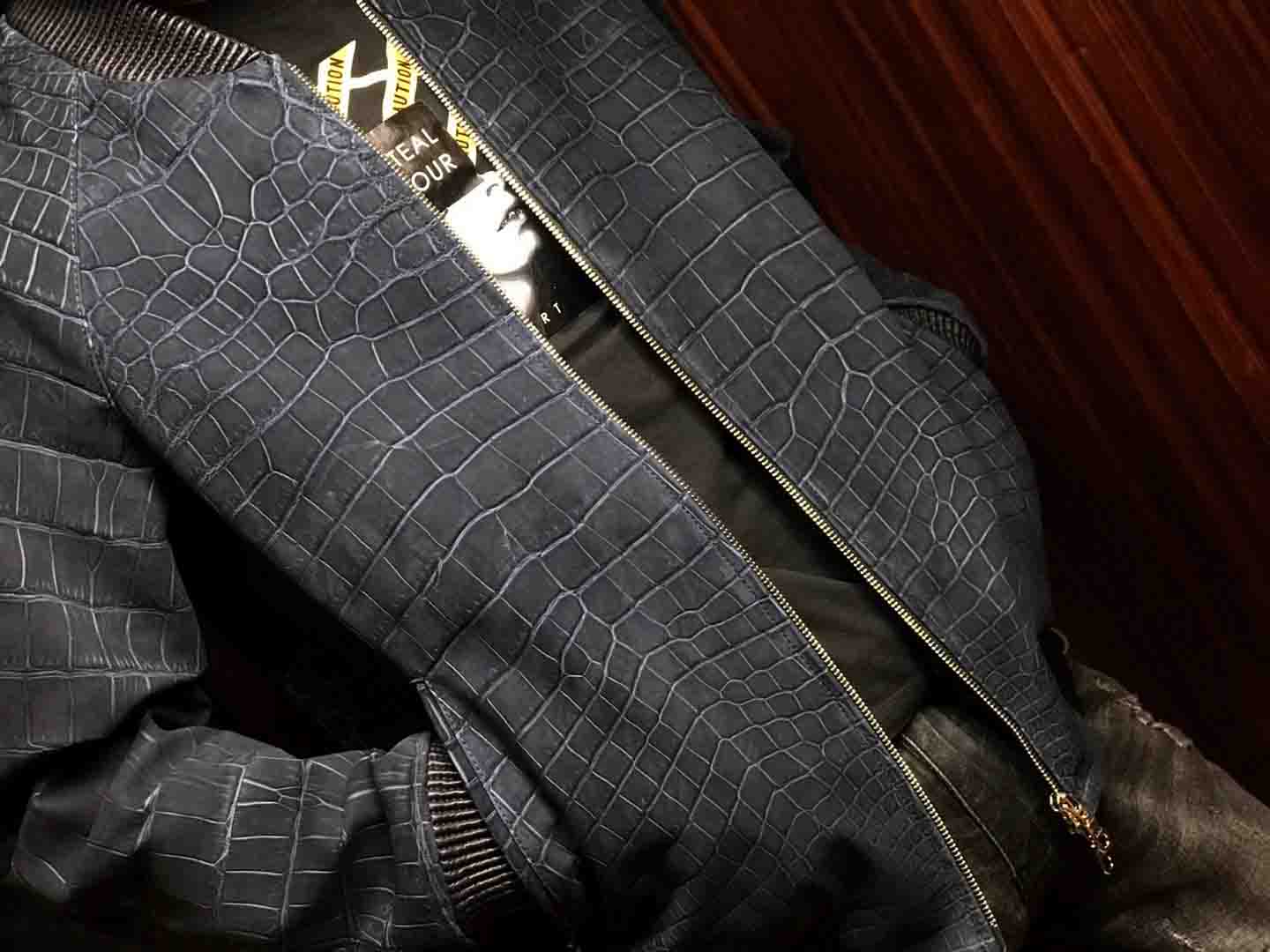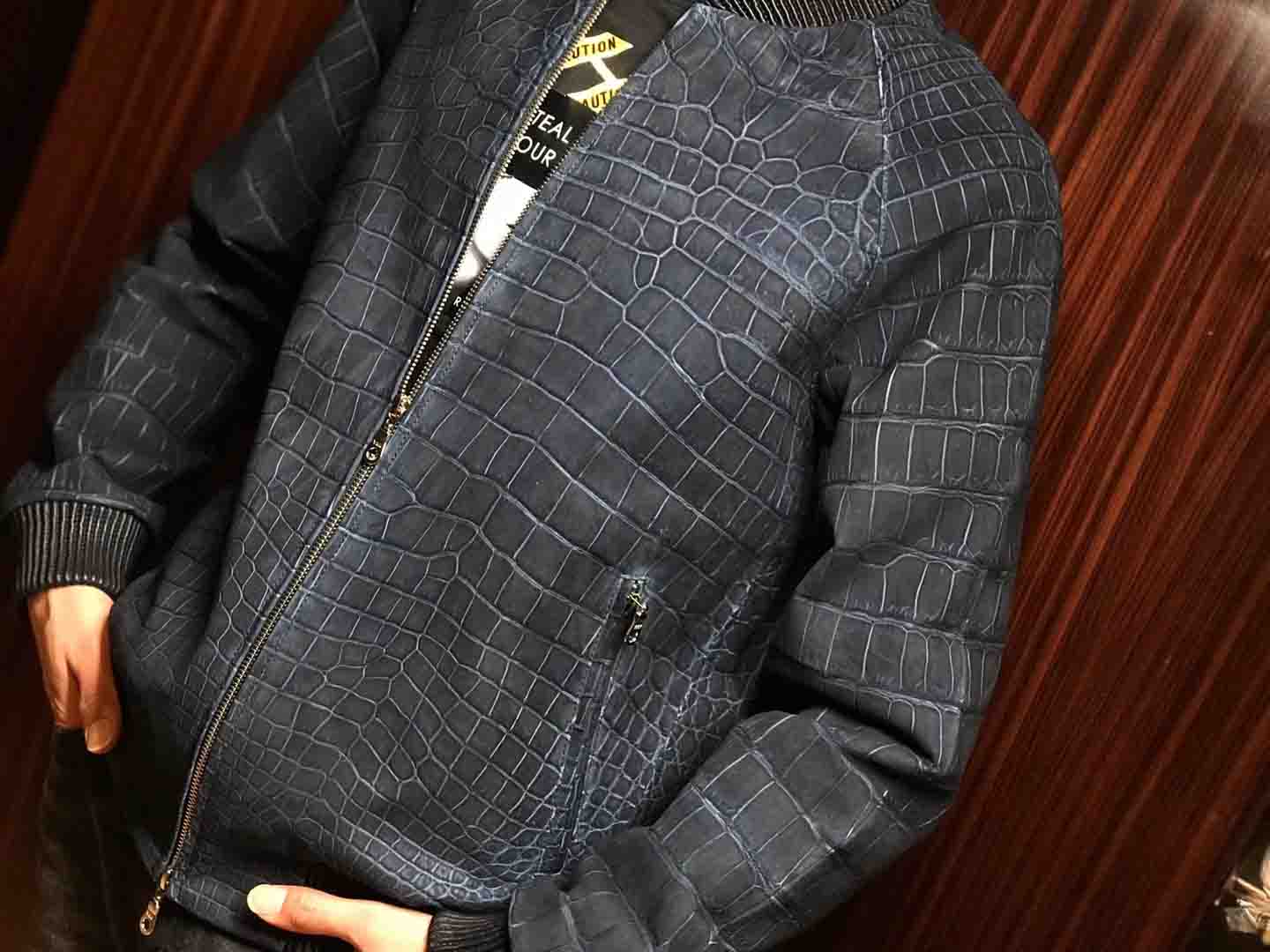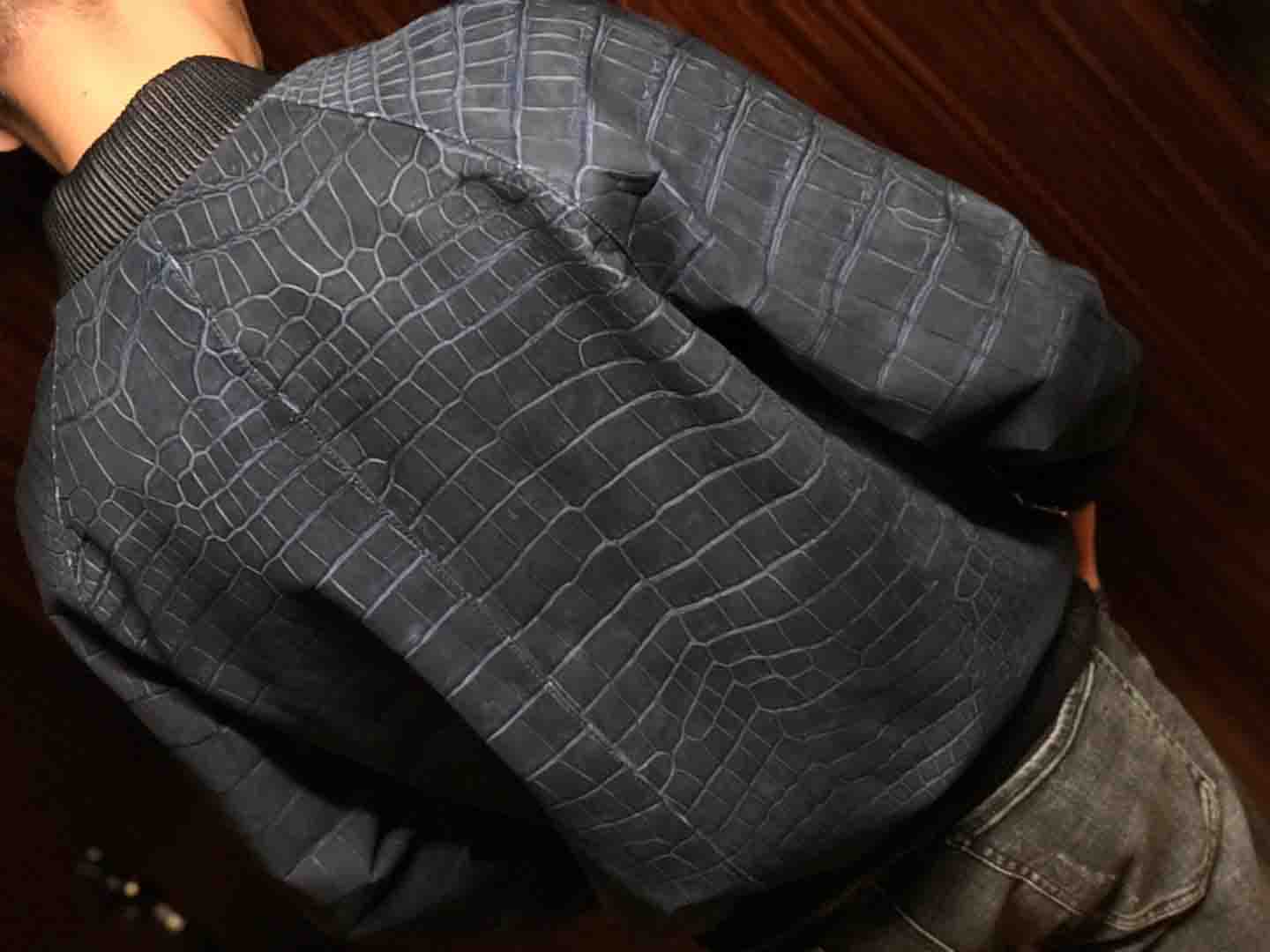#新款 #黑蓝色磨砂鳄鱼皮 休闲夹克49码。风衣大衣定制中心联系020-37417995