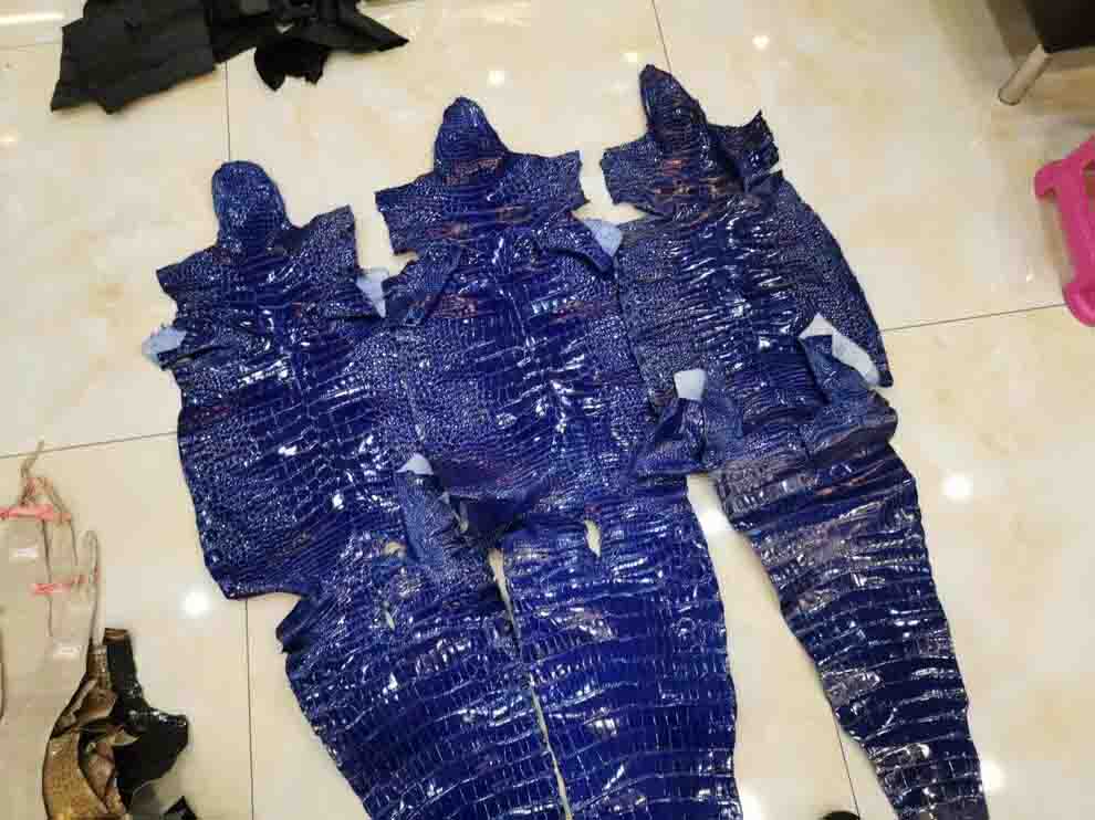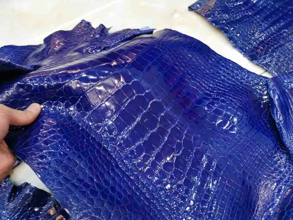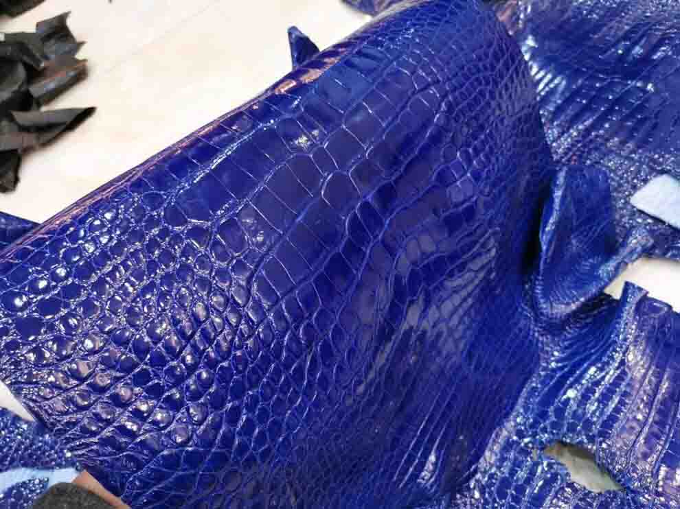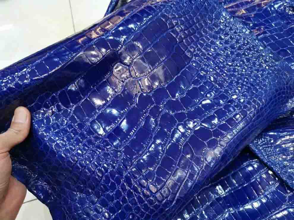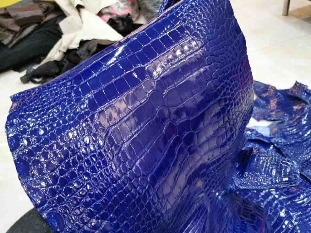 电蓝色亮面美洲鳄,一只birkin35的料,Kelly35也可以做,欢迎下单,等级不算高,但是性价比高,兴隆出品的美洲鳄。