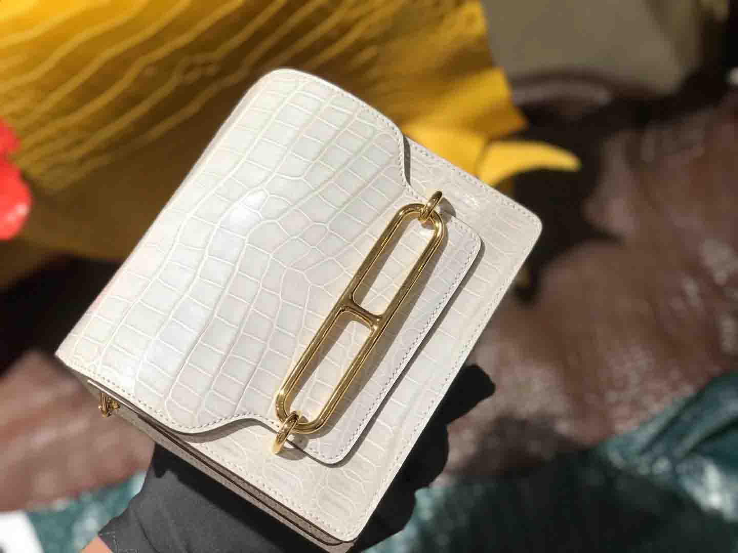 roulis mini的尺寸和constance mini差不多,有些人会觉得constance的大H太显眼,但是roulis可以说是不带H明显标志。而且相比constance的H扣子,roulis会好用许多,包包内部也做了更多的隔层。肩带的长度也很合理,斜背单肩背都合适。
