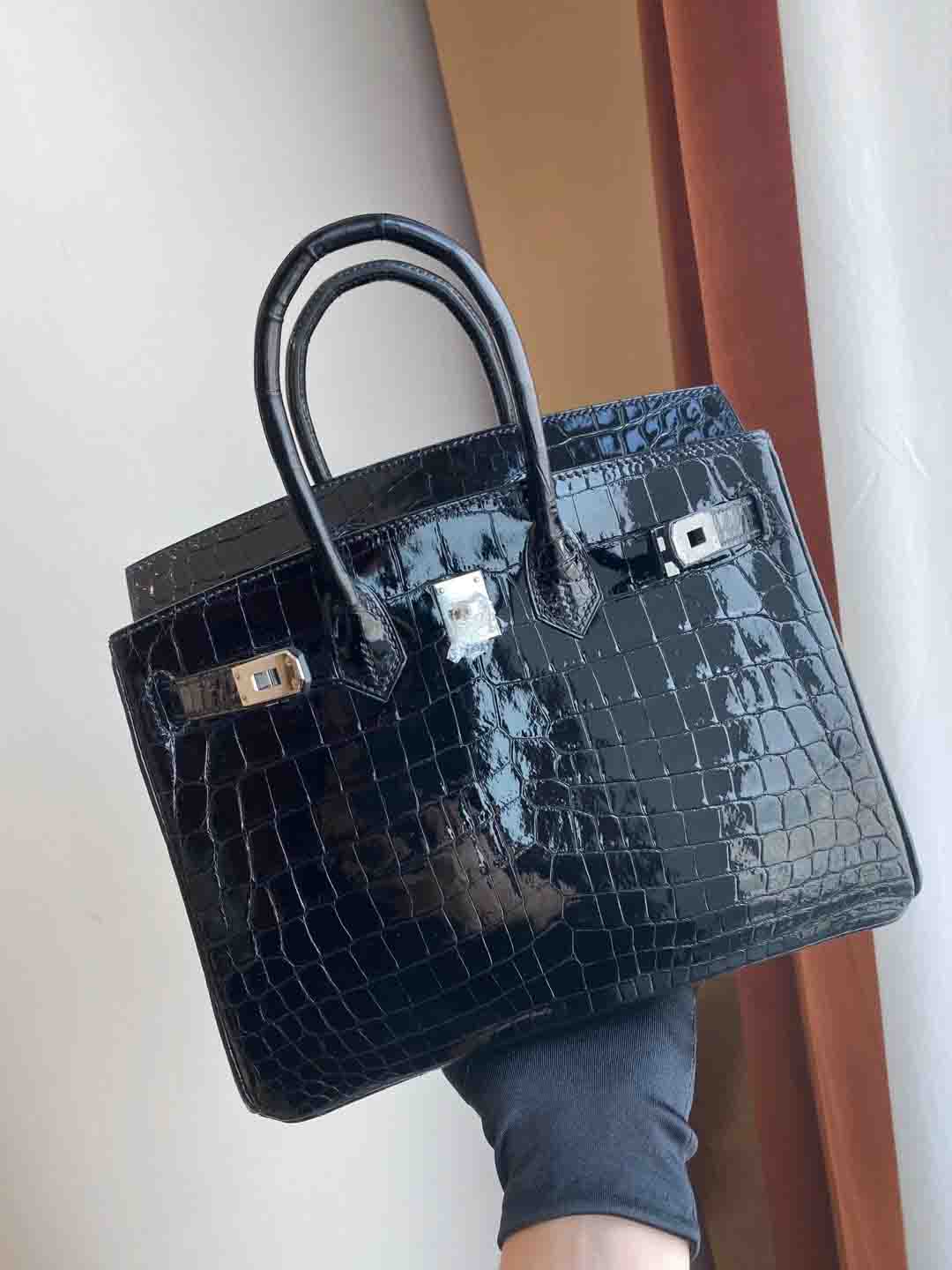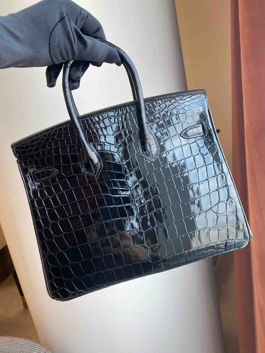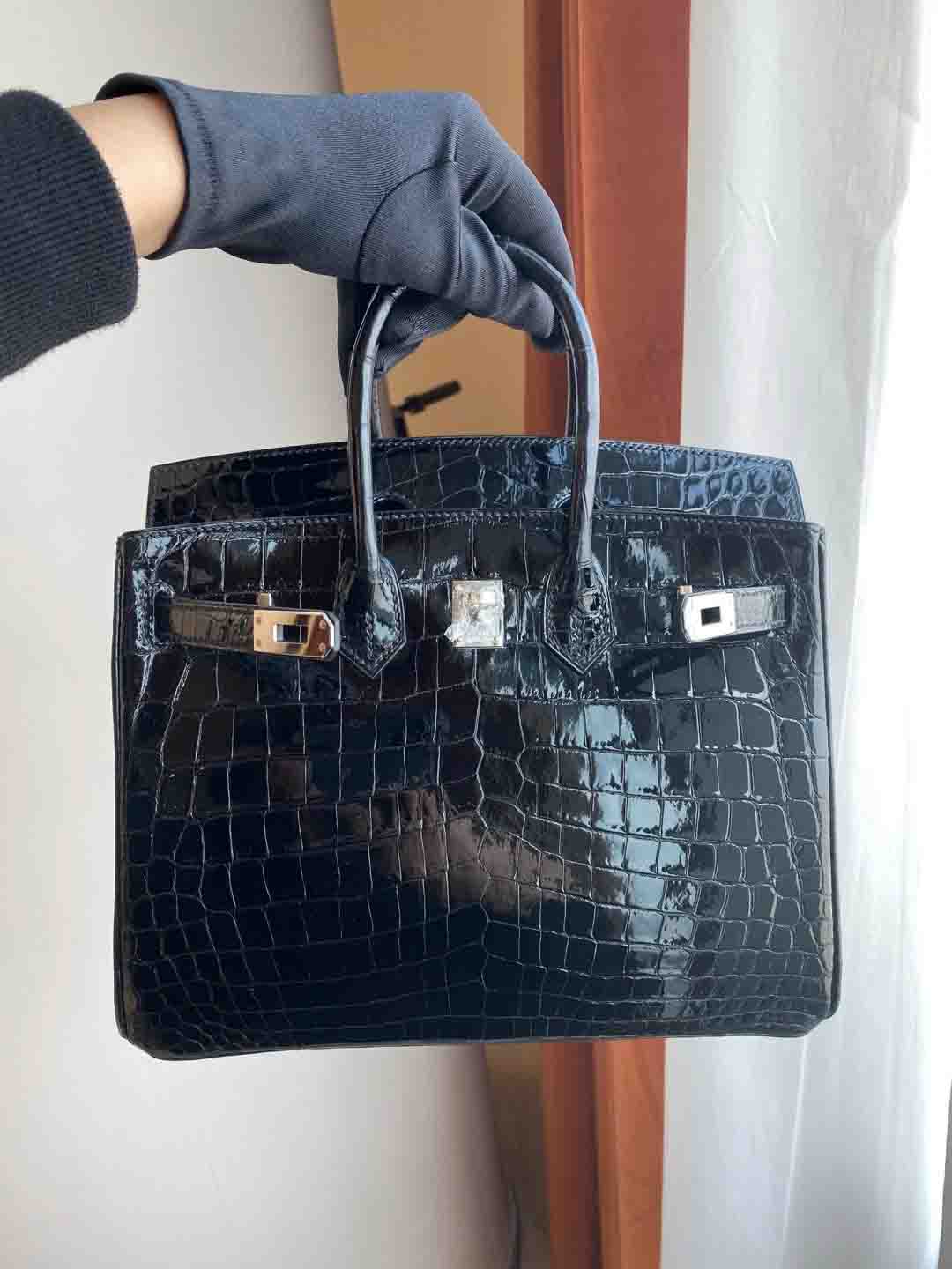 Bk25 亮面尼罗鳄女包,手提包 两点黑色 银扣 纯手工蜡线 现货一只 付款即发
