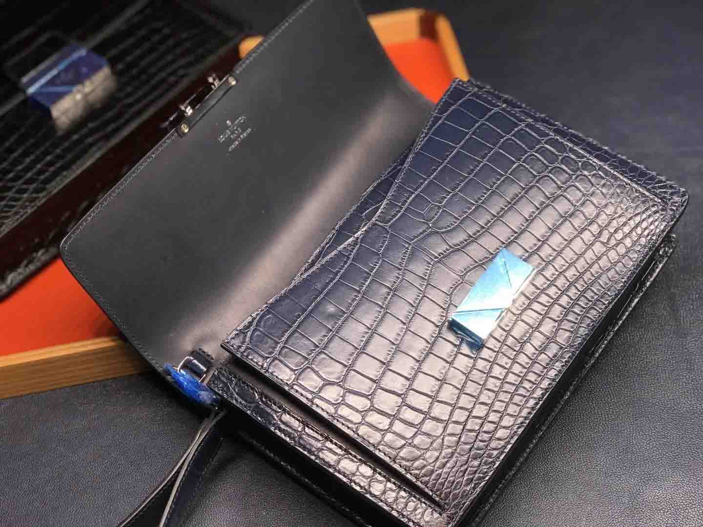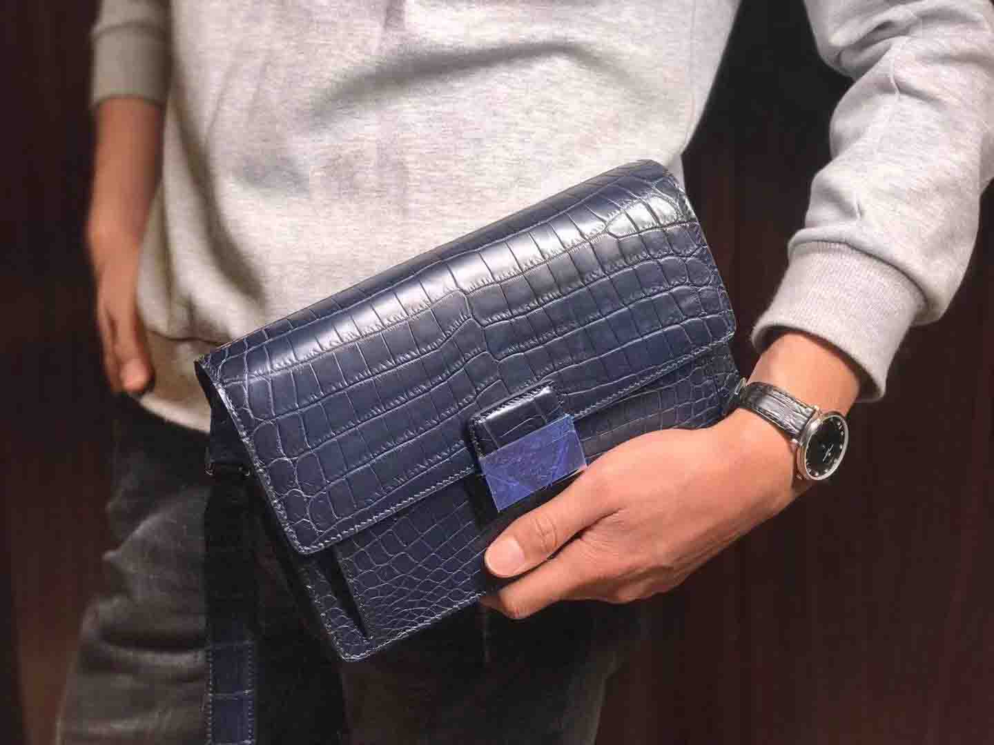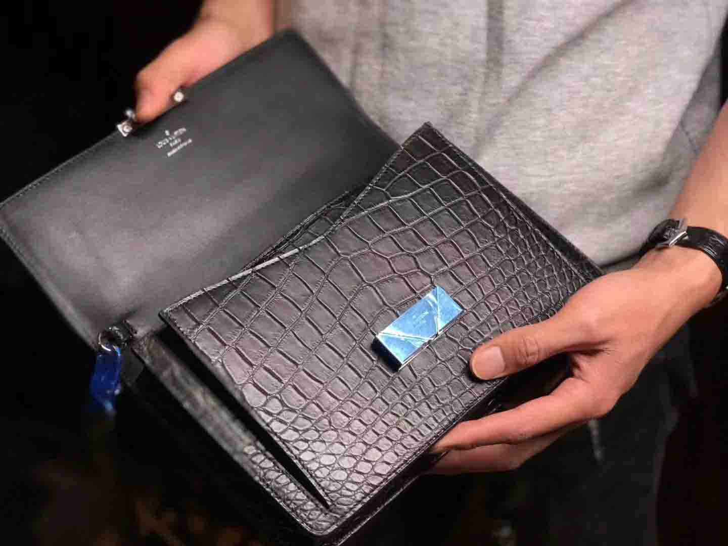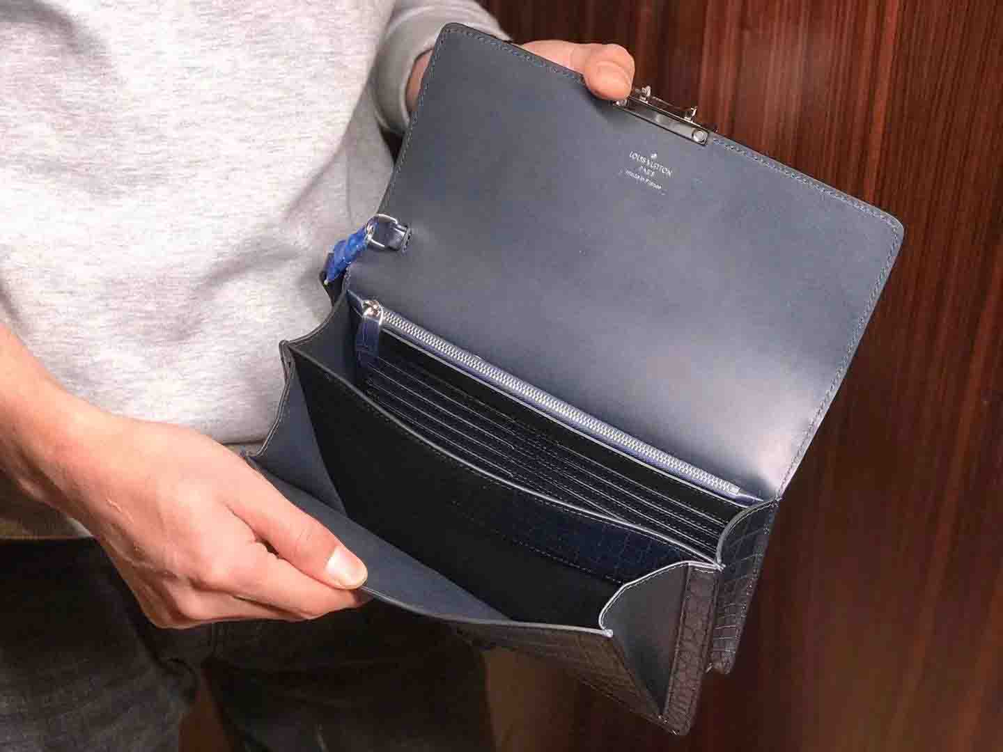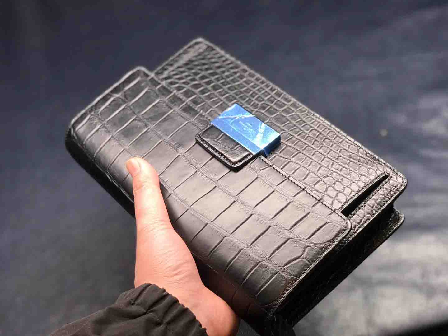 正品对版 哑光尼罗鳄lv夹包#深蓝 #黑色规格:24.5-16.5-5