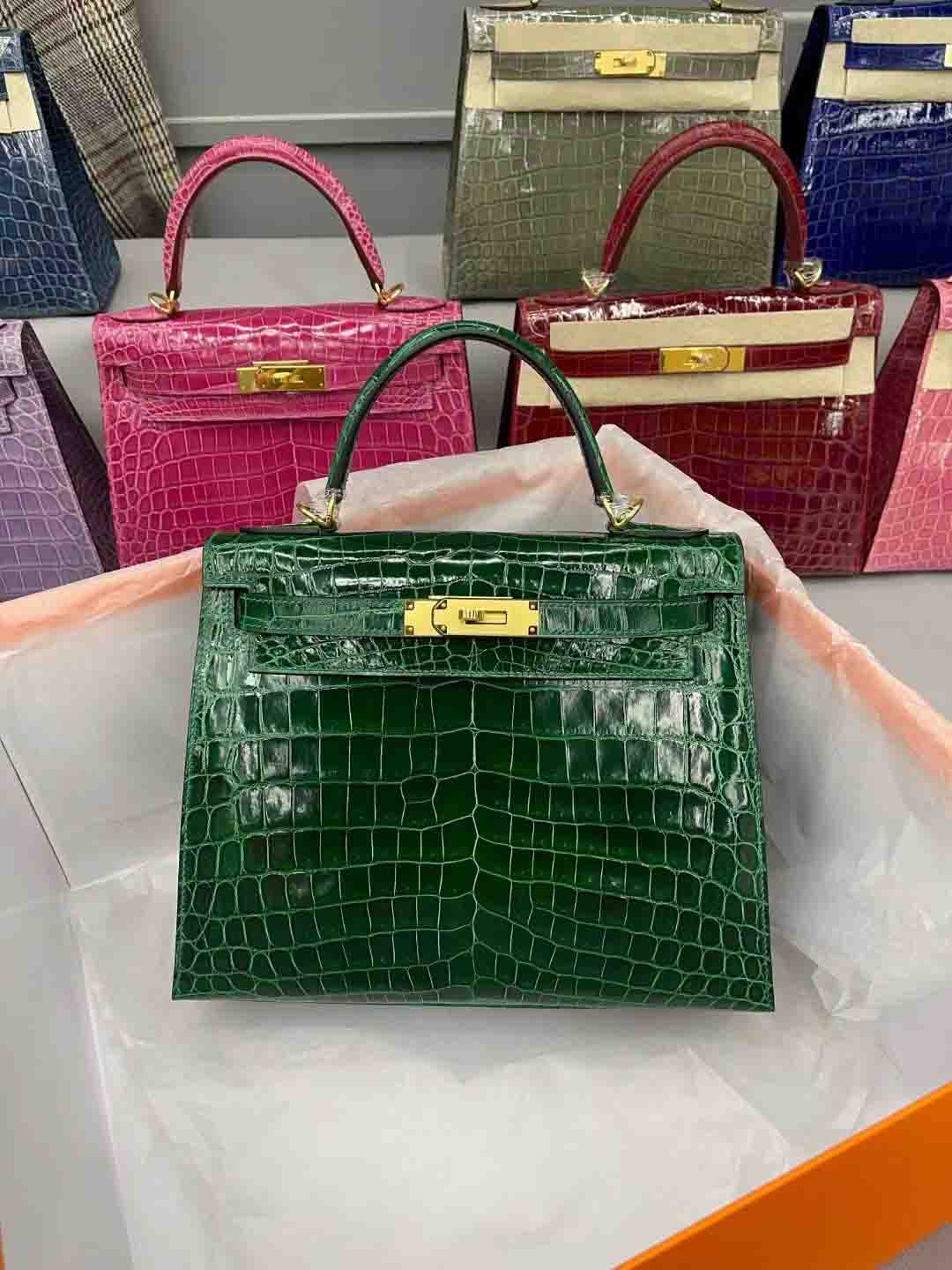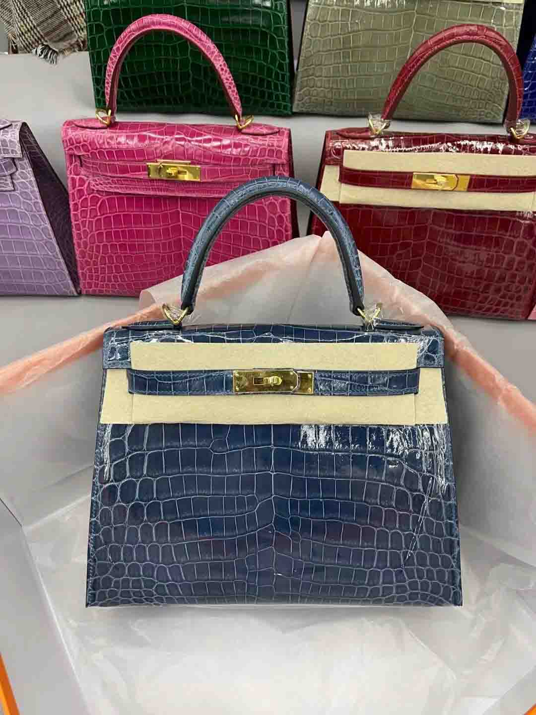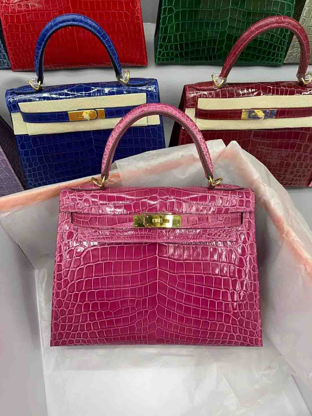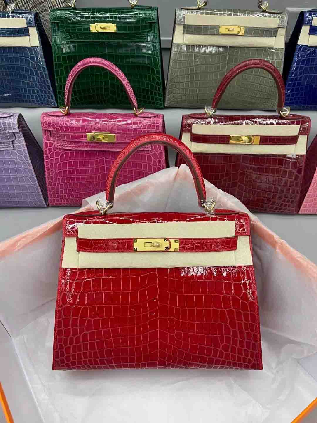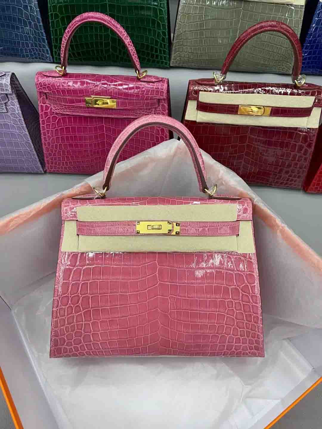 尼罗鳄 进口高光皮kelly28 金扣 9色现货 总有一个颜色适合您