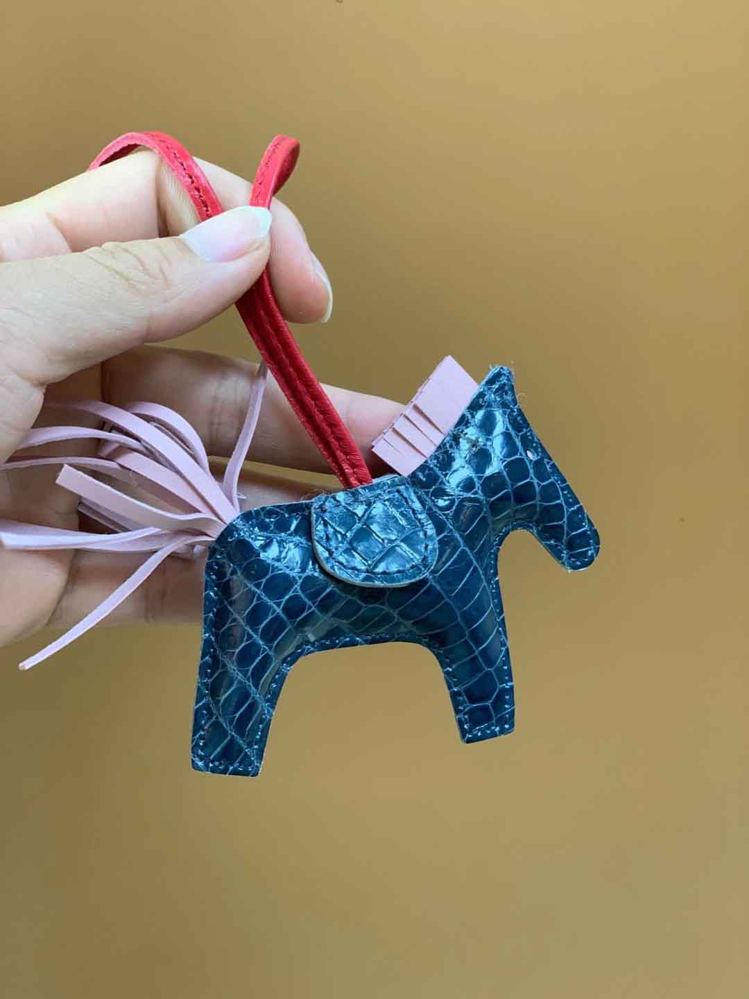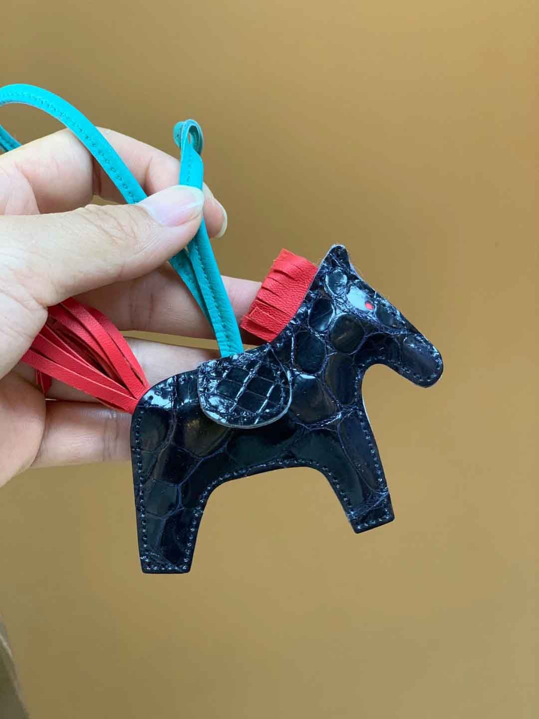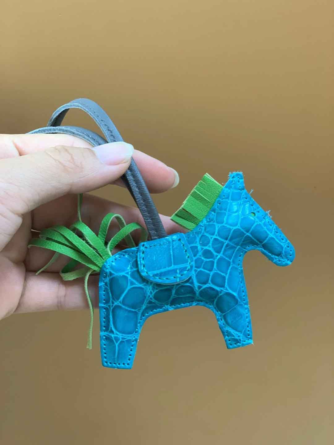 彩色鳄鱼小马,专户定做,小马挂件 原装H御用鳄鱼皮,全线手工加上原装麻线,完全和别家几百元的小马不在一个层次的好哇,颜色有限先到先得,这是GM大号,套起来一起用效果很好
