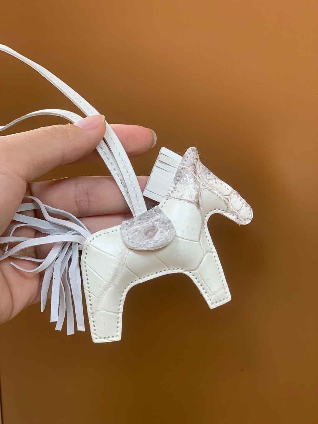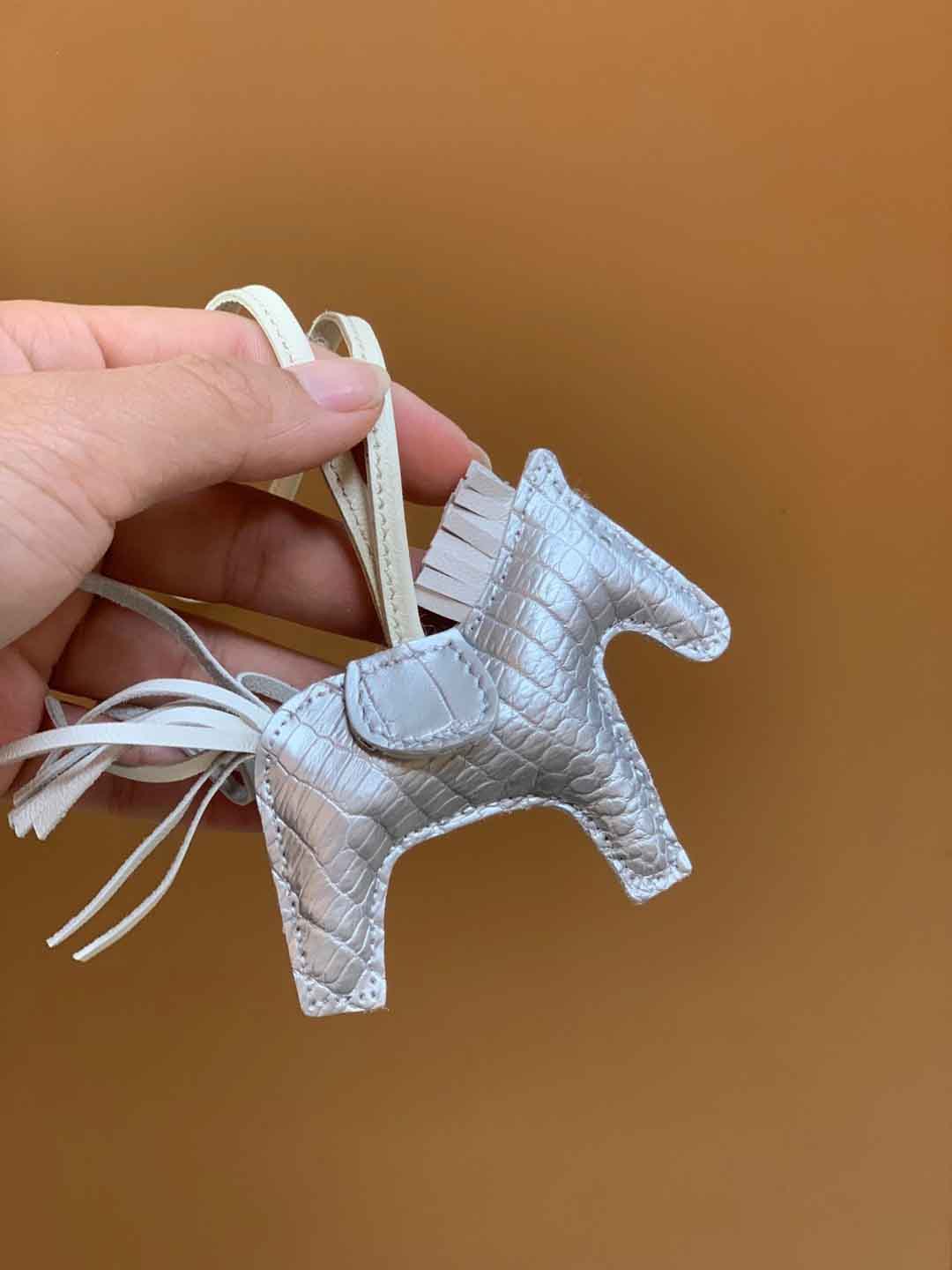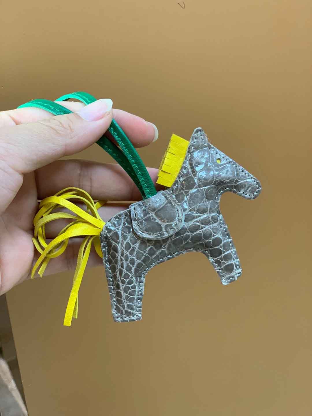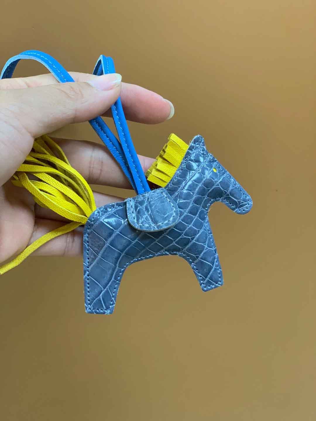彩色鳄鱼小马,专户定做,小马挂件 原装H御用鳄鱼皮,全线手工加上原装麻线,完全和别家几百元的小马不在一个层次的好哇,颜色有限先到先得,这是GM大号,套起来一起用效果很好
