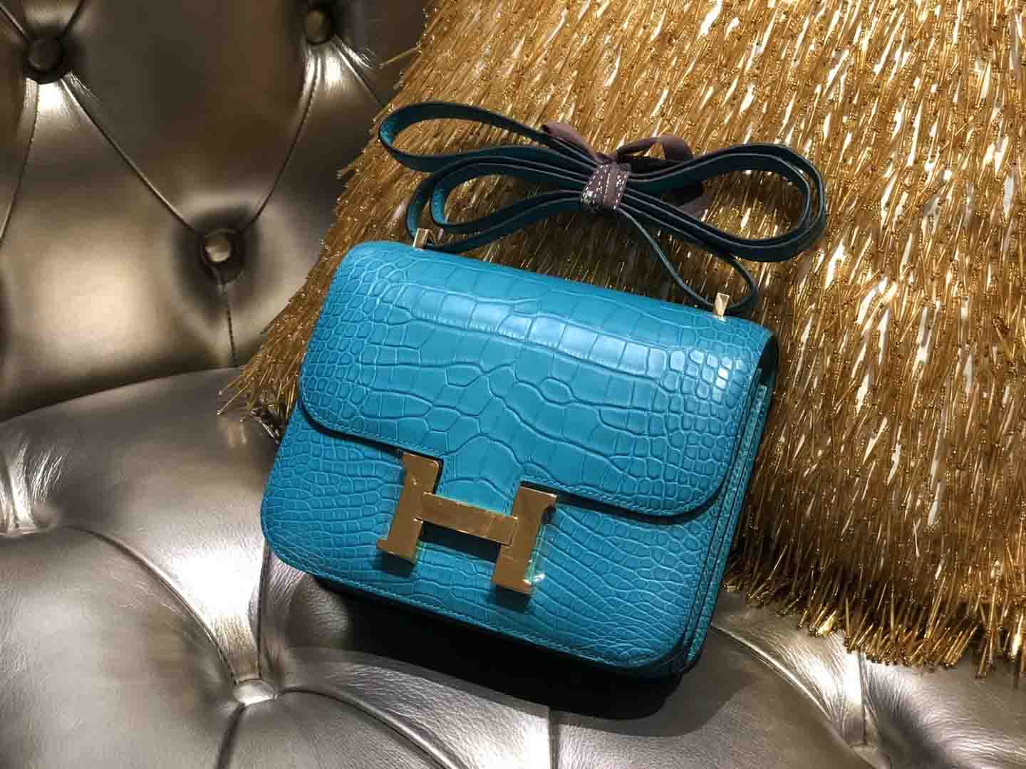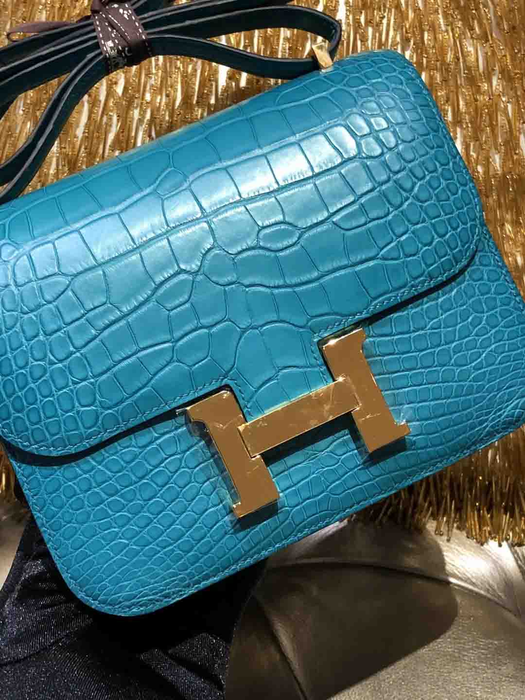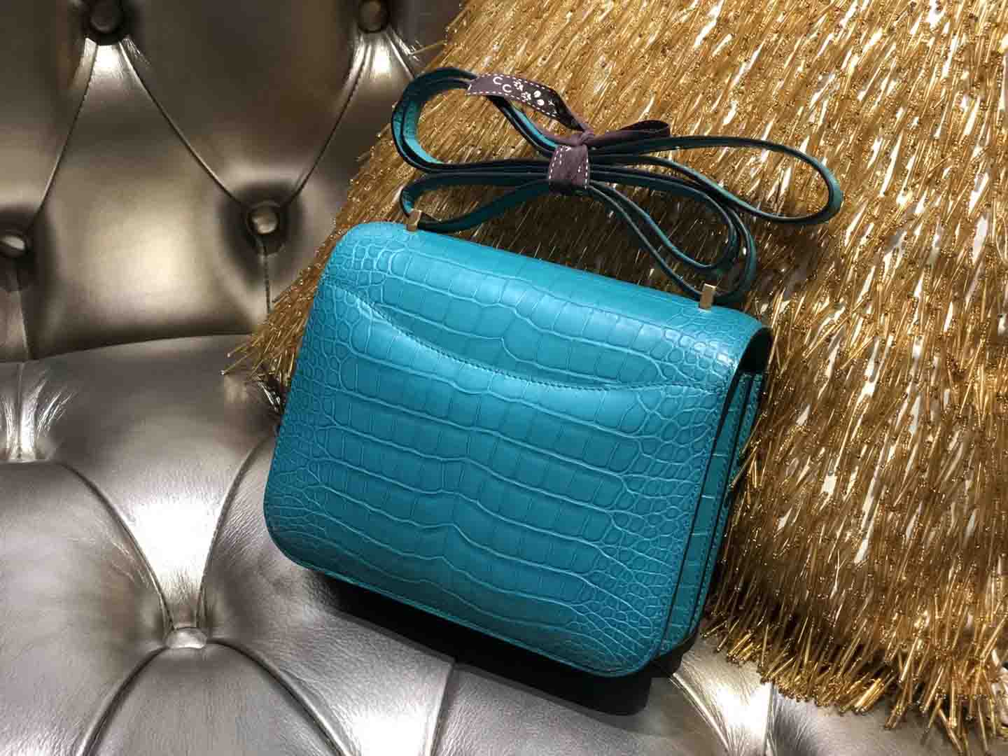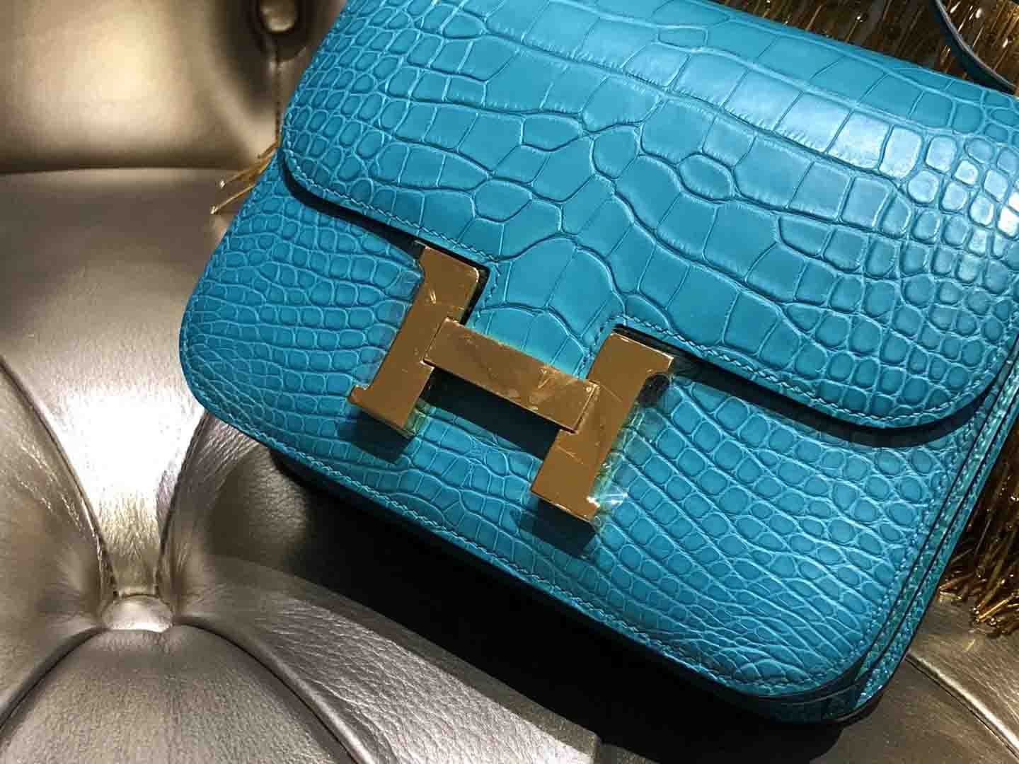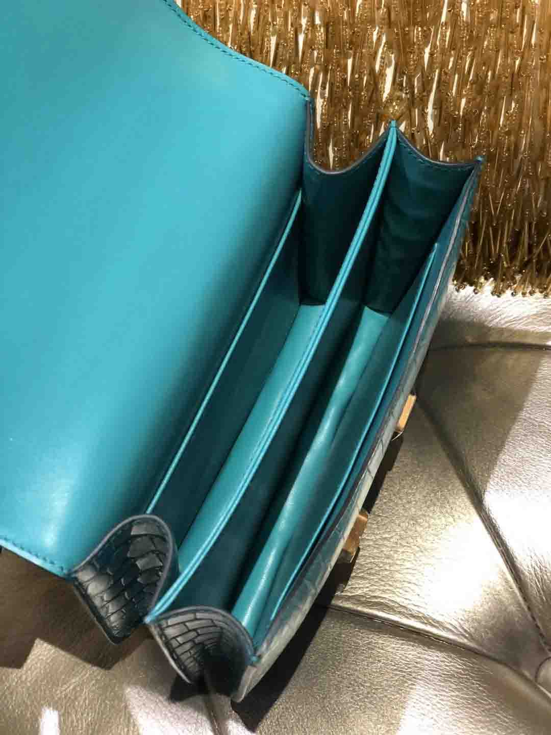 7f孔雀蓝 金扣 康康19,高端兴隆美洲鳄鱼皮纯手工制作
