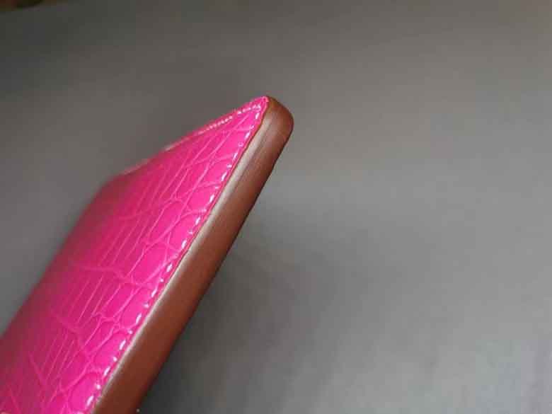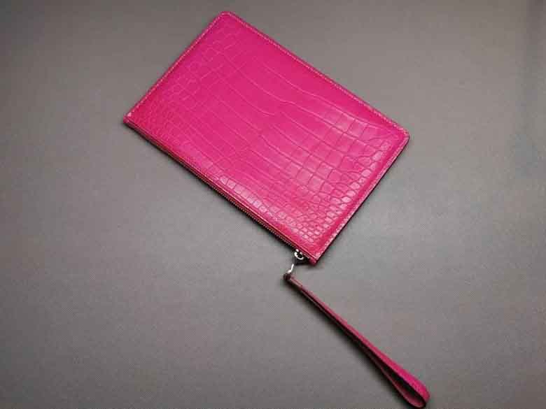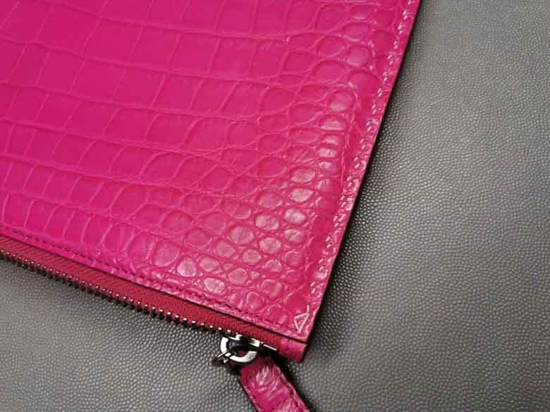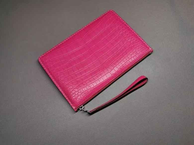 桃粉色女士信封包鳄鱼皮,哑光鳄鱼,全手缝。