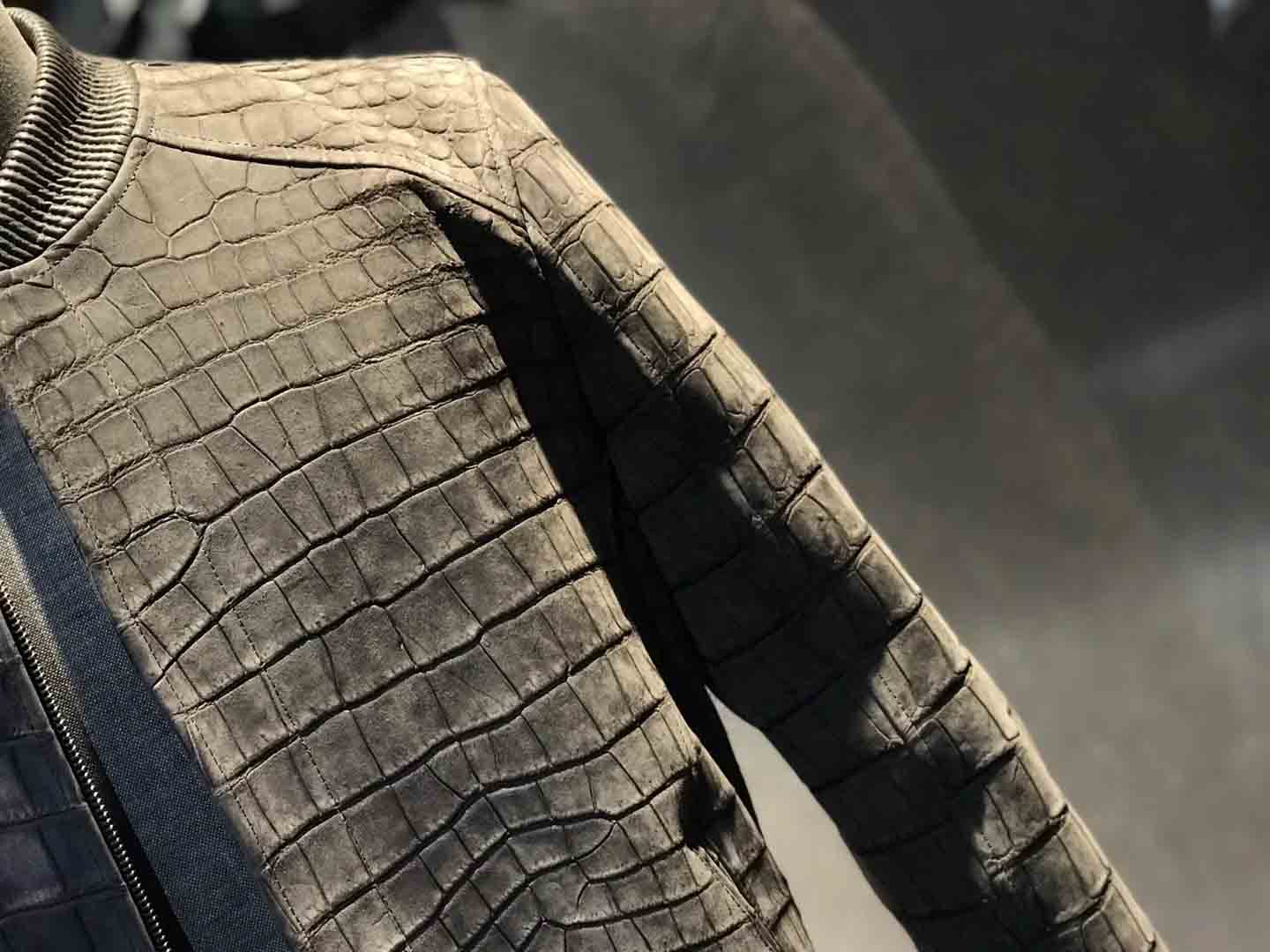 灰绿色鳄鱼皮夹克