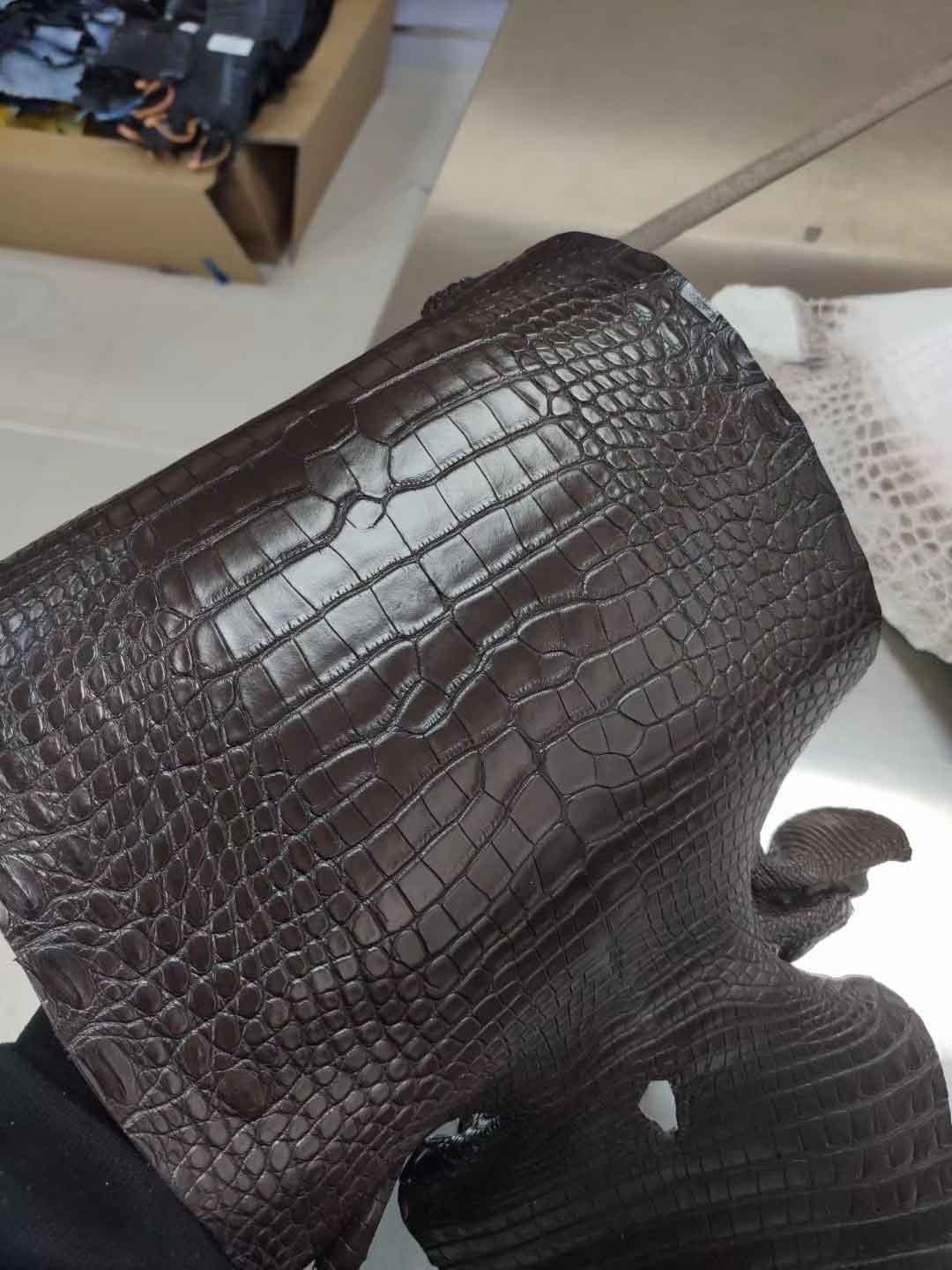2020年度首发乌木色鳄鱼皮,新色新色全网最快,#乌木色亚光美洲鳄鱼皮料,
