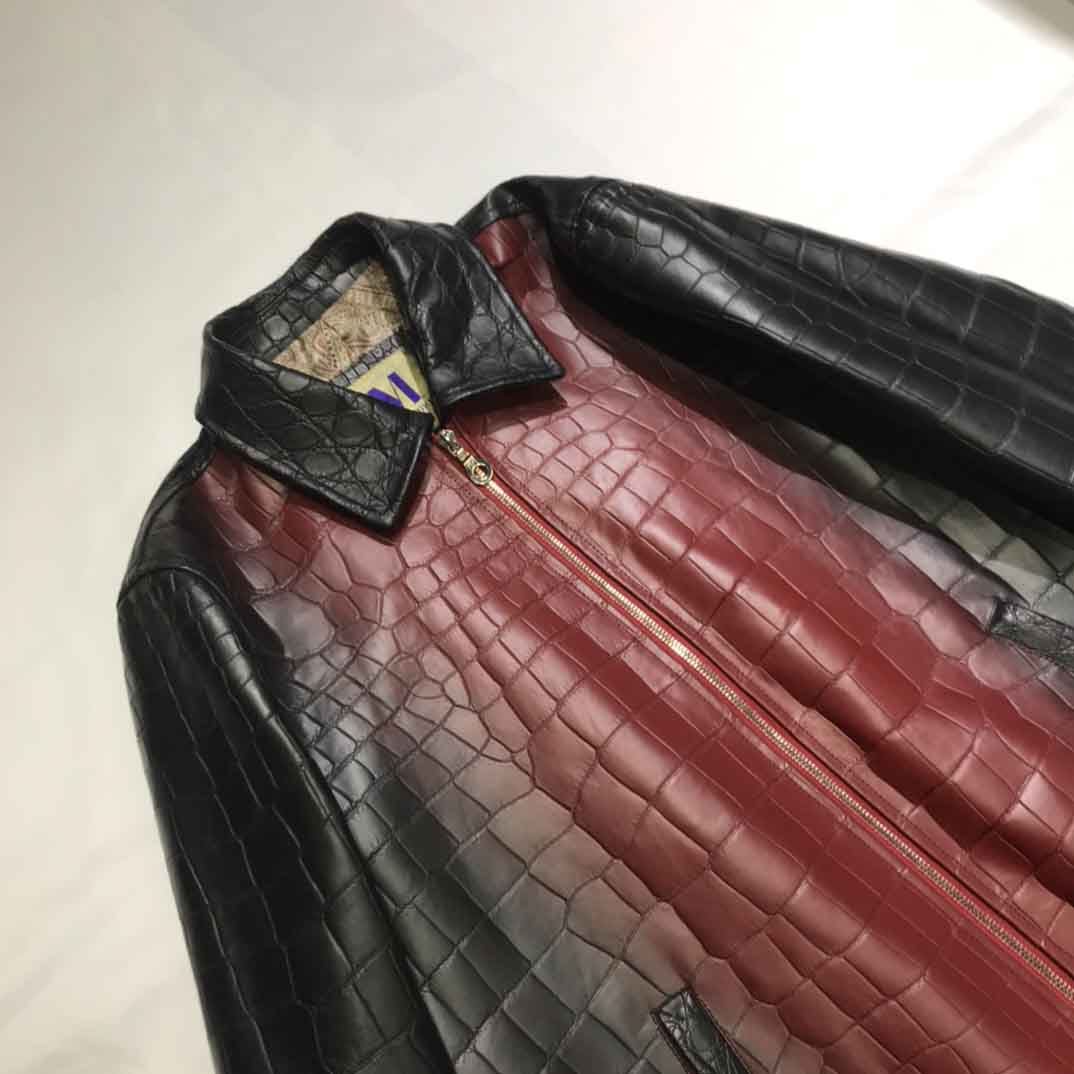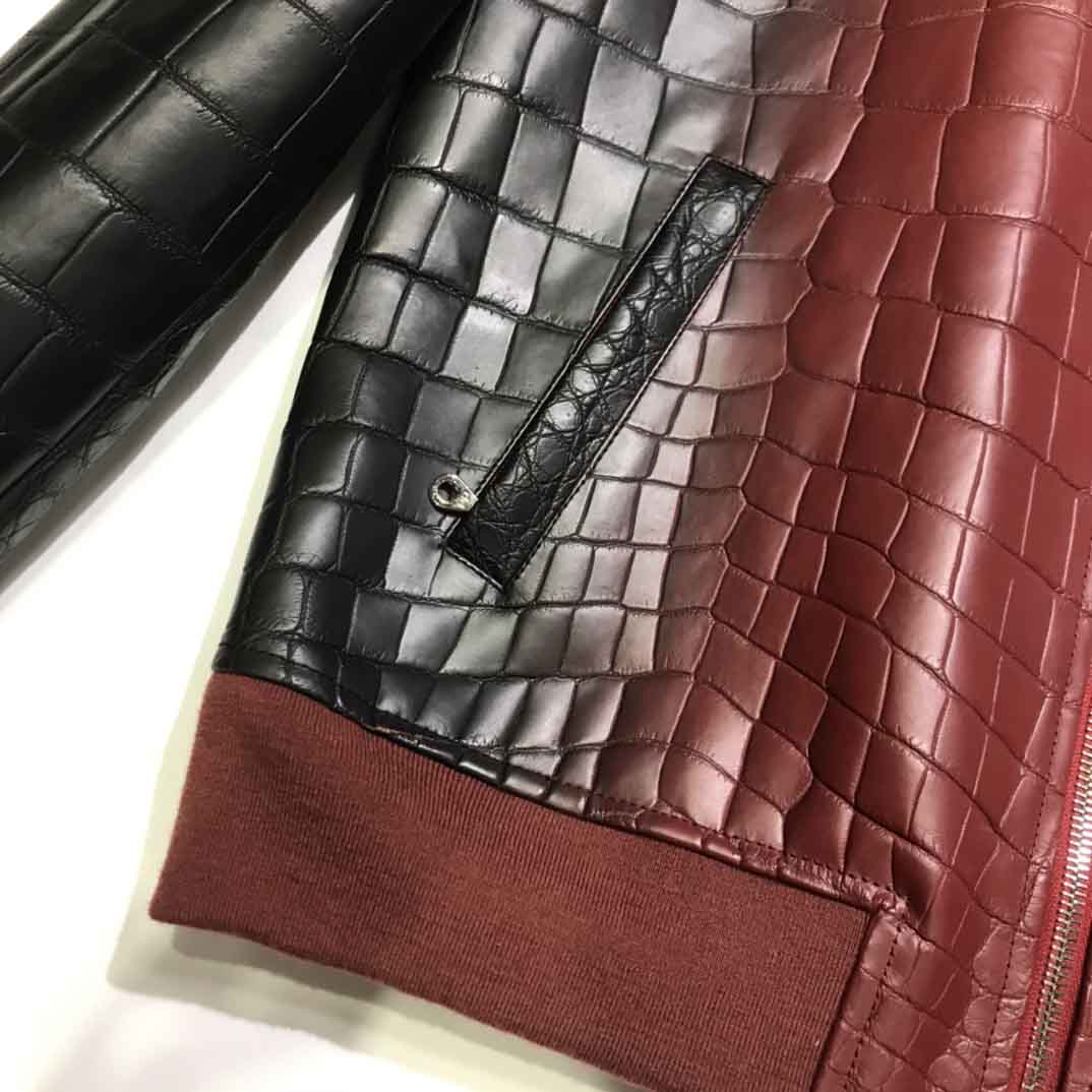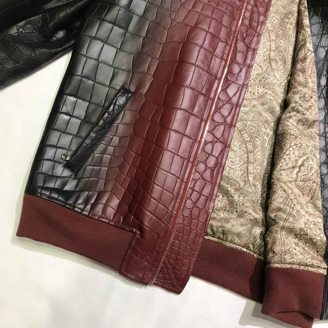 拼色鳄鱼皮大衣,男士鳄鱼皮大衣定做工厂,是采用动物皮经过特定工艺加工成的皮革做成的衣服,主要作用是防寒。皮衣采用的制作原料有牛皮、羊皮、蛇皮、鱼皮等动物皮。皮衣皮质柔软,没有残疵点,色彩均匀,没有明显色差,有光泽,颜色协调。