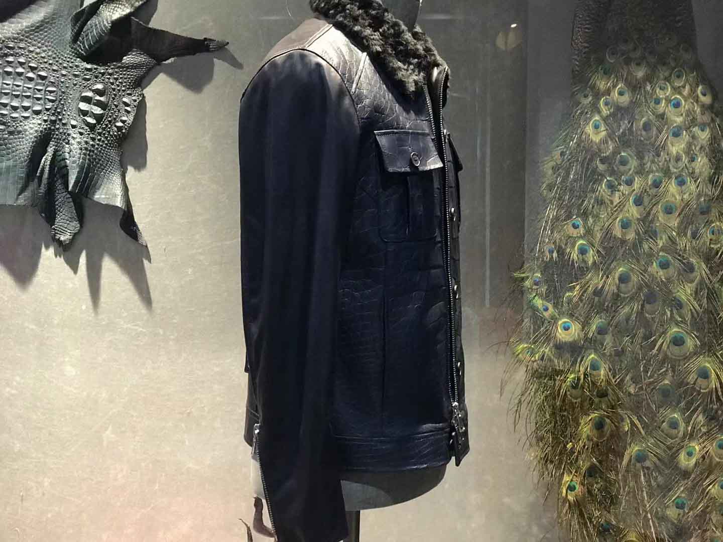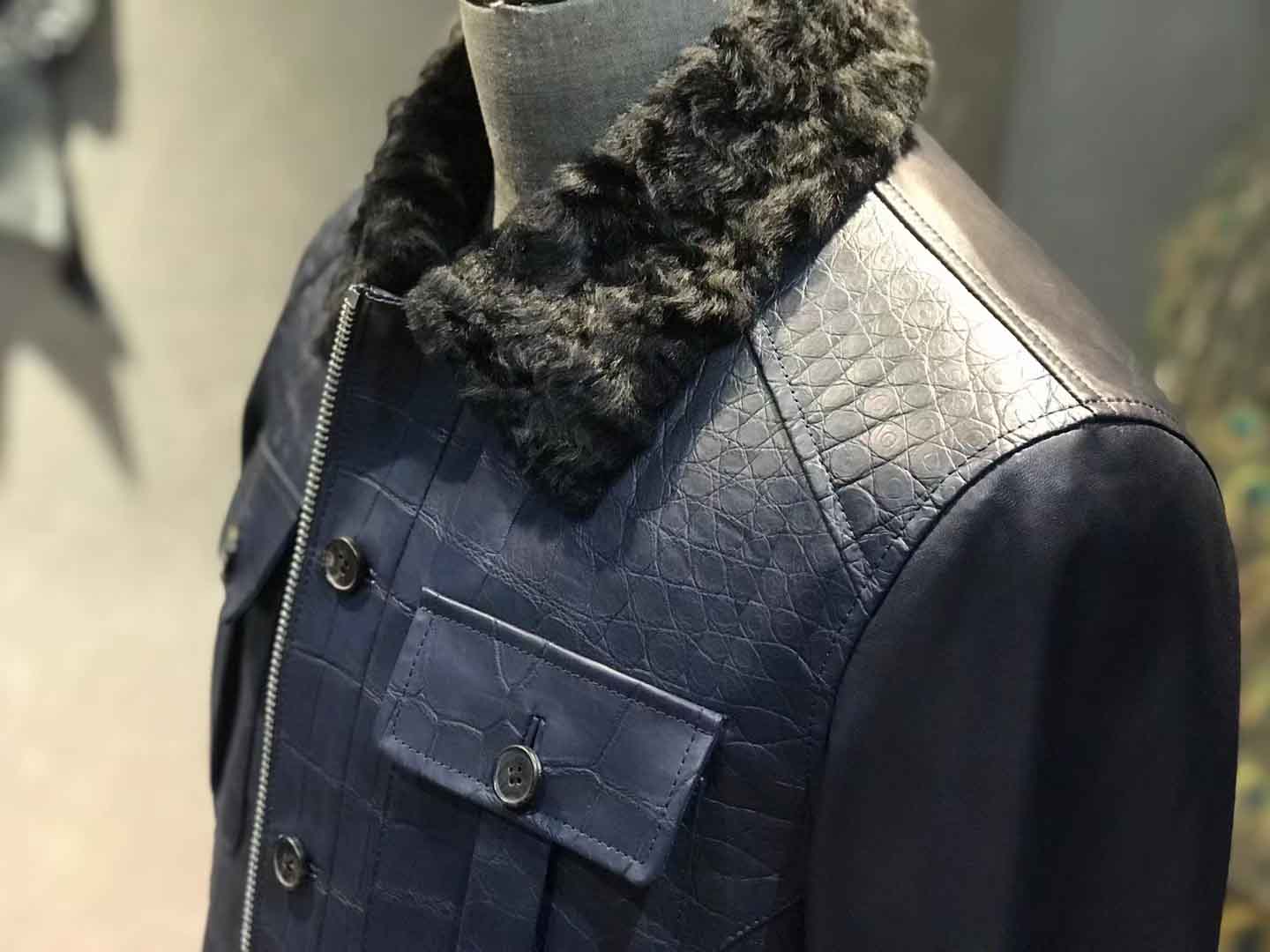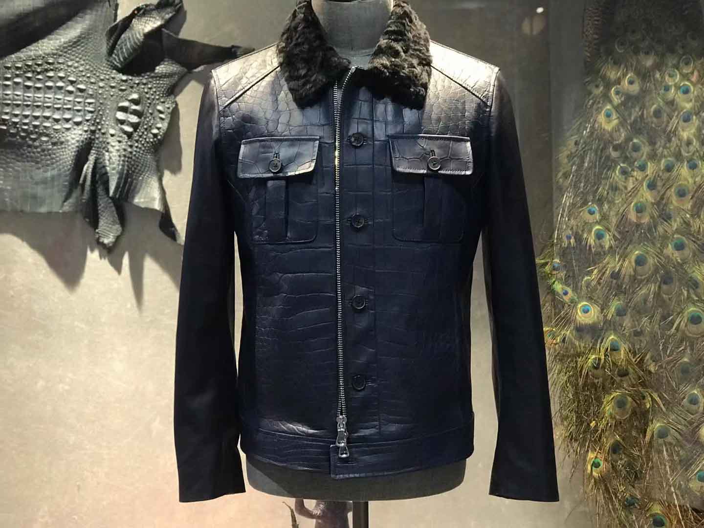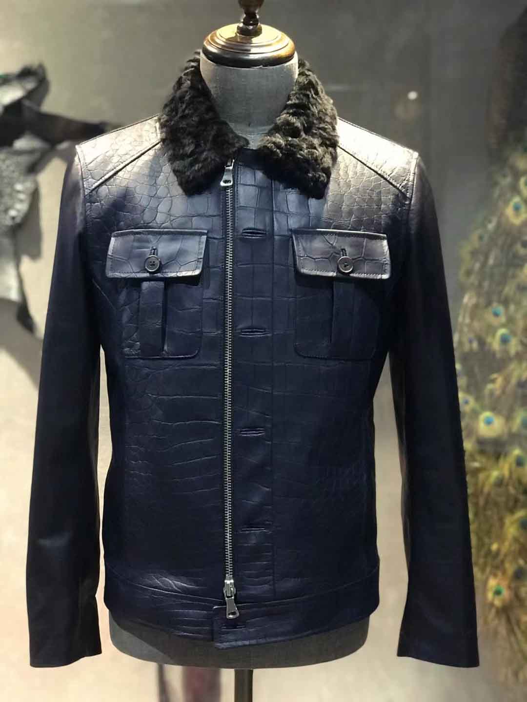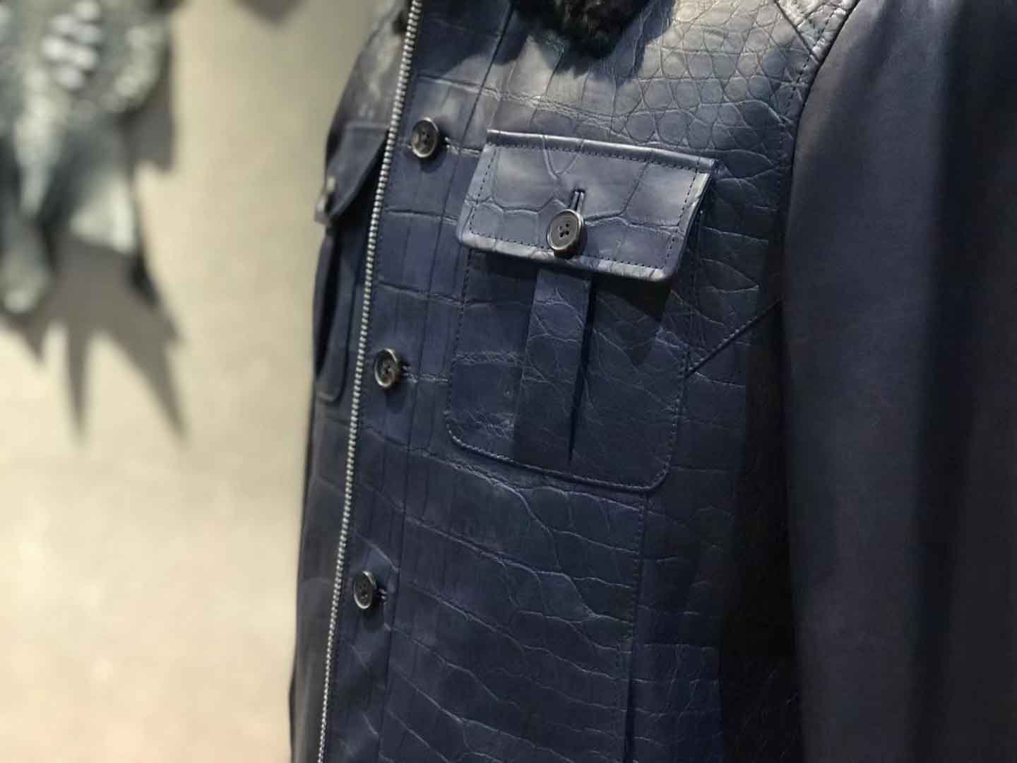 【新出现货】拼皮鳄鱼皮毛领夹克 深蓝色49码