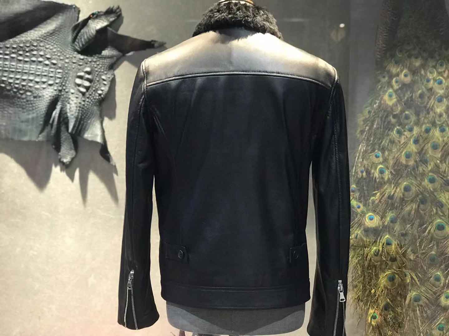 拼皮鳄鱼皮毛领夹克 黑色50码