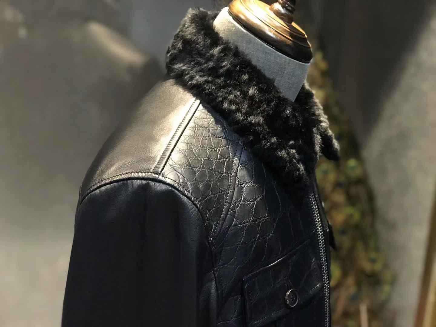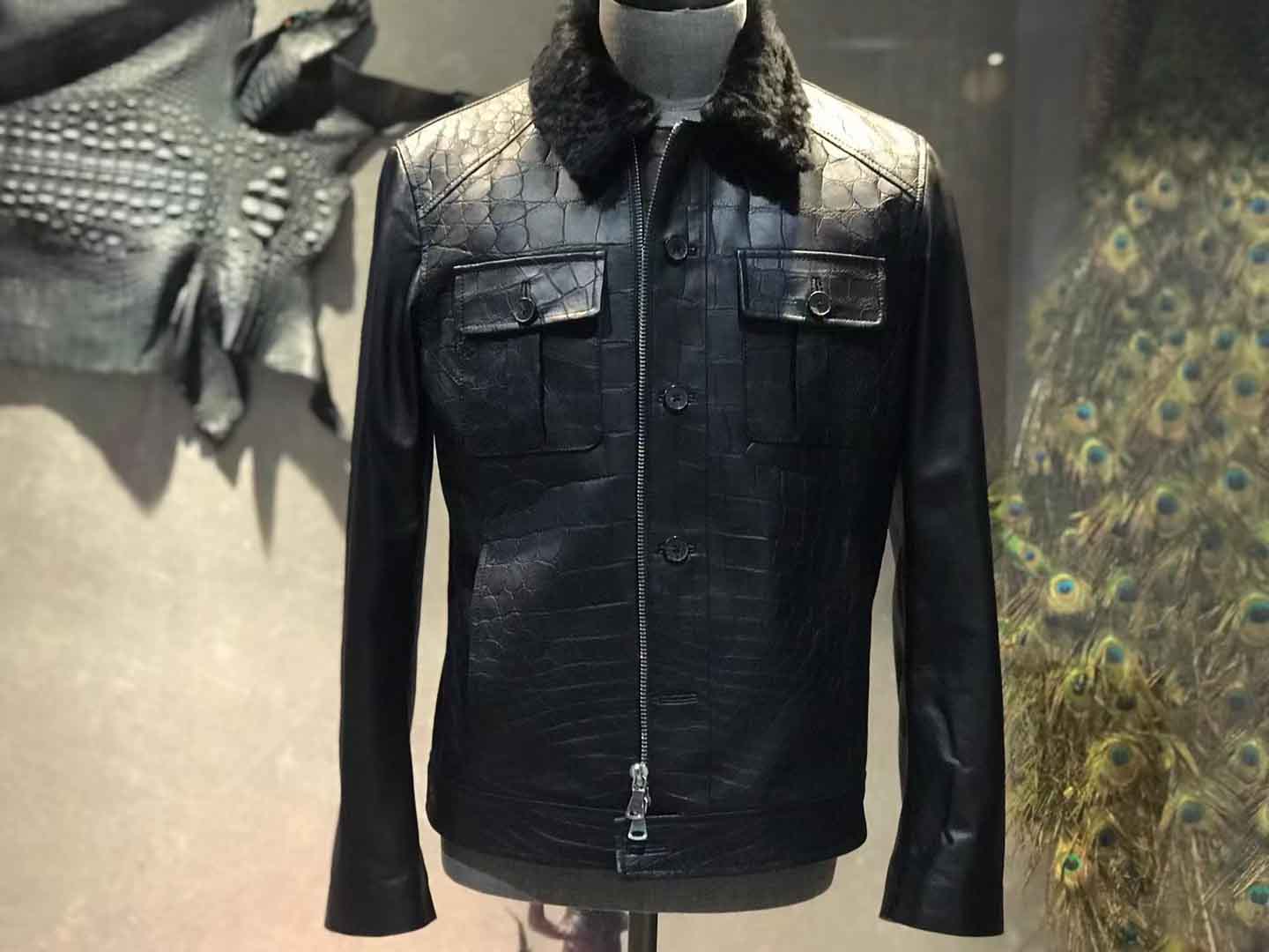 鳄鱼皮毛领夹克