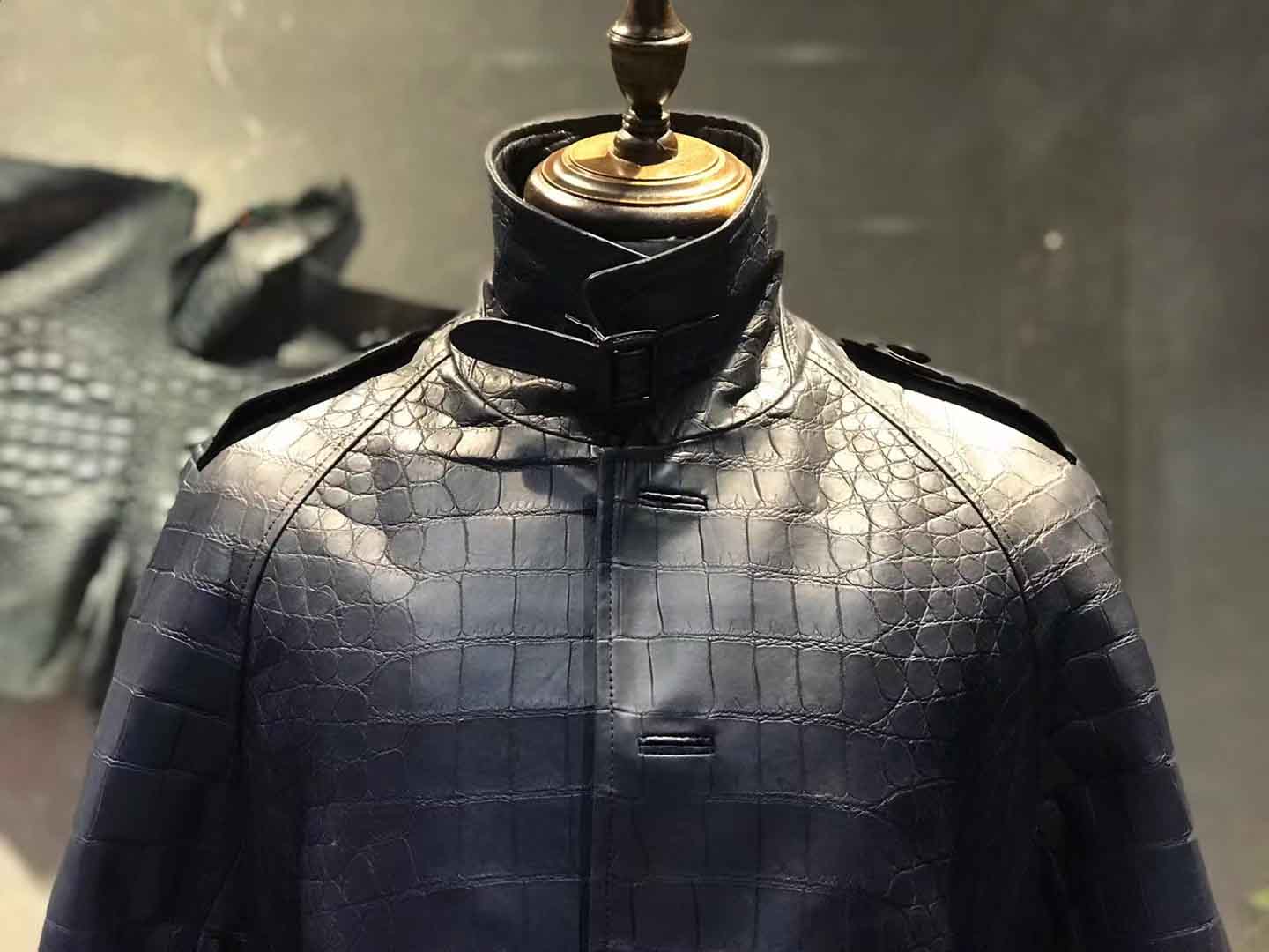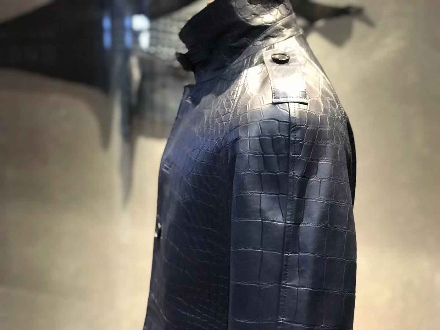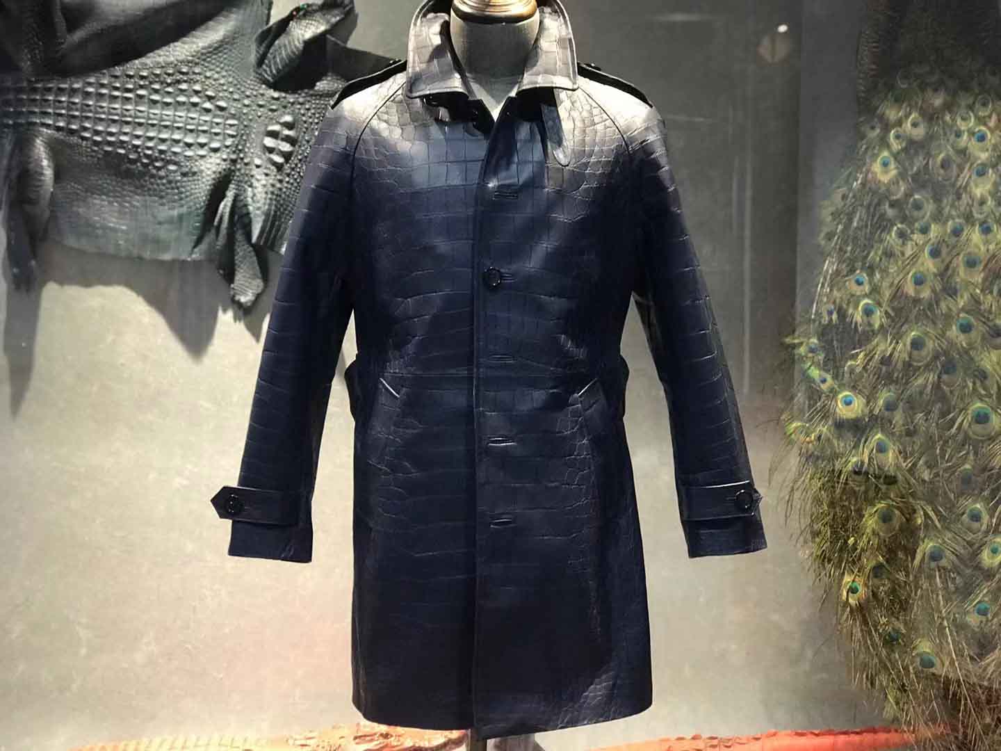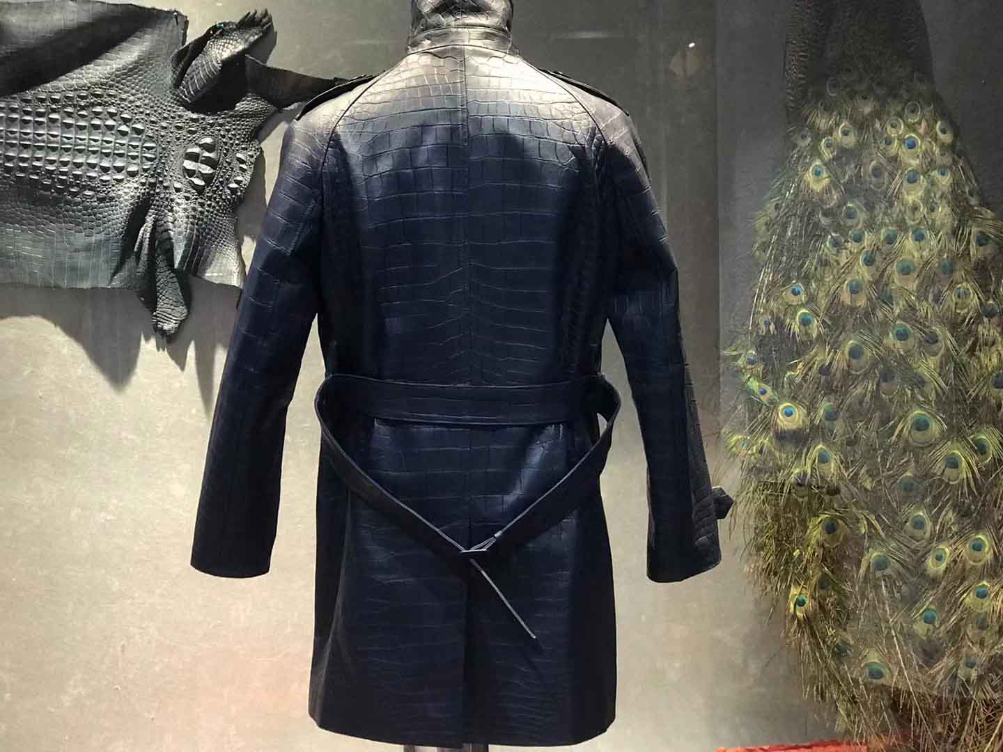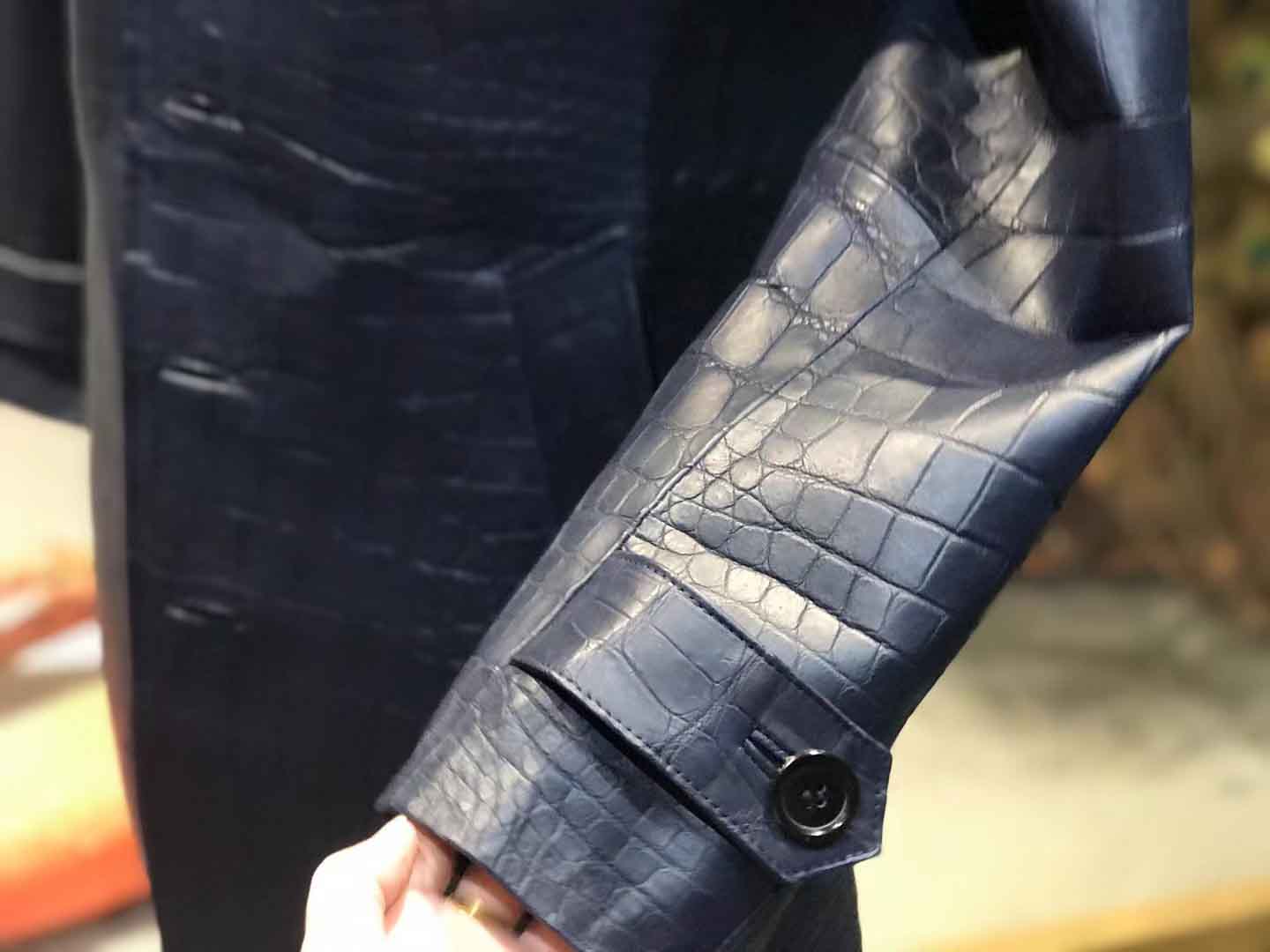 【新出现货】鳄鱼皮长款风衣 深蓝色 50码