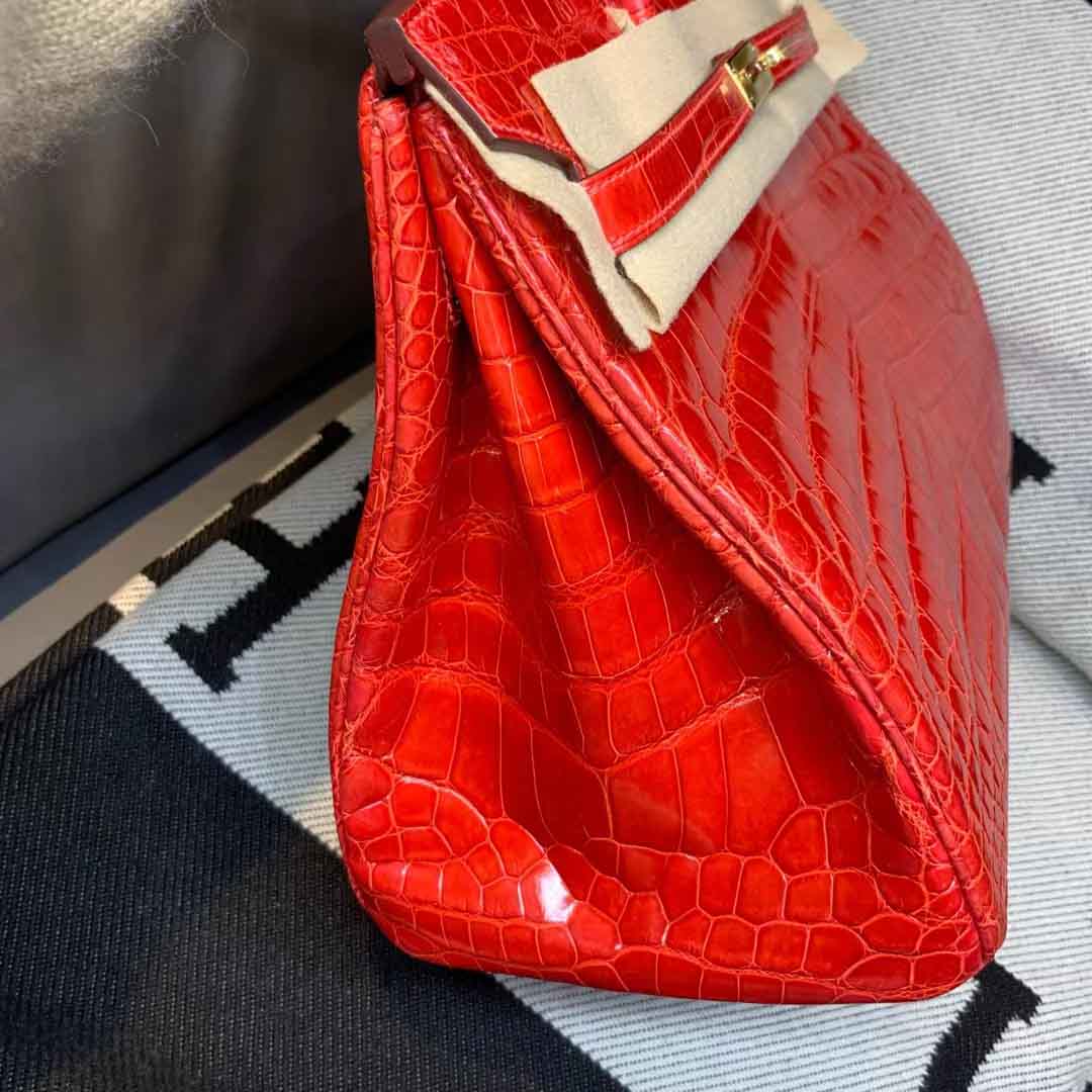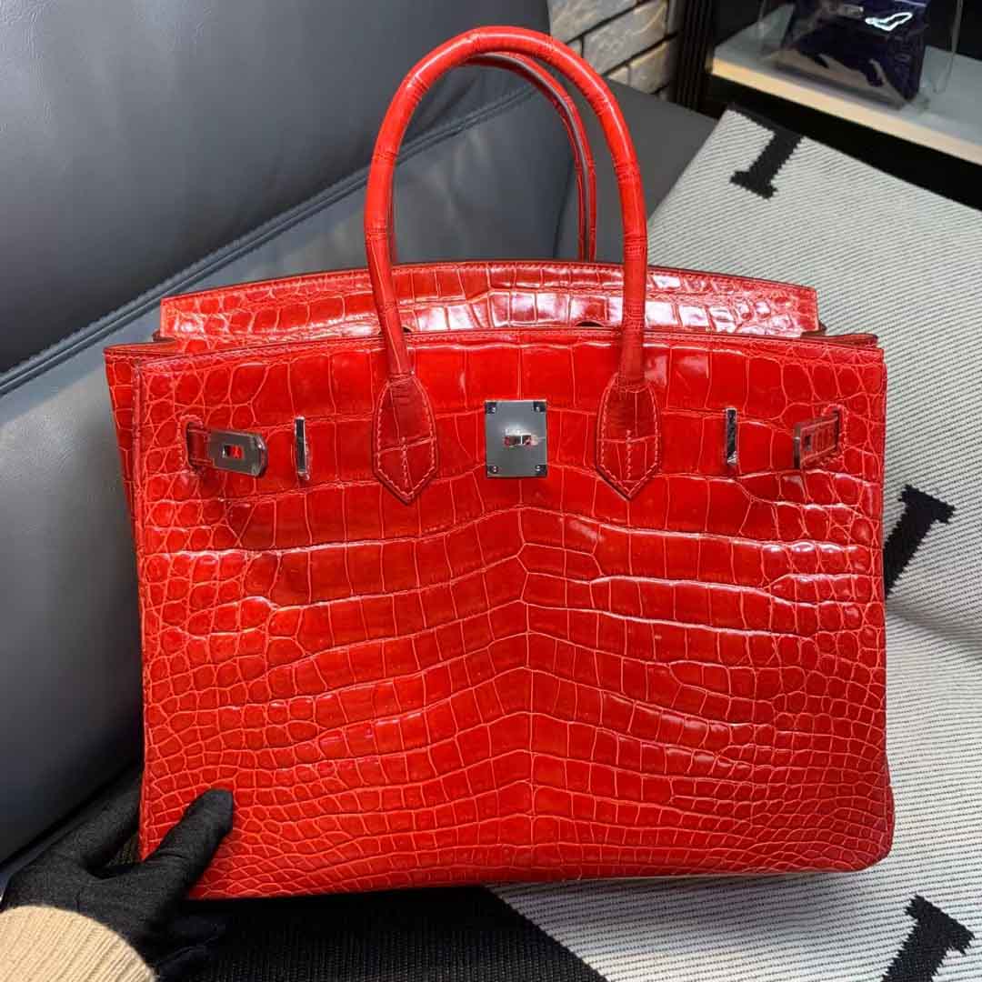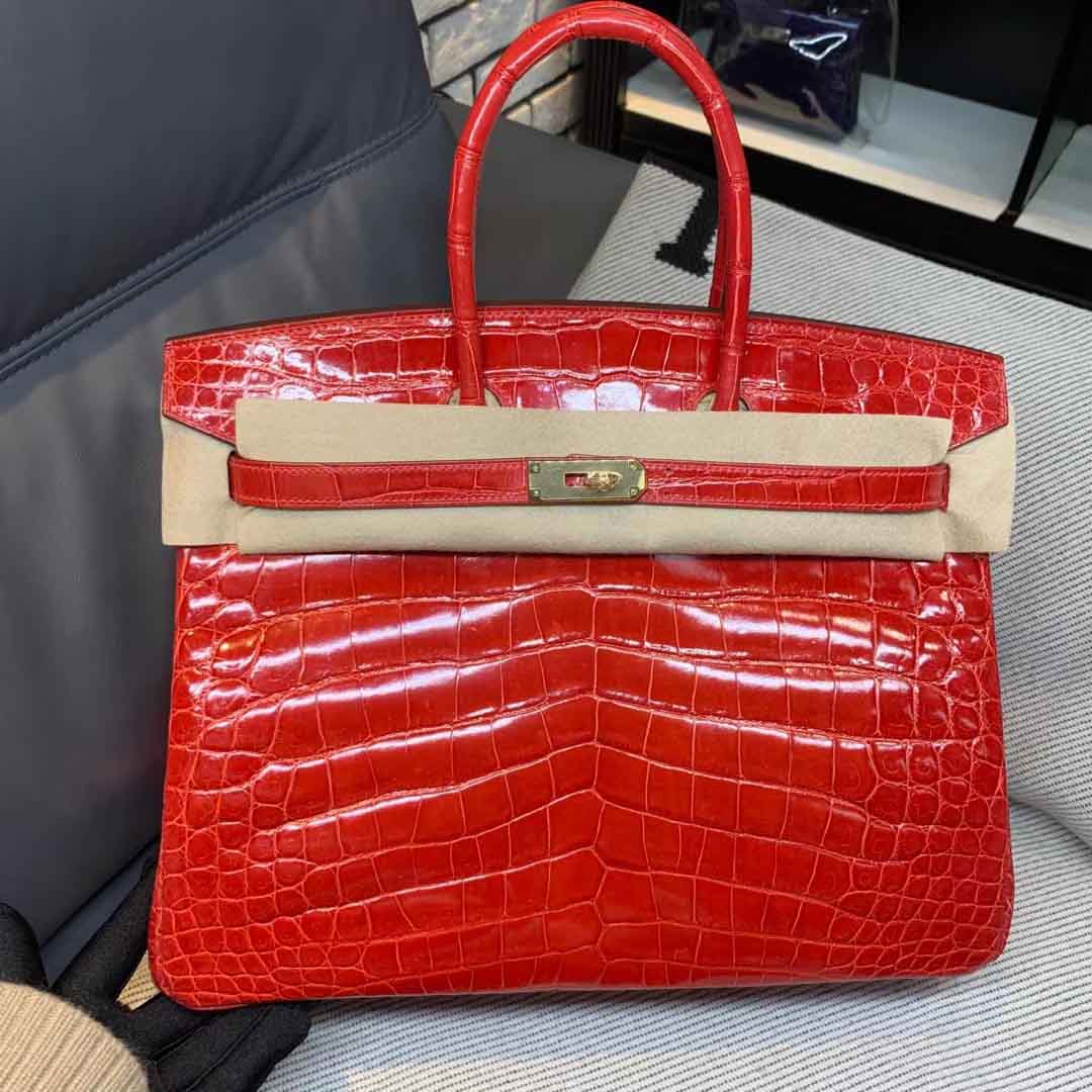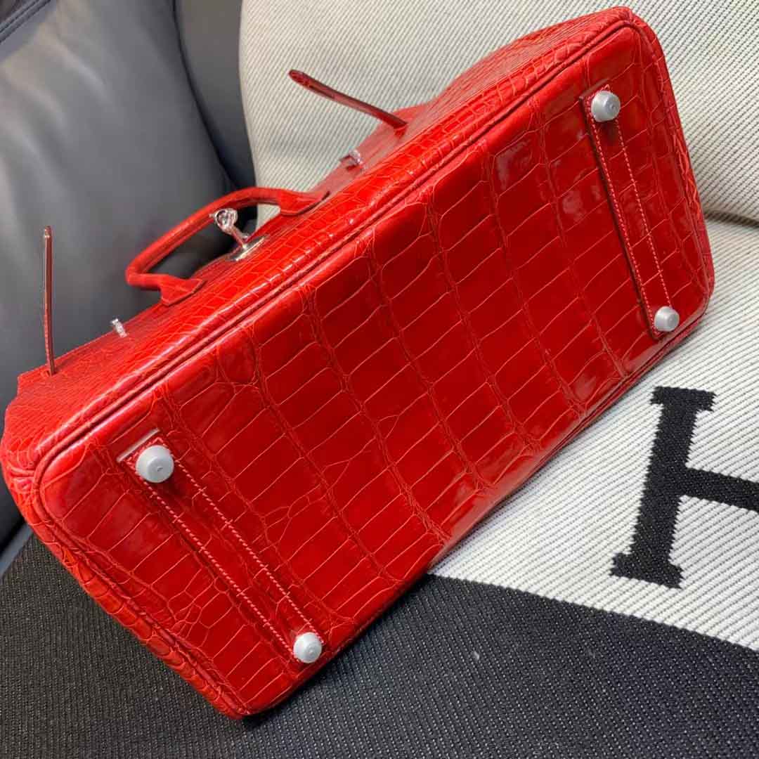 Birkin35cm 9M法拉利红亮面鳄鱼皮女手提包鳄鱼皮单肩包