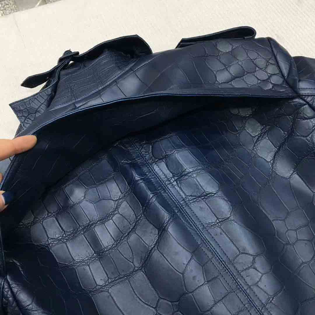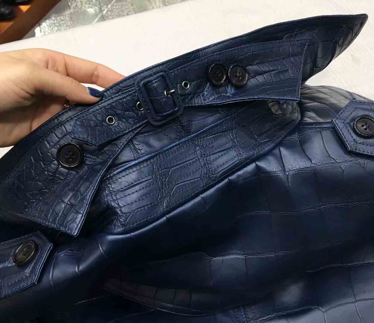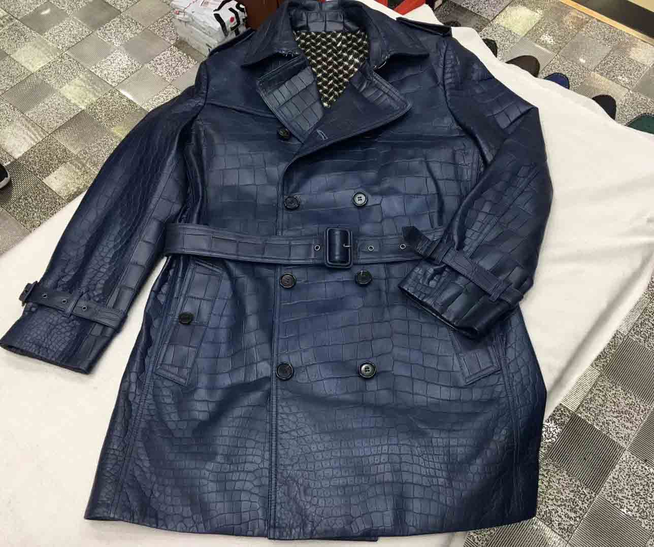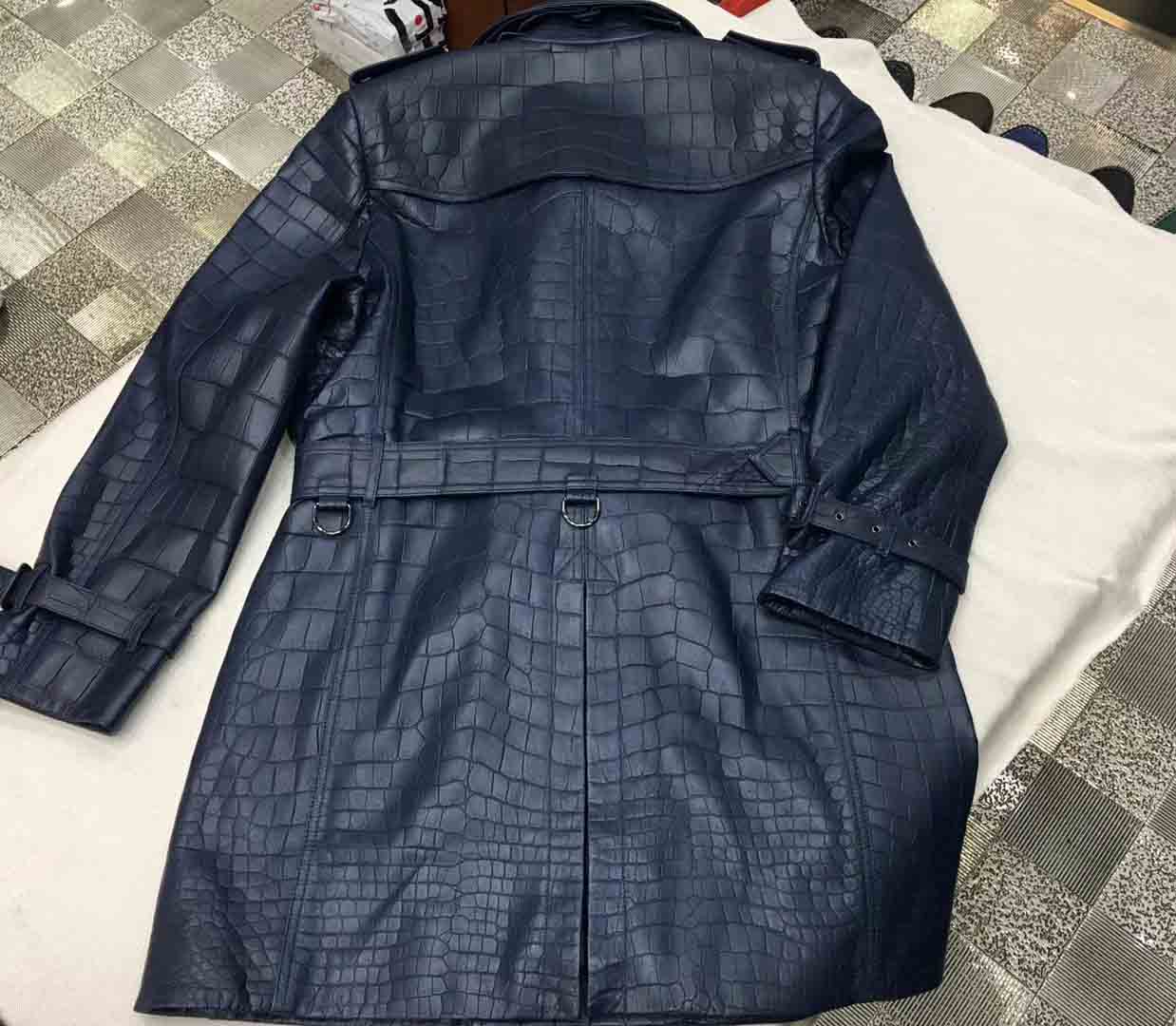 深蓝色鳄鱼皮衣长款风衣