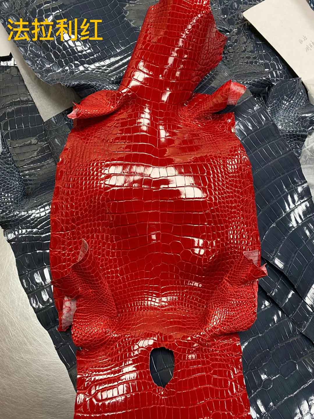 最新进口美洲鳄鱼皮料,France Croco 位于法国诺曼底地区,目前已被Gucci母公司开云收购。是世界第三大鳄鱼皮革生产商。生产的鳄鱼皮为Hermes lnternational SCA(HRMS.PA)、GUCCI、Kering/PPR(PP.PA)的供应商。France Croco 与法国HCP奇特(HCP)、新加坡RHeng Long lnternational Ltd(兴隆)等皮革厂商是奢侈品最主要的皮革供应商。美洲鳄、湾鳄、尼罗鳄是三大奢侈品常用的高价值鳄鱼皮,爱马仕通常只用这三种鳄鱼皮,三者同属于奢侈品皮革金字塔的顶端。