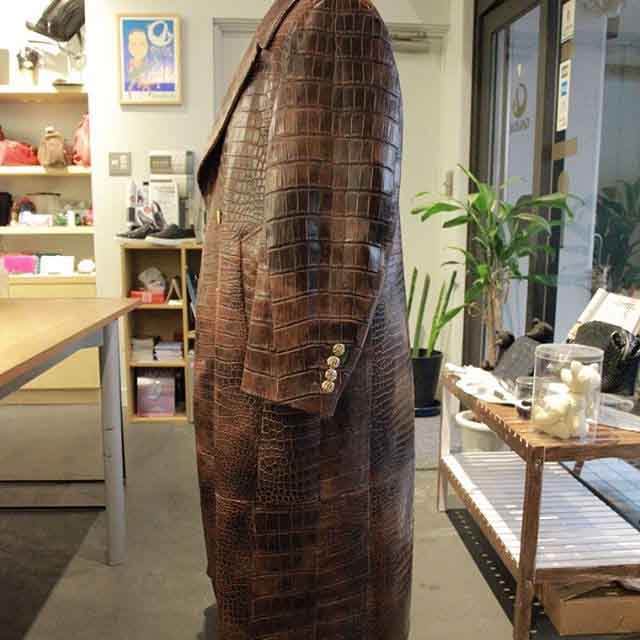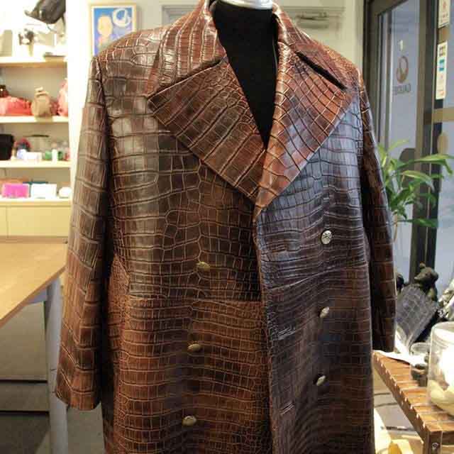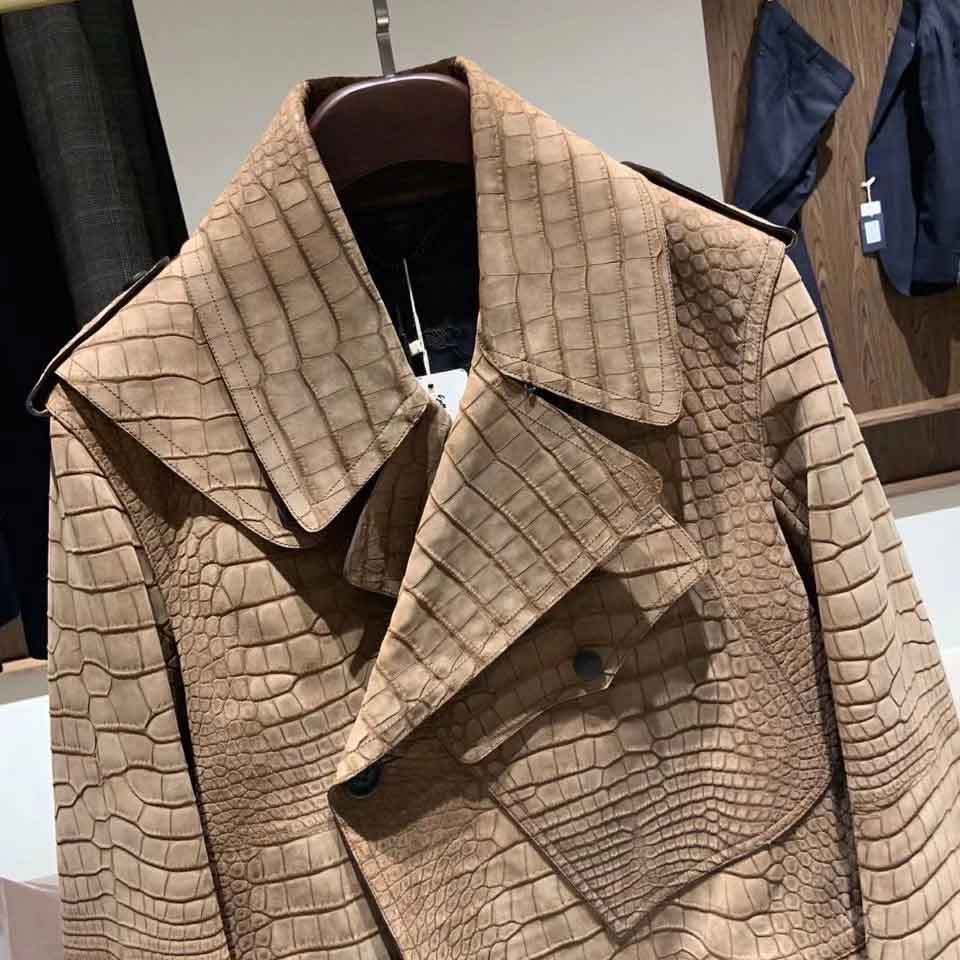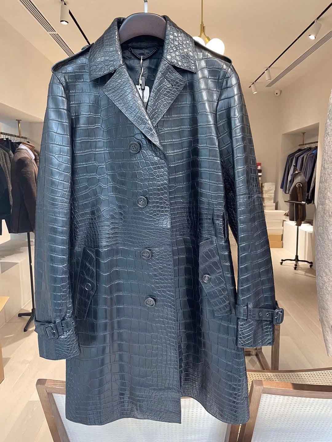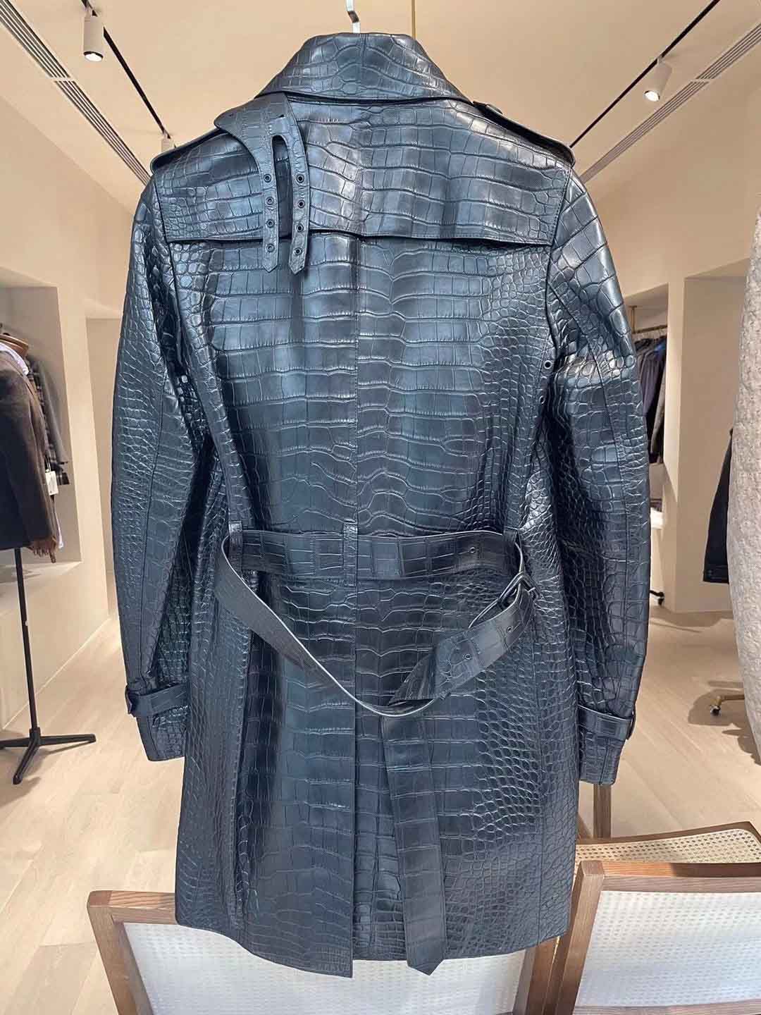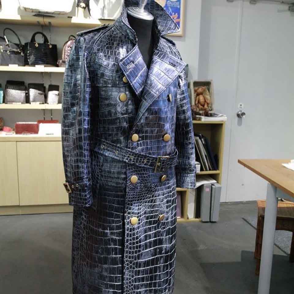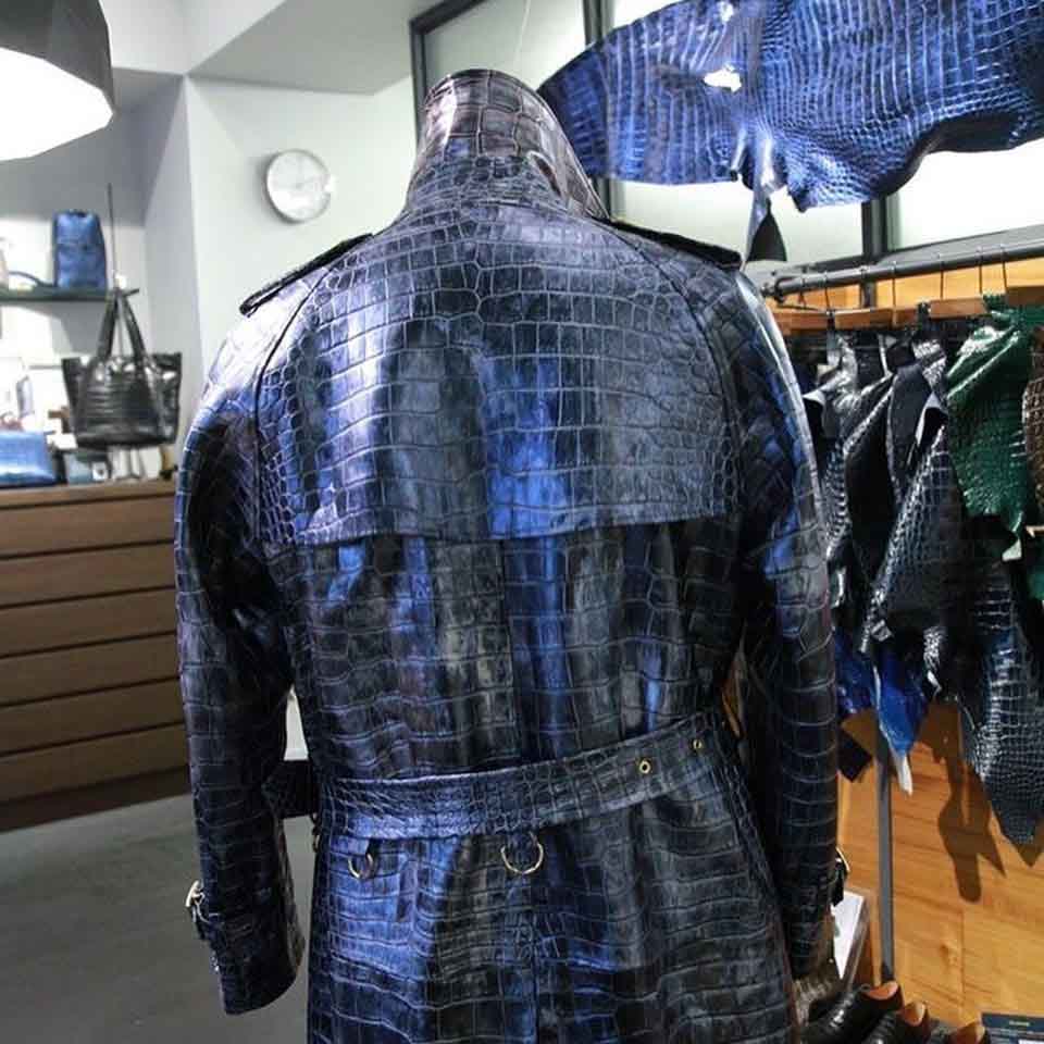 高级奢侈品鳄鱼皮风衣定制工厂。
