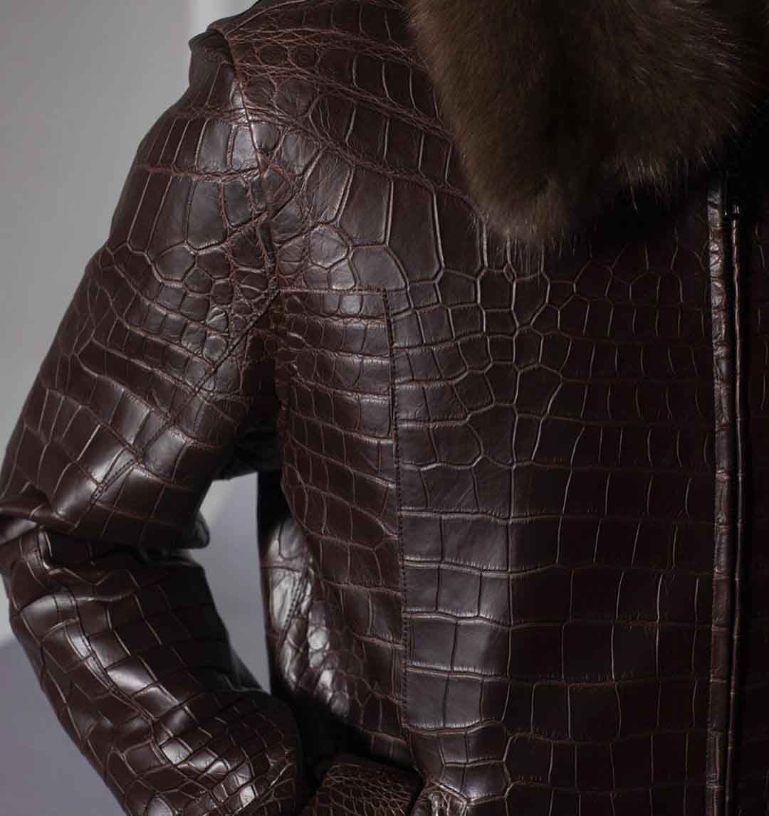 奢侈高端私人鳄鱼皮大衣夹克定做工厂