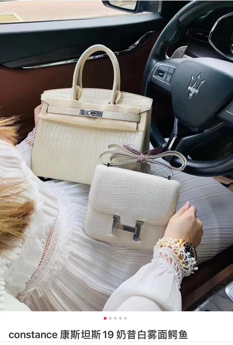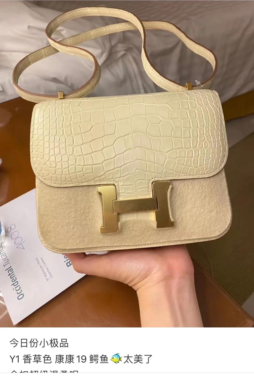 19cm Constance 康康鳄鱼皮 雾面美洲鳄 全手工蜜蜡线缝制 。雾面美洲鳄空姐包浅蛋黄色定做
