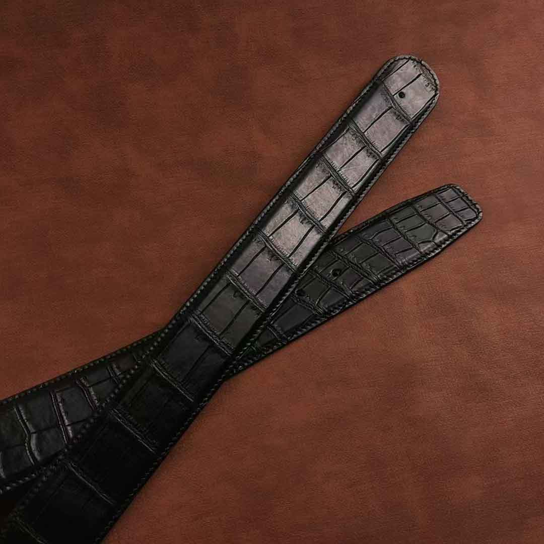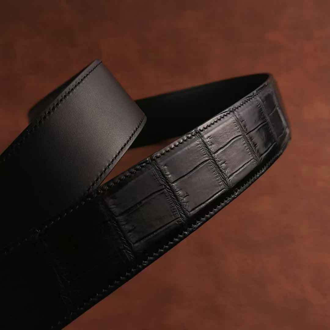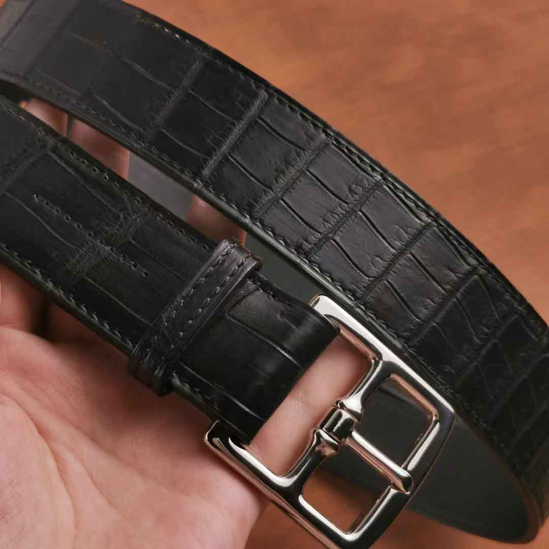 HCP雾面倒V野生湾鳄 CK89黑色 Noir 完美品相 全手工蜡线缝,纯手工定做鳄鱼皮腰带工厂。