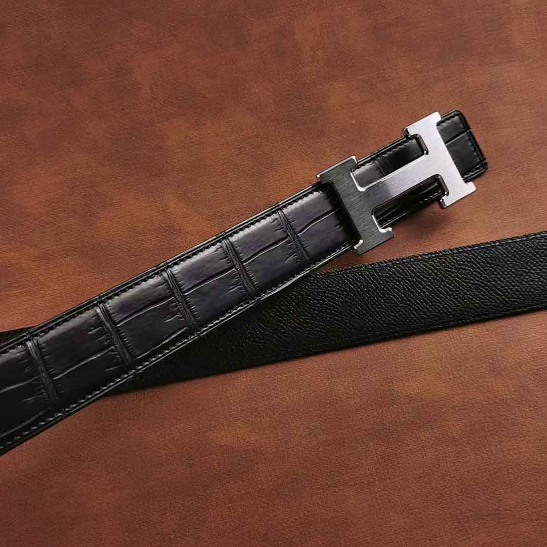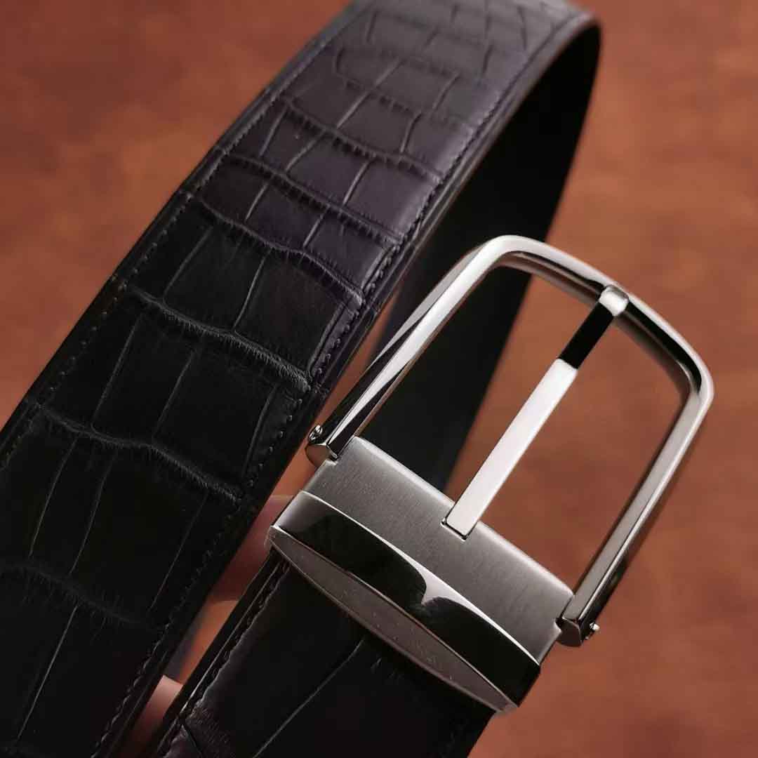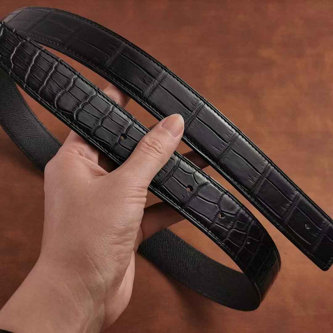 HCP雾面倒V野生湾鳄 CK89黑色 Noir 完美品相 全手工蜡线缝,纯手工定做鳄鱼皮腰带工厂。