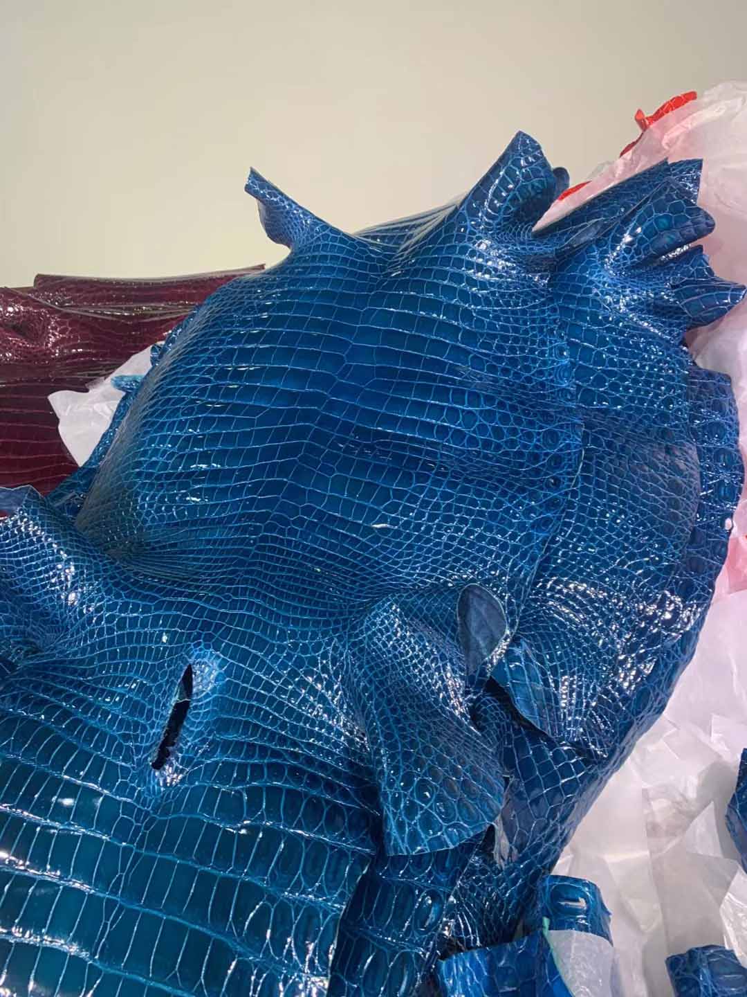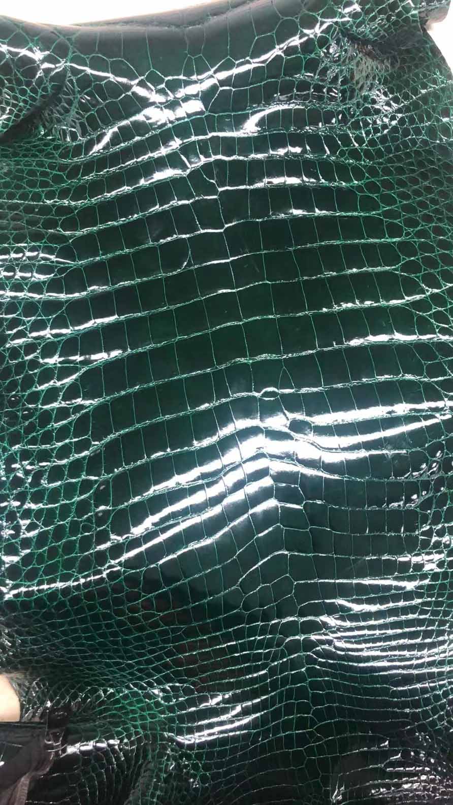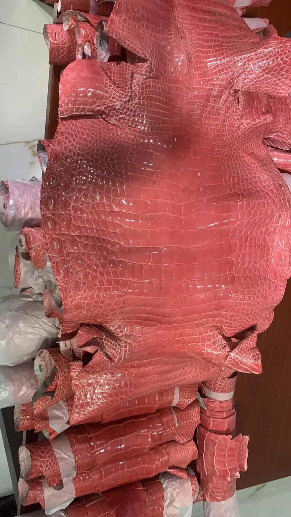 新进暹罗鳄鱼皮,暹罗鳄又叫泰国鳄。相比湾鳄、美洲鳄及尼罗鳄要亲民一些。鳄鱼皮肚子的纹路也很漂亮,它的竹节纹与圆纹成正比;气孔比较细小、偏多,制作成表带,会有很多明显微小的气孔,更能表现出来泰国鳄原有的皮质气孔。但一提到泰国鳄,就会觉得档次上不来。如果从品种和皮料本身的角度考虑,其实泰国鳄也并不差,而且也还是不错的。市面上有很多的商家就是用泰国鳄去冒充美洲鳄;泰国鳄与美洲鳄极为相似,泰国鳄是大型鳄鱼,它的皮料不会骨化、并不硬,很多便宜的鳄鱼皮表带,是用泰国鳄皮来制作。为何给人一种低档的感觉?泰国鳄的饲养成本低,繁殖能力强,饲养见效快,经济效益显著的优点。