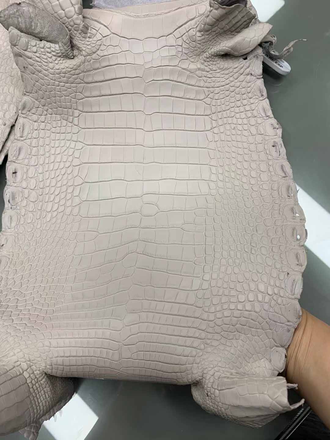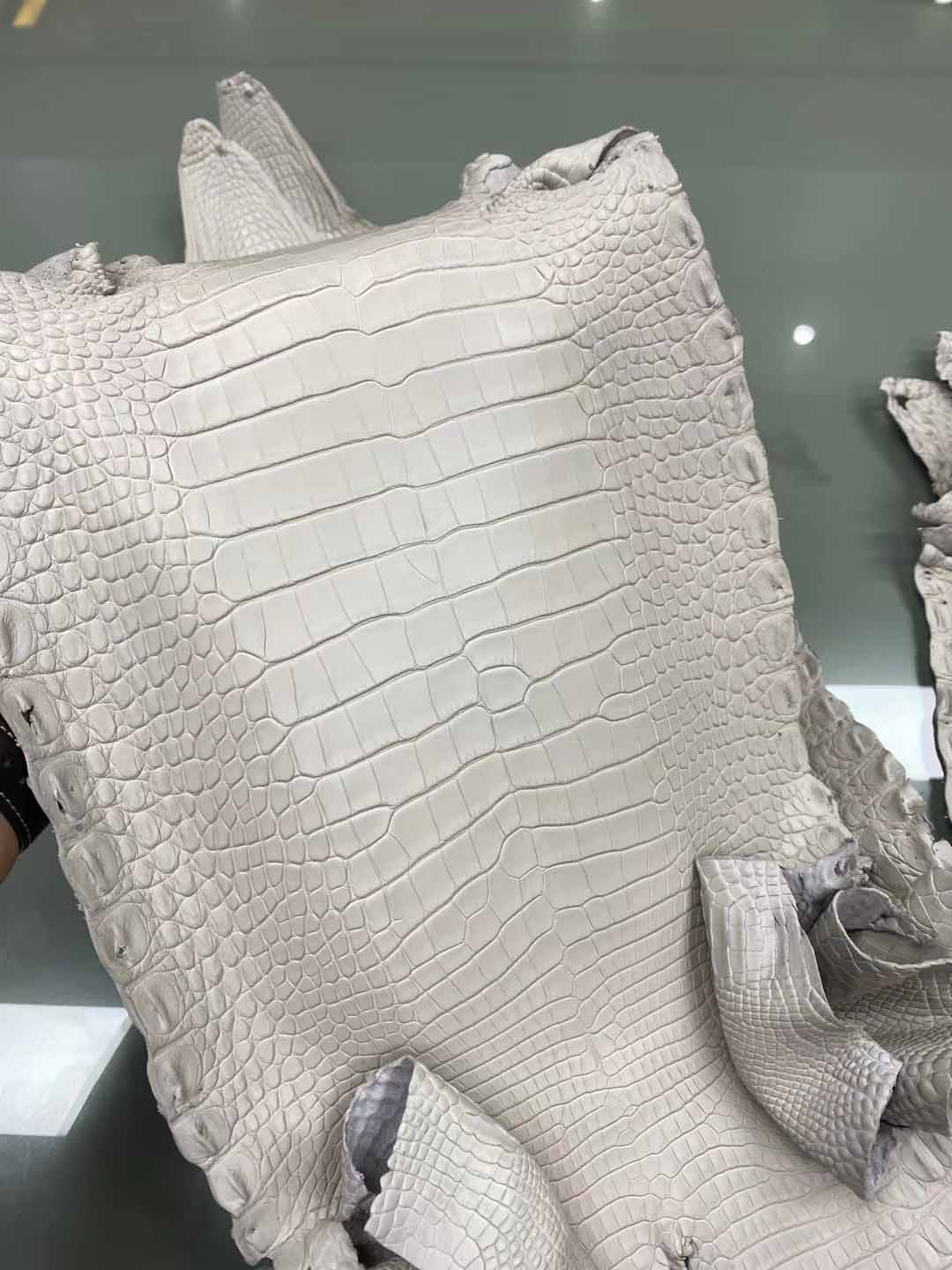 美洲鳄鱼皮珍珠粉色,美洲鳄鱼皮珍珠灰到货。美洲鳄鱼皮价格仅次于湾鳄,虽然仅次于湾鳄,但在市场上也是极为高档的鳄鱼皮。制作传统手工艺皮具,美洲鳄绝对是首选啊。在高端表带制作上,美洲鳄皮最好的皮料。