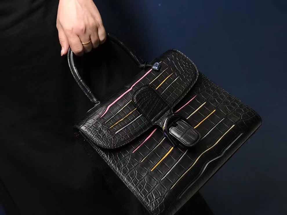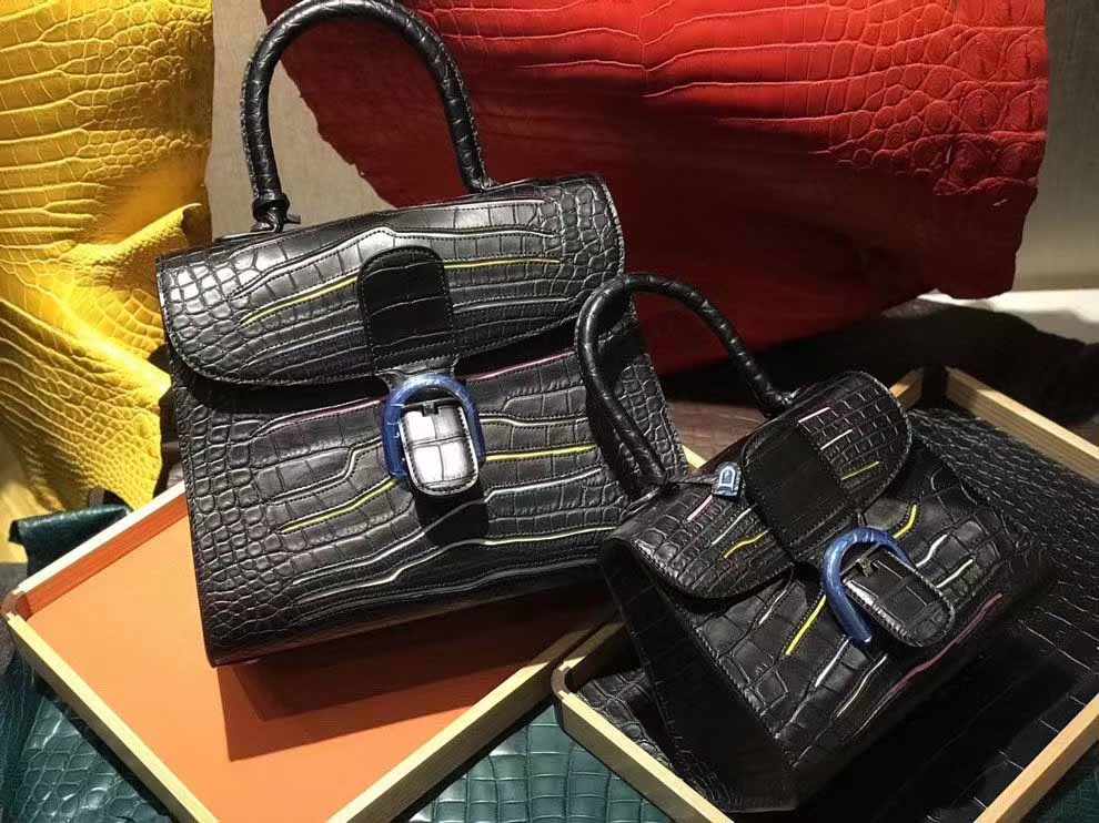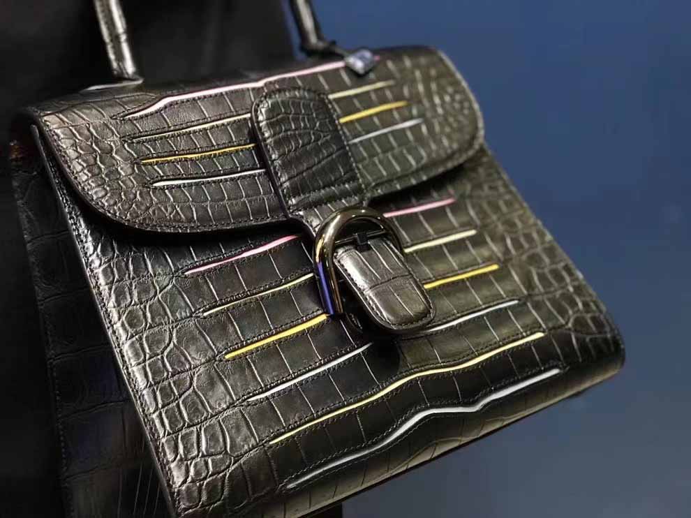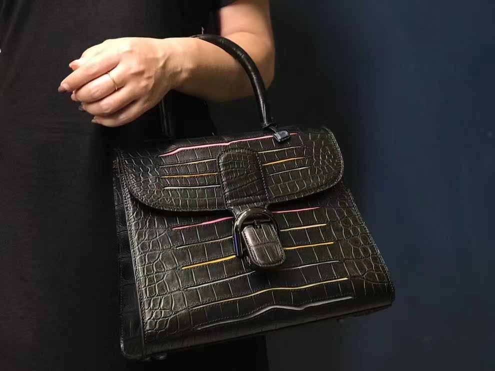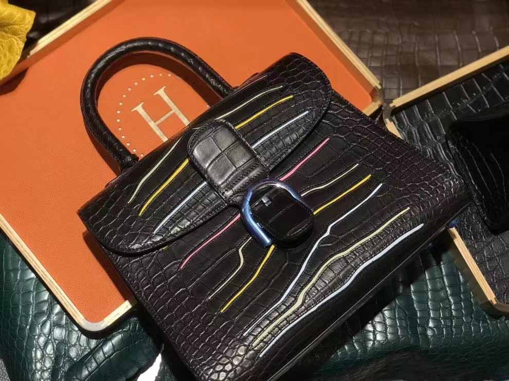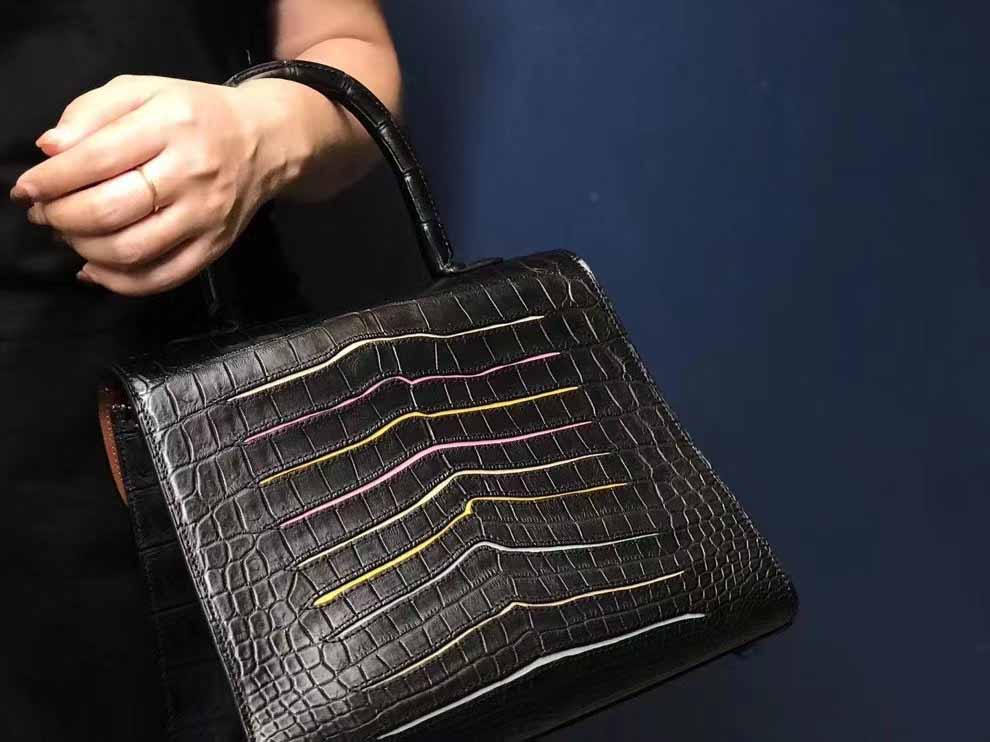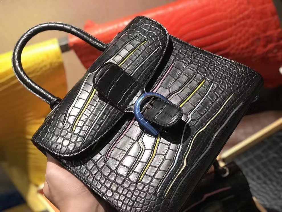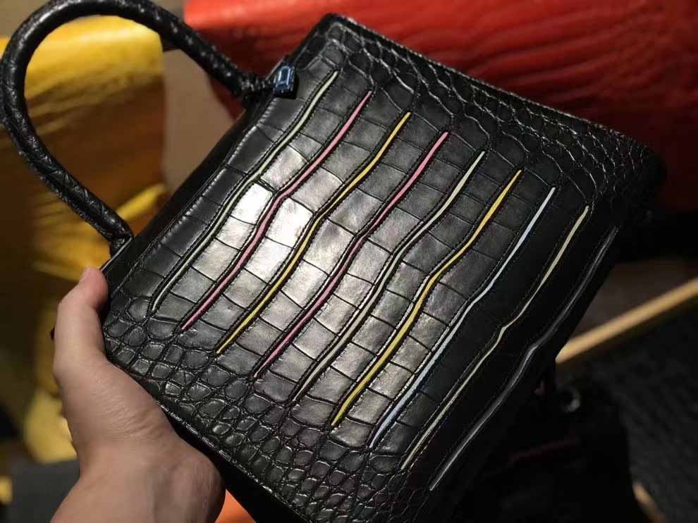 【客订】美洲鳄 黑色哑光德尔沃 28/20cm私人定做美洲鳄鱼皮包