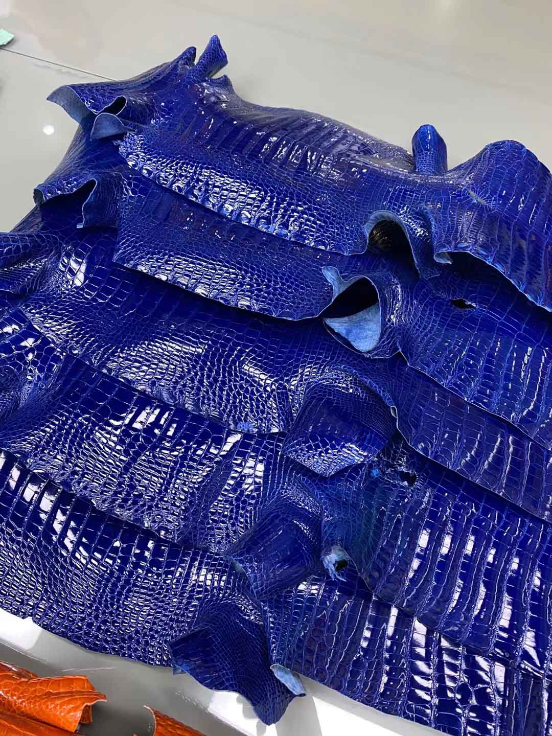 高光美洲鳄鱼皮料到货了,亮面美洲鳄鱼皮订做工厂。