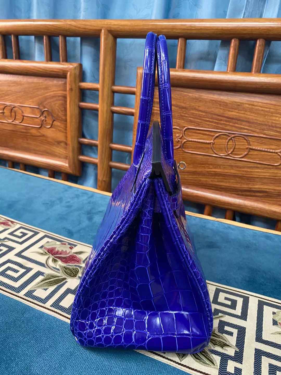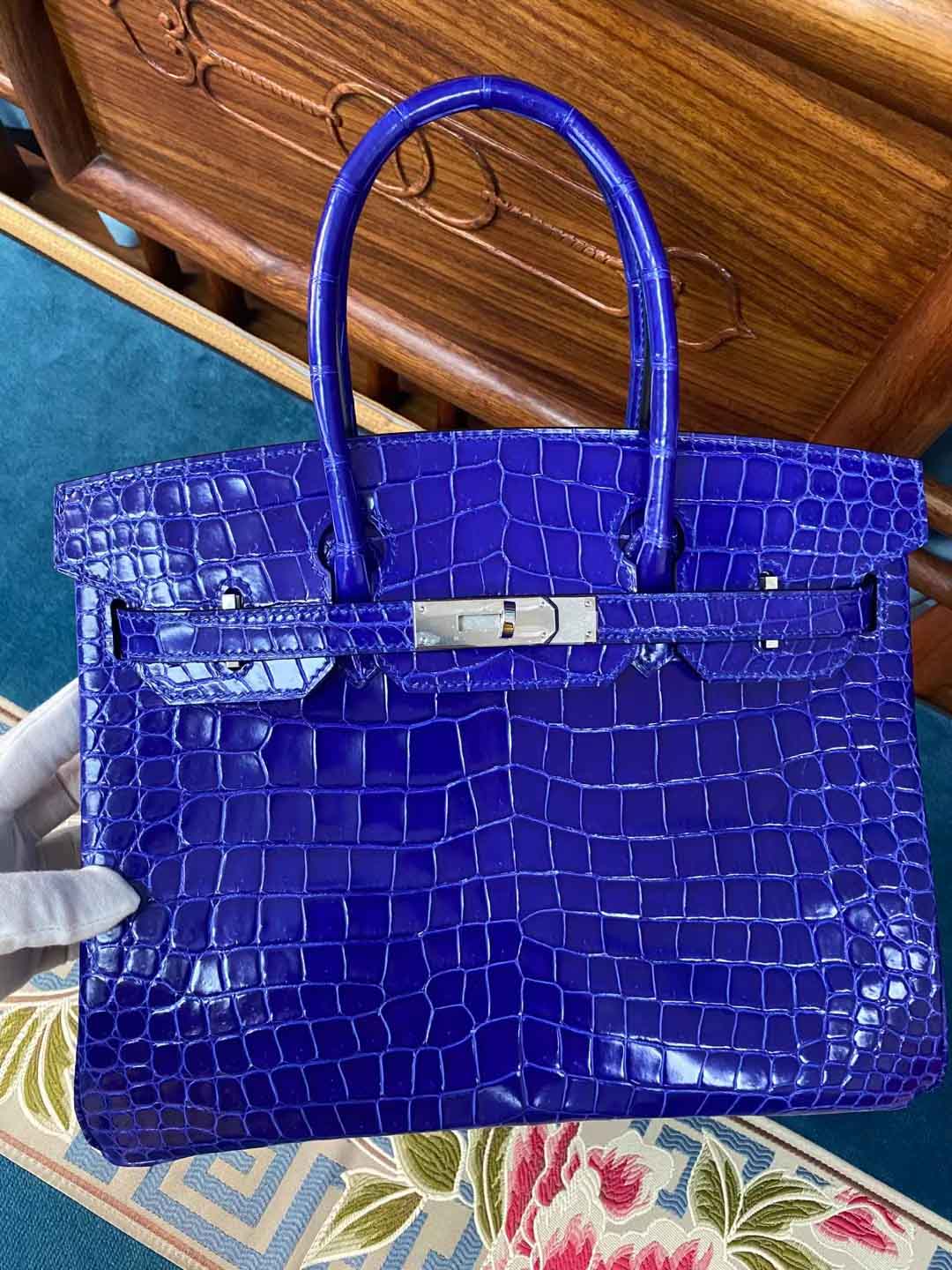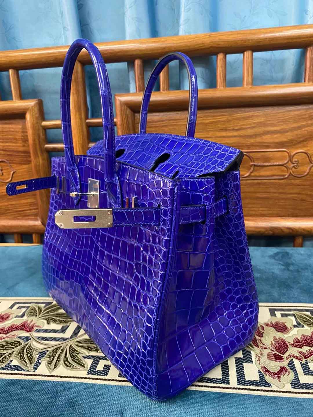 皇鼎铂金30顶级湾鳄电光蓝手包全手缝品鉴,预定自己喜欢的颜色定做湾鳄高端皮具。