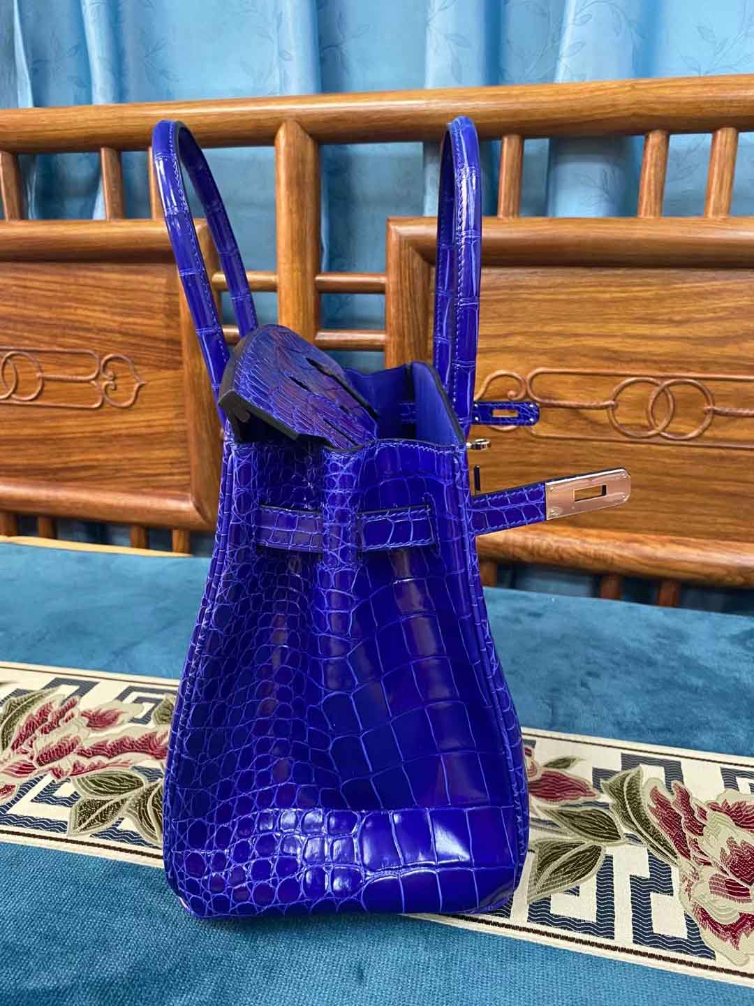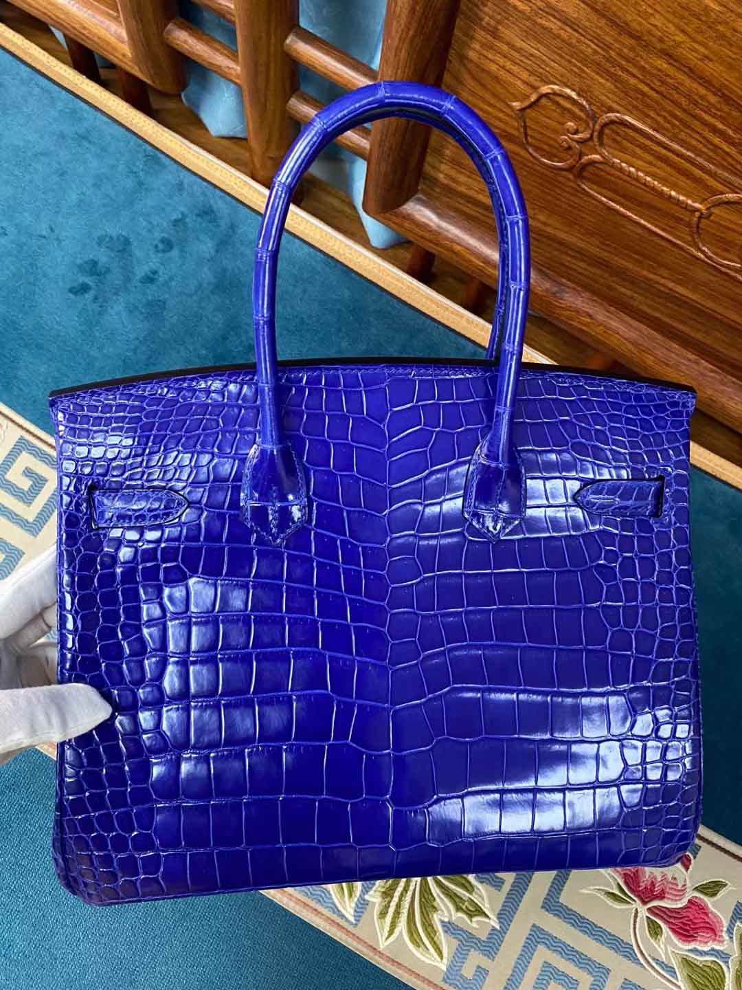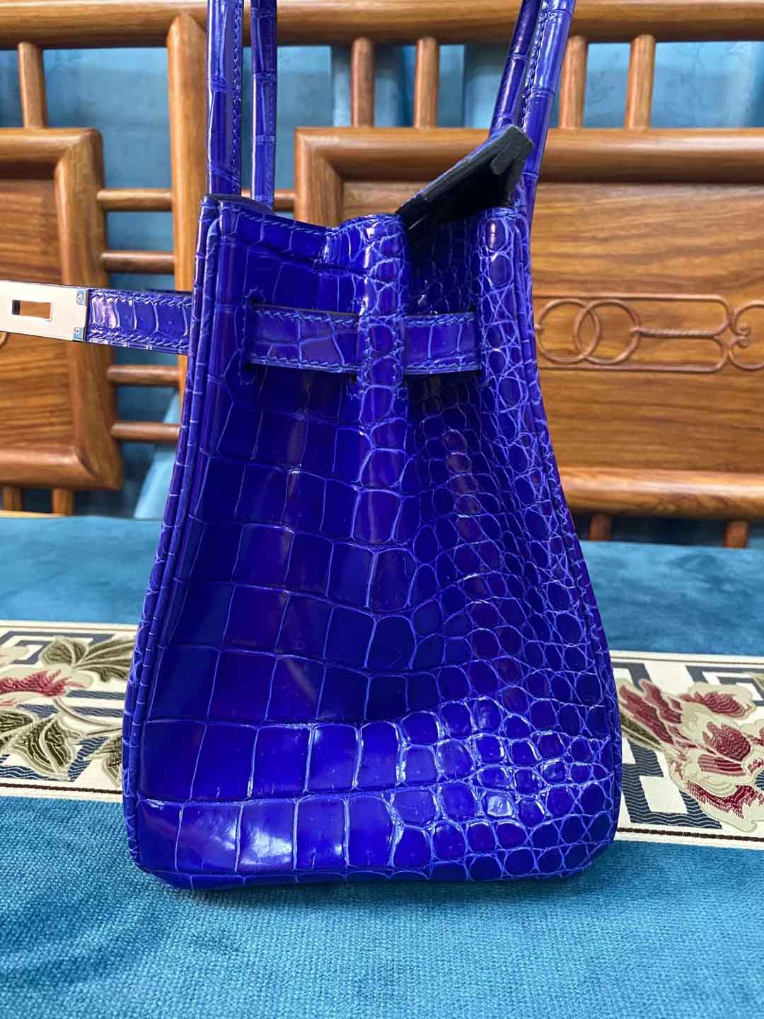 皇鼎铂金30顶级湾鳄电光蓝手包全手缝品鉴,预定自己喜欢的颜色定做湾鳄高端皮具。