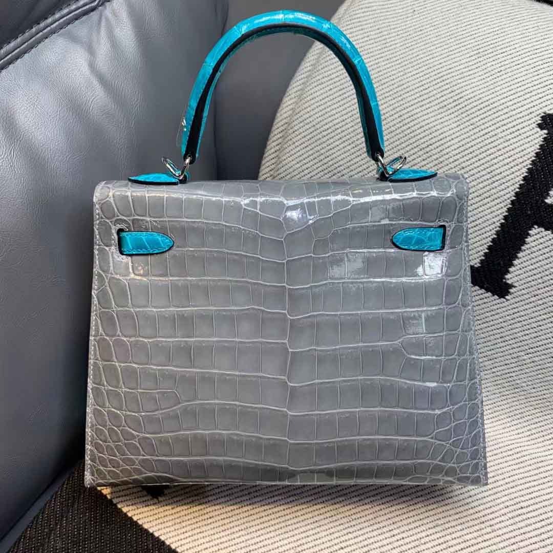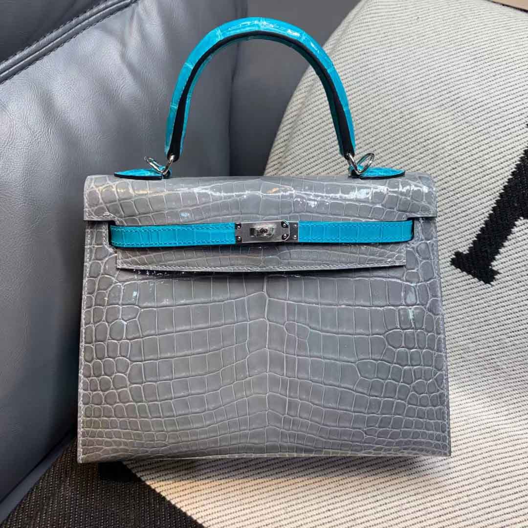 客订kelly25兴隆亮光尼罗鳄 特殊定制,拼色凯丽25鳄鱼皮订做。