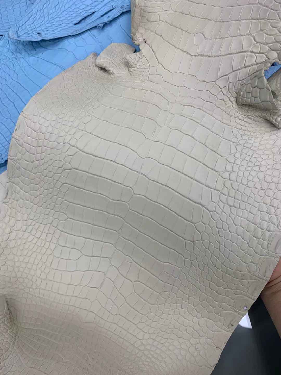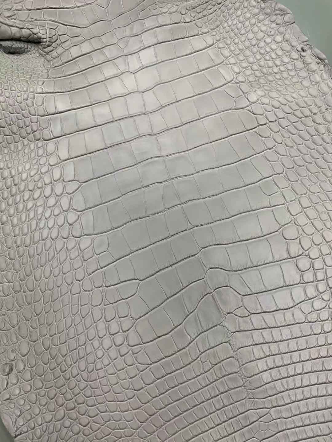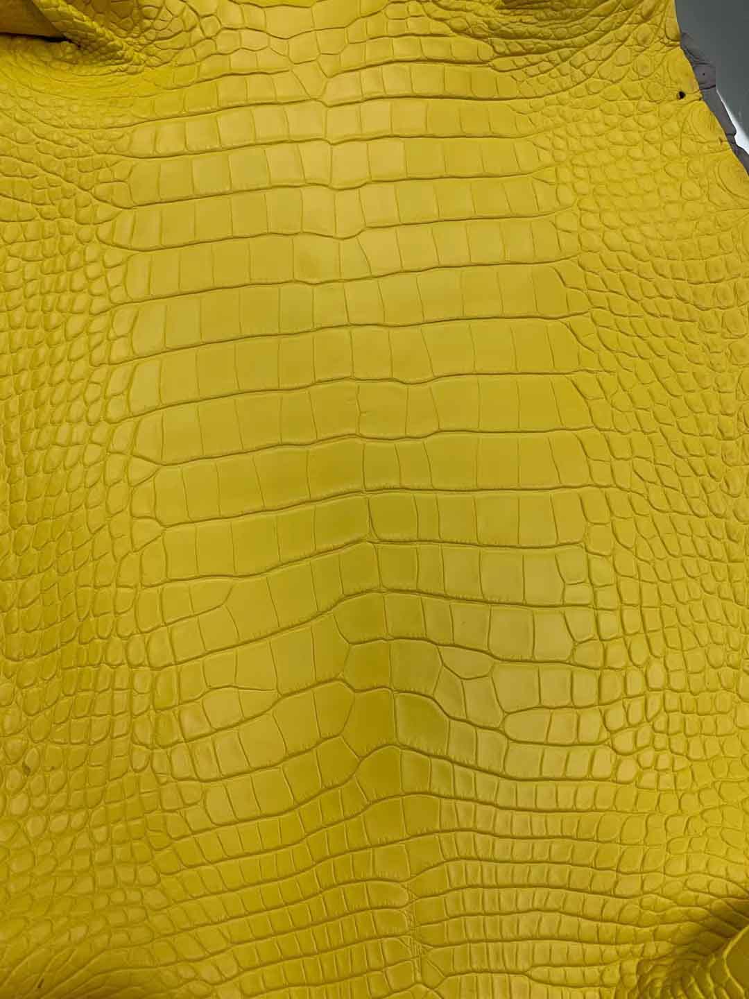 美洲鳄鱼哑光皮料:灯盏花黄、斑鸠灰、香草色、各样色彩到货了。可以定做自己的样色样板。有需要雾面皮料联系微信号 95506803