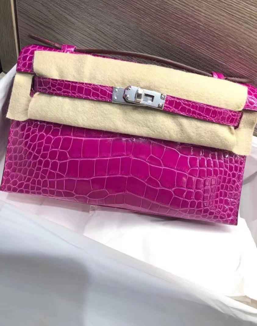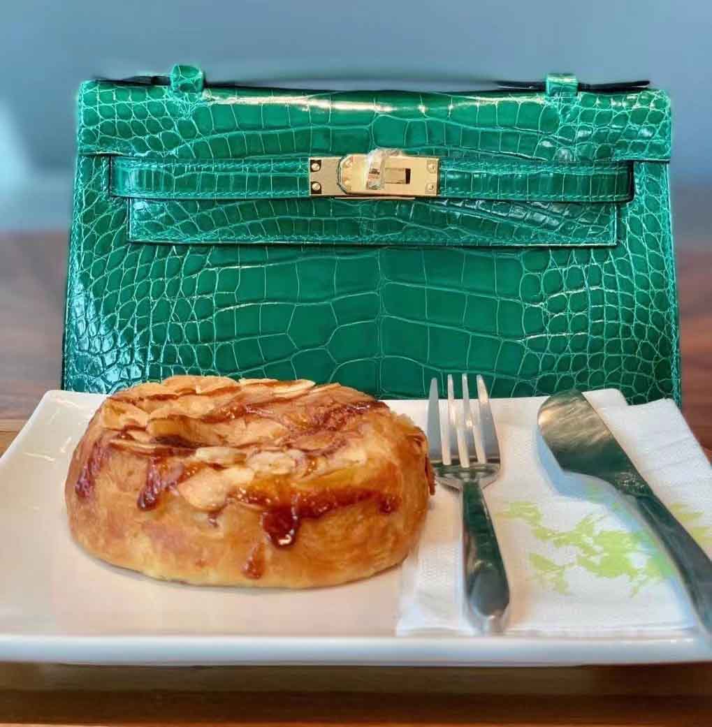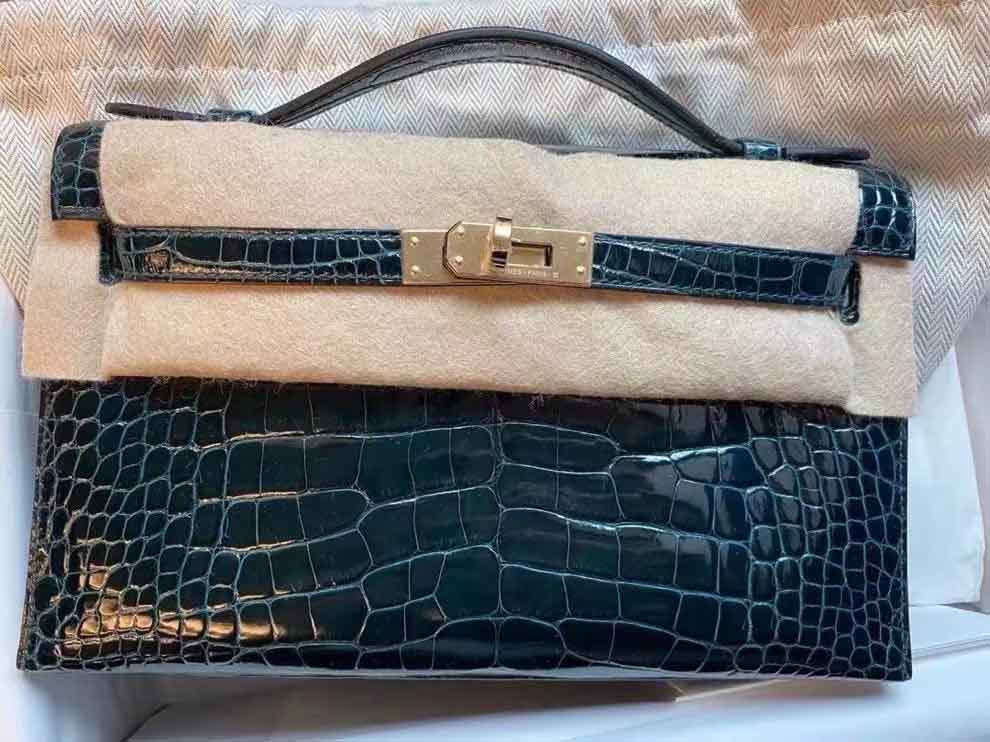 mini kelly pochette 1代 J5天翡翠绿 野生美洲鳄高光