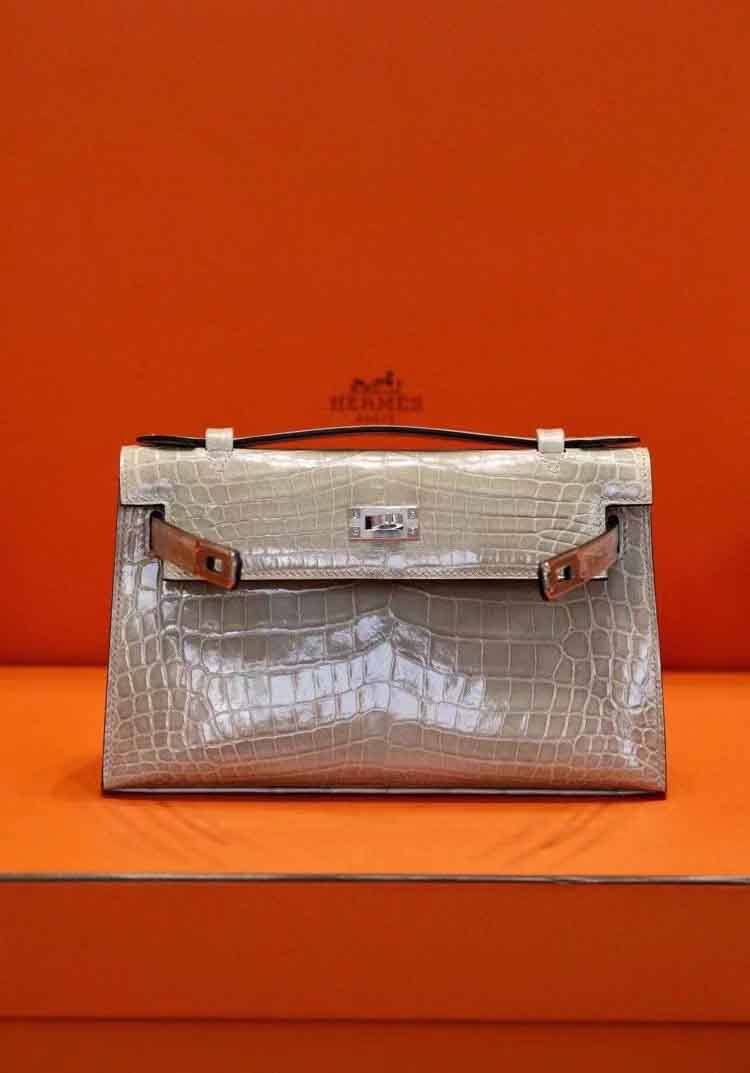 mini kelly pochette 1代 J5天冰川灰 野生美洲鳄高光