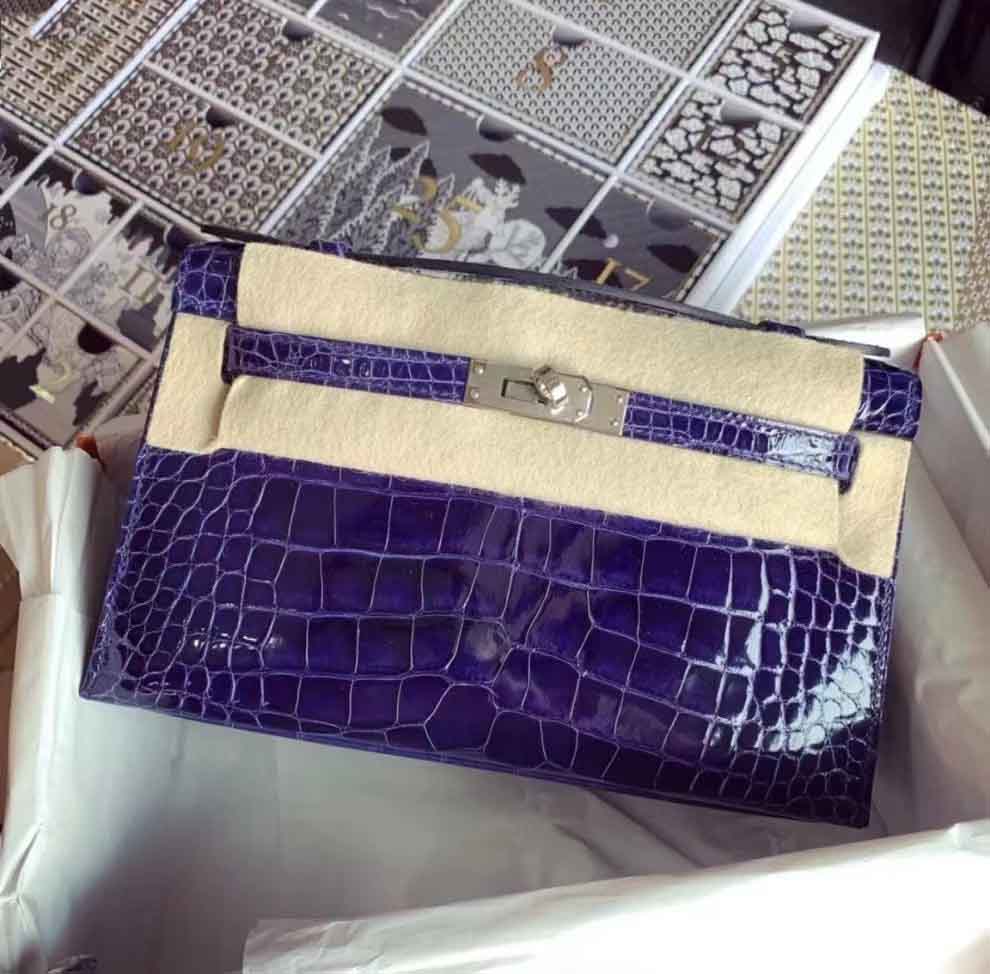 mini kelly pochette 1代 J5天水墨蓝 野生美洲鳄高光