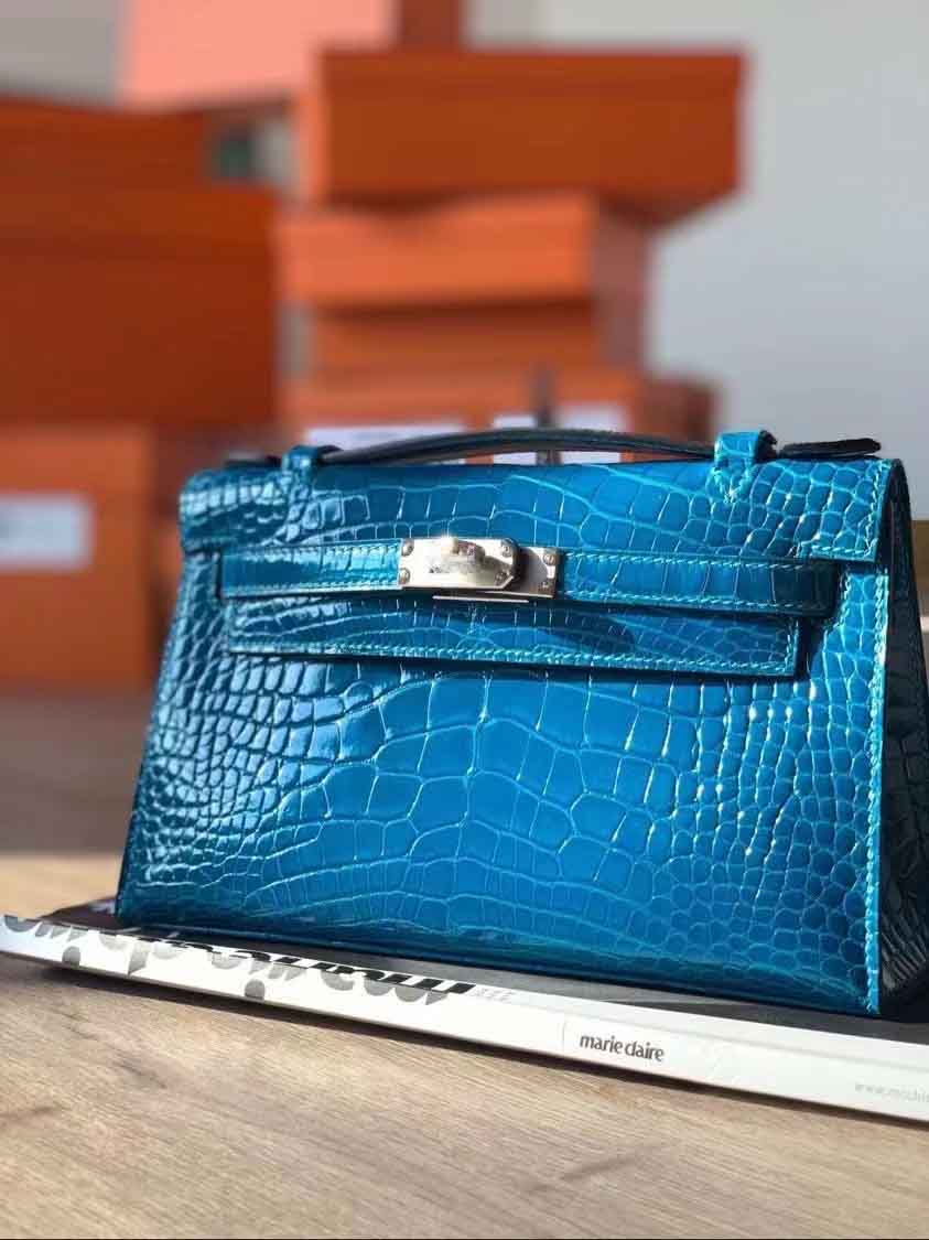 mini kelly pochette 1代 J5天希腊蓝 野生美洲鳄高光