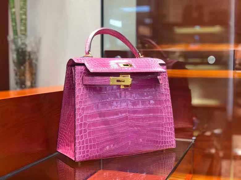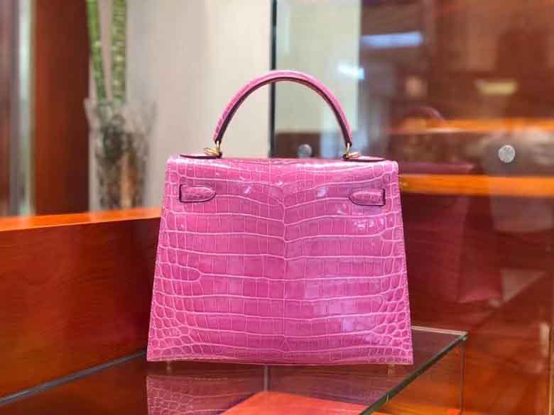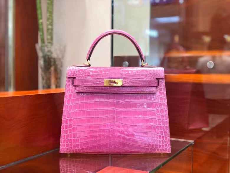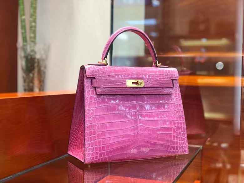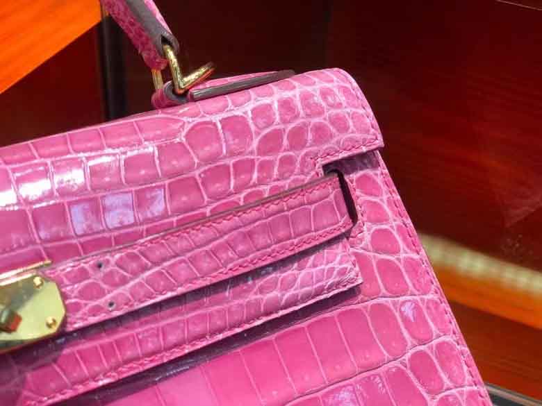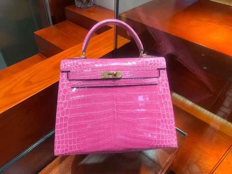 Kelly 28cm 鳄鱼皮女手提包 桃粉色 顶级手工!