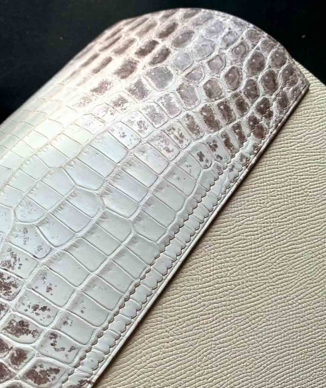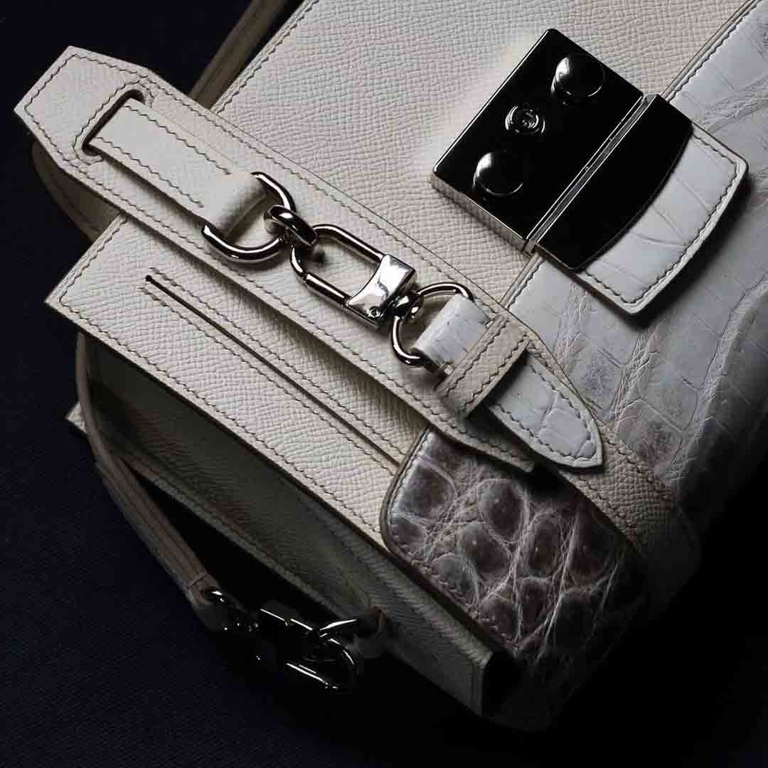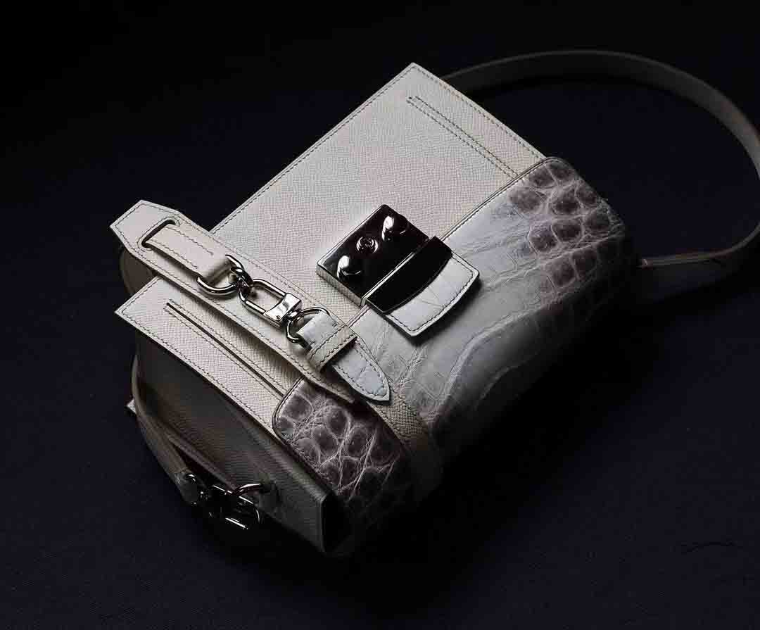 喜马拉雅白拼牛皮女士单肩鳄鱼皮女包定制工厂。可以定做自己喜欢的款式,也可以定做自己设计的款式,也可以订做想象中的款式。你有想法我们都能为您做到,定制你喜欢的包包厂家。