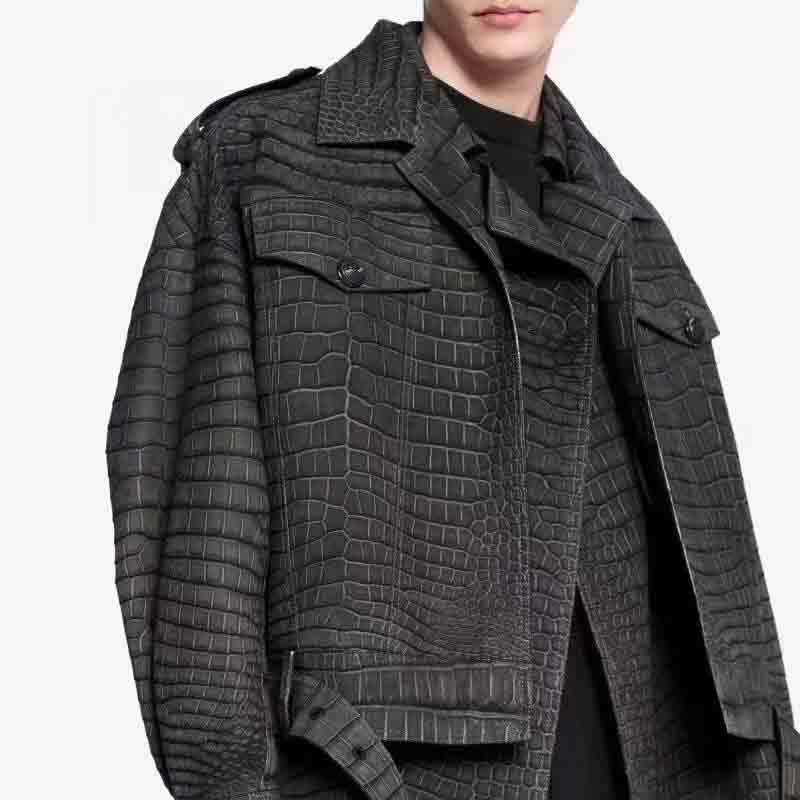 哈哈 纯磨砂鳄鱼皮 铁锈灰 只要你喜欢你️这个身材穿 我就能给你做出来。