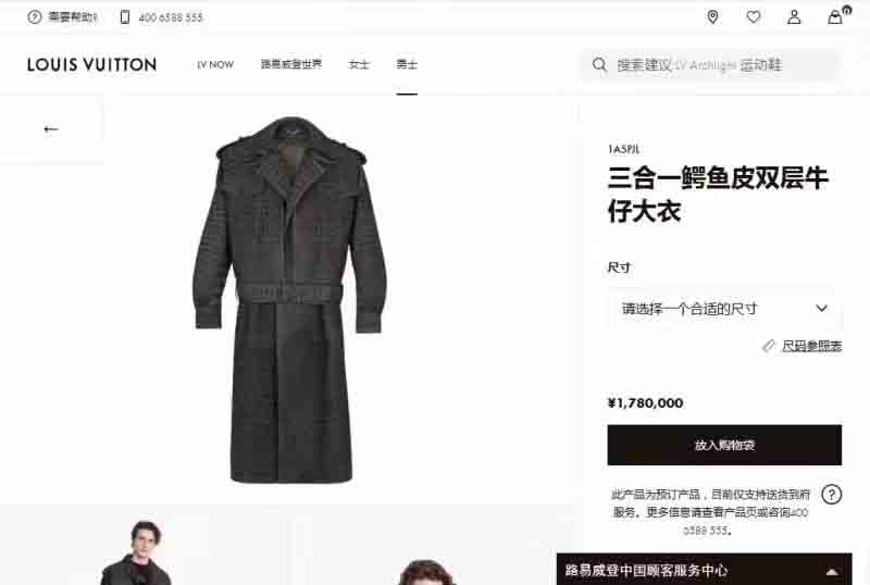 大家可以看见这个路易威登爆款皮衣售价178万元人民币。价格实属不便宜。