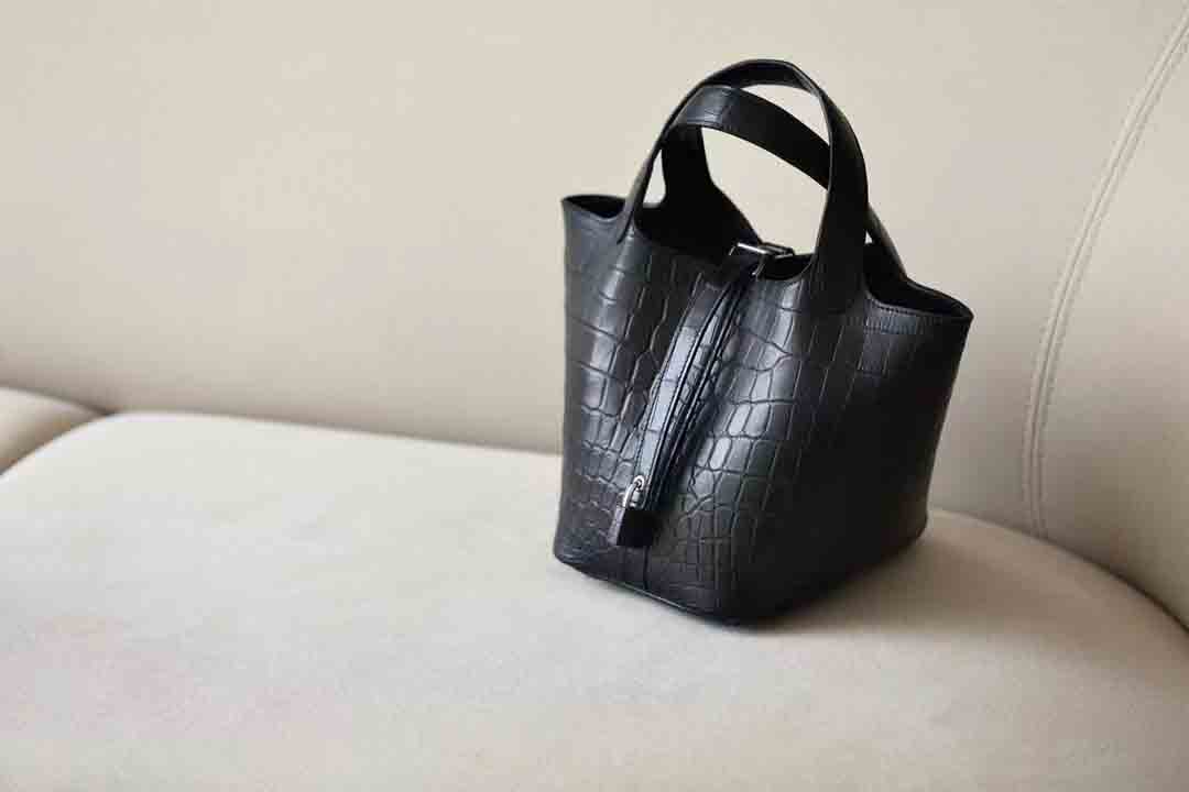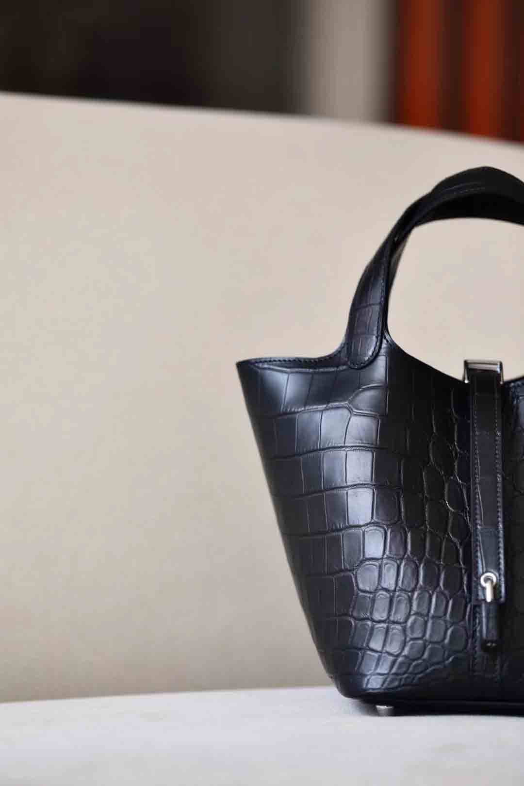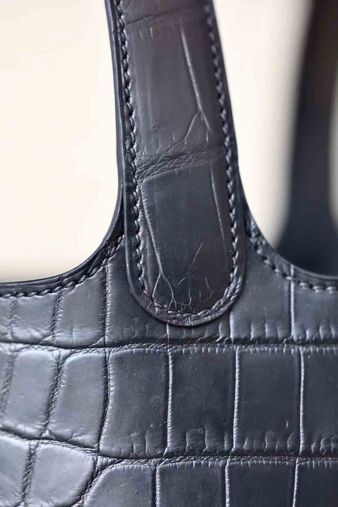 高定款 纯进口尼罗哑光鳄鱼皮菜篮子18cm,哑光尼罗鳄女包订做工厂