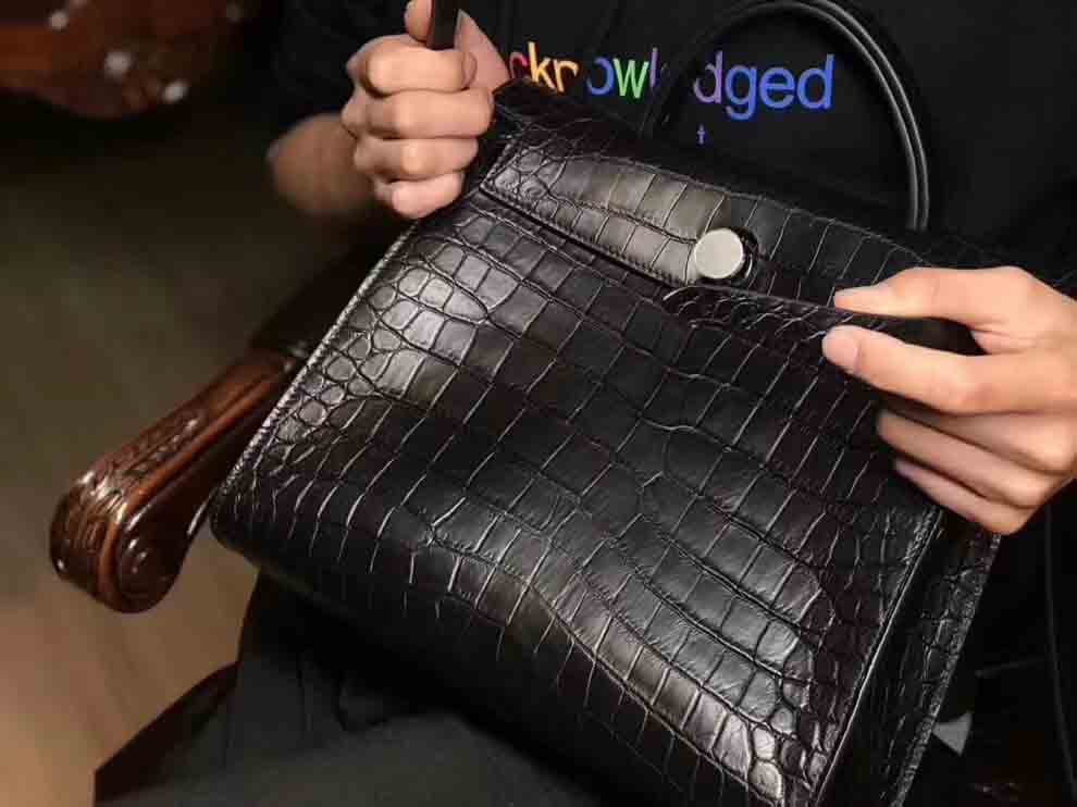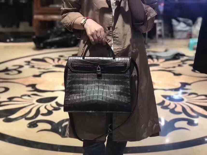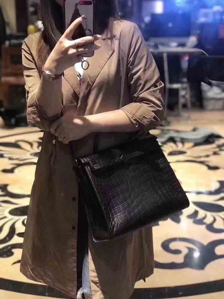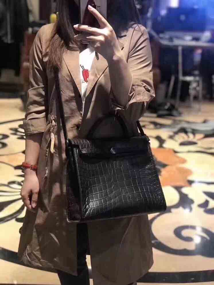 【臻品】黑色鳄鱼皮休闲款 凯莉女包 单肩斜挎包。黑色 size:28*26*12cm。