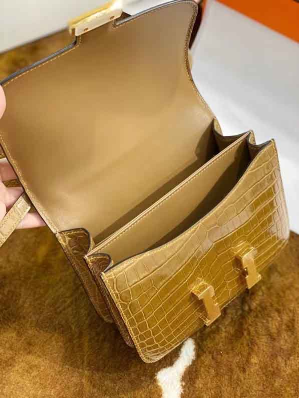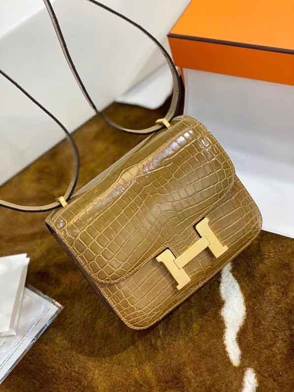 高光尼罗鳄烟草色空姐单肩包定做厂家,奢侈品鳄鱼皮女包设计工作