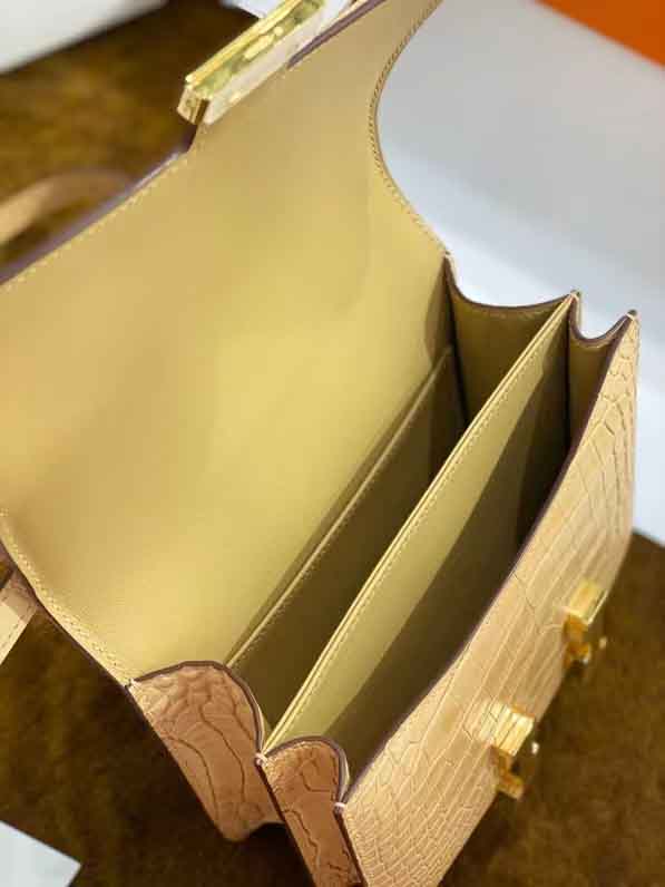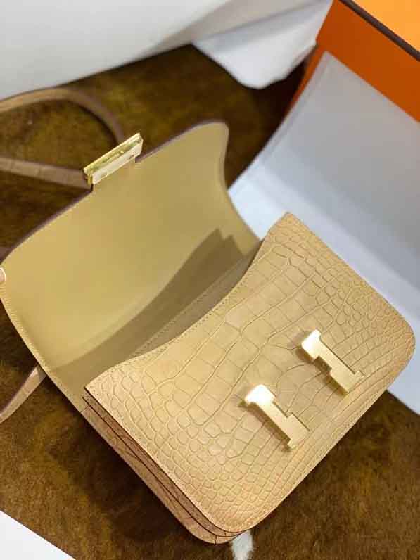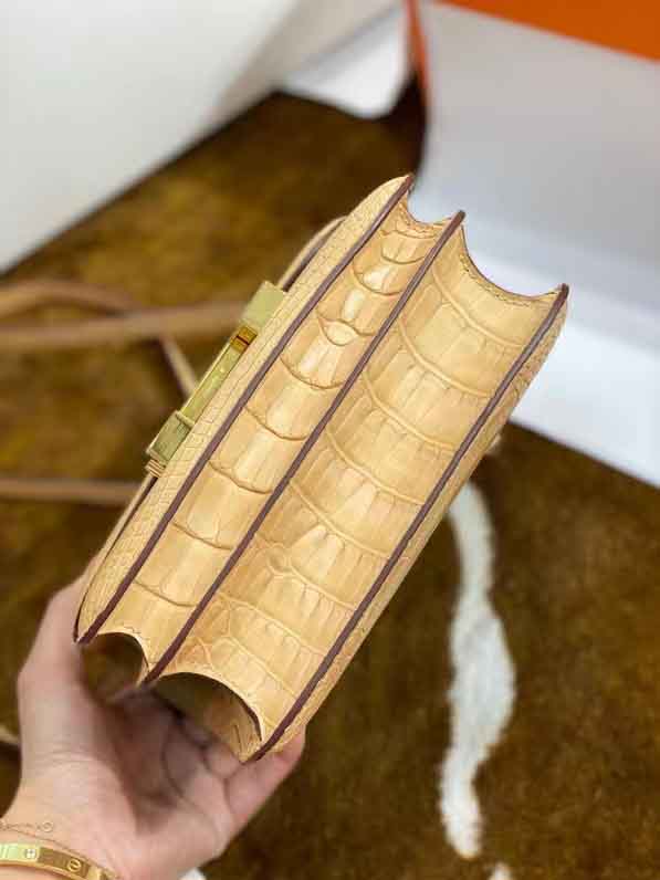 康康19Cm鳄鱼皮 小鸡黄雾面美洲鳄 全手工蜜蜡线缝制