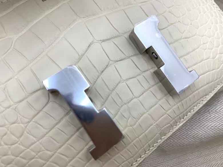 Kj19Cm空姐包 雾面美洲鳄8L冰川白 银扣