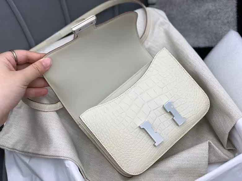 短尾鳄女单肩包冰川白色定制工厂,高端私人定做皮具联系微信:95506803